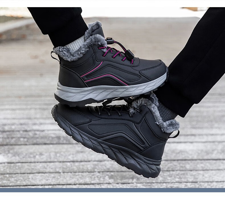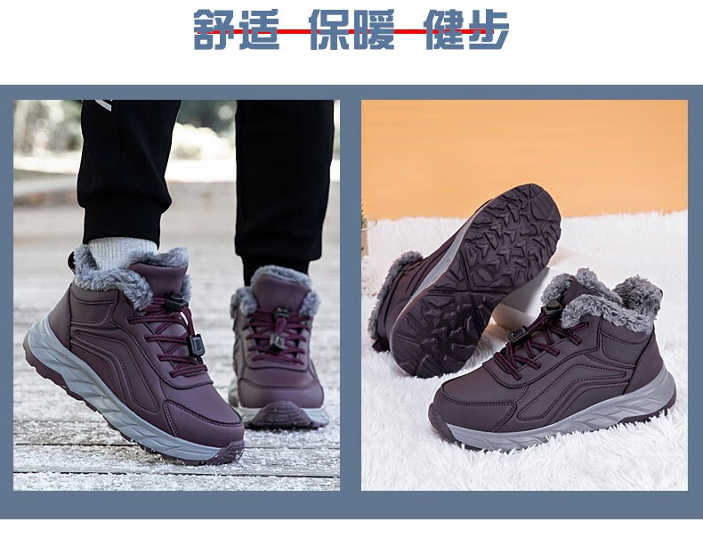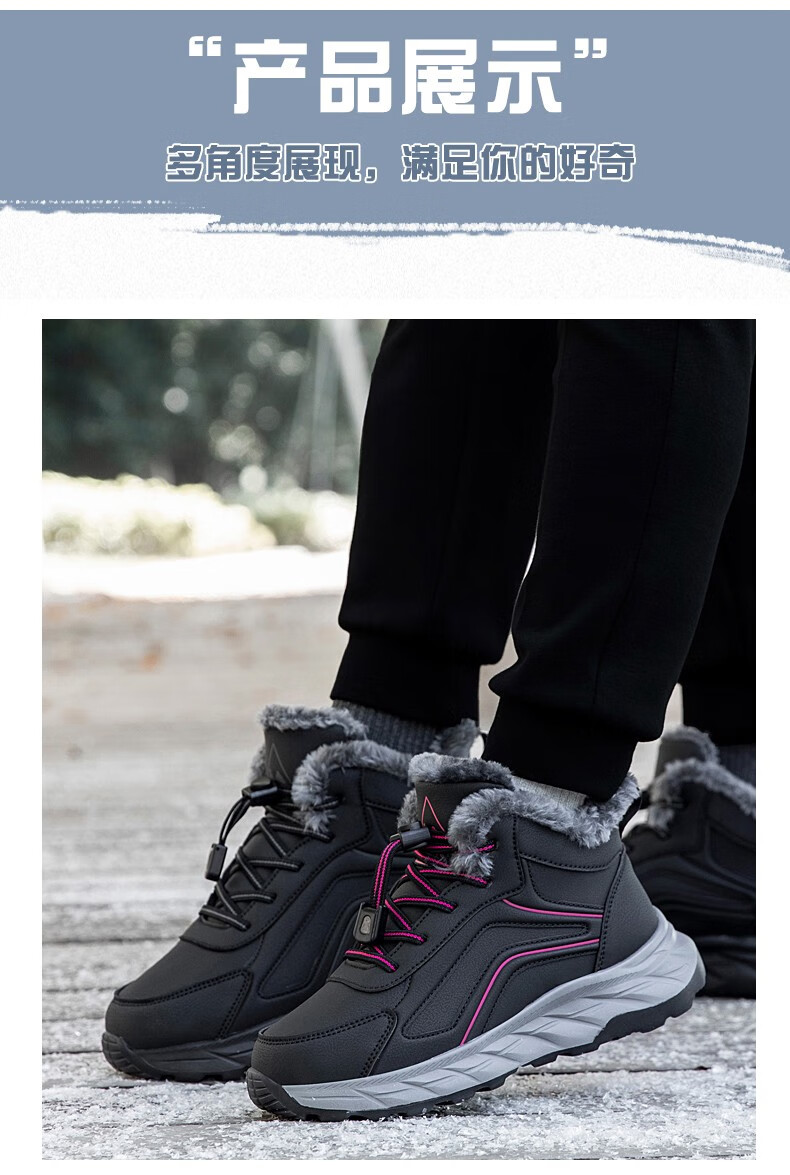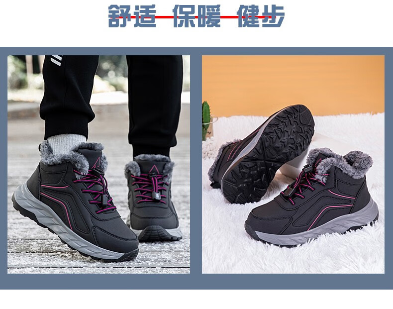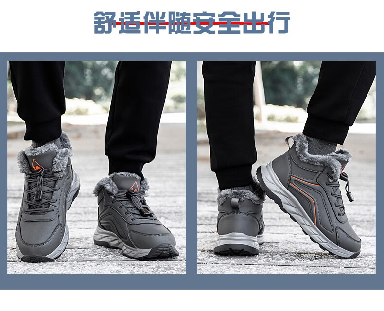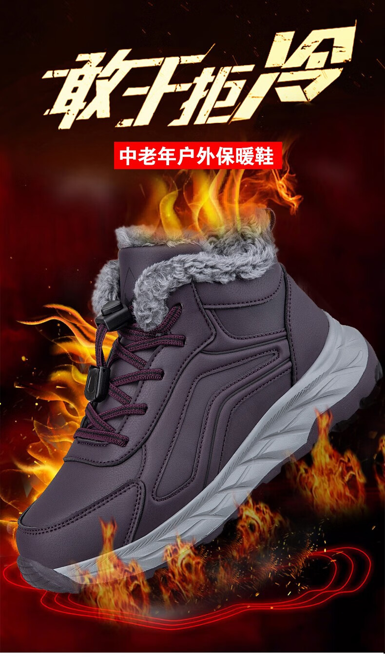 足力健大师健步老人棉鞋冬季女士加厚保暖鞋防滑中老年软底高帮雪地靴休闲鞋 8279加绒款黑色男款 加绒 45