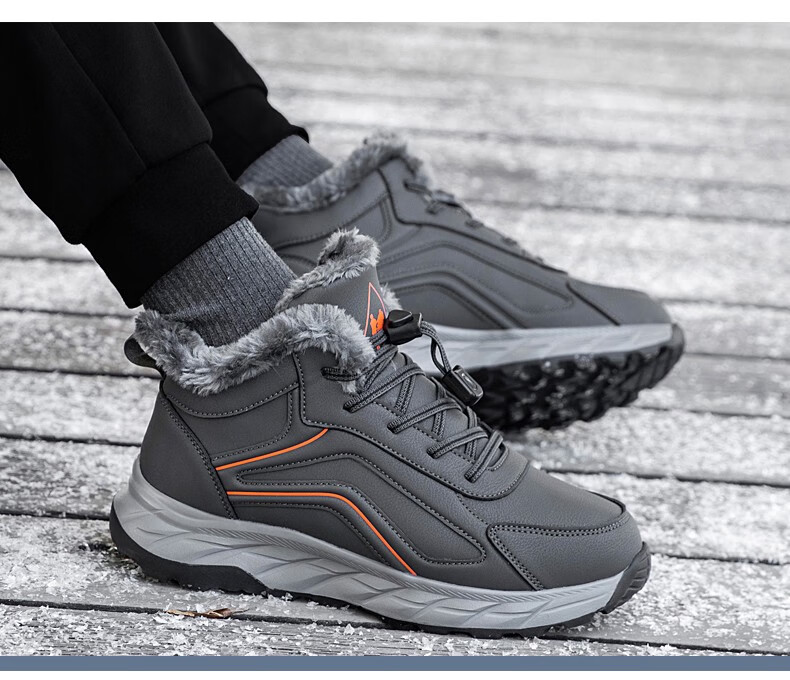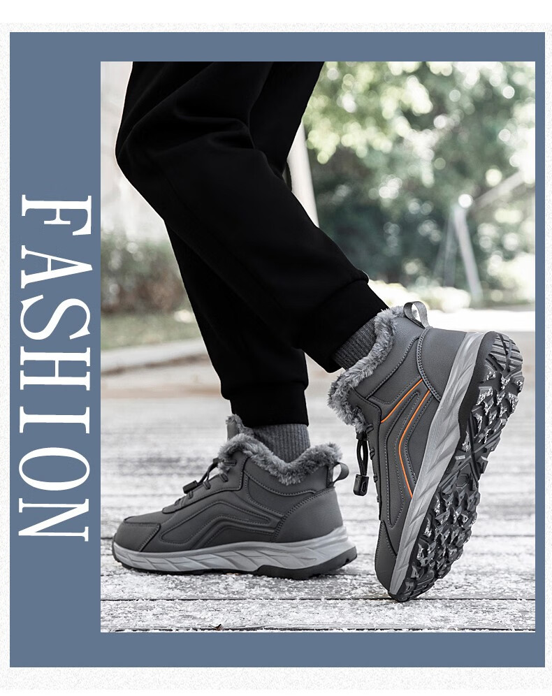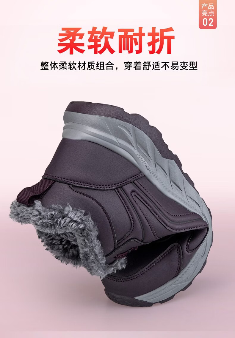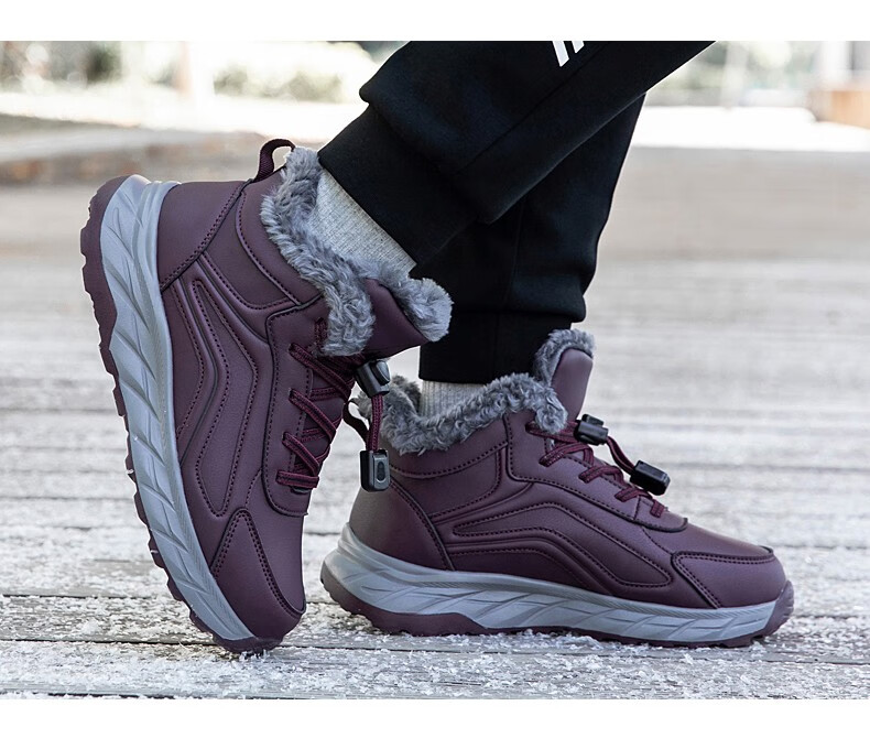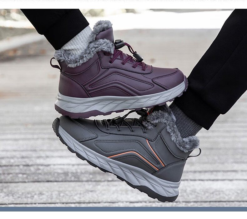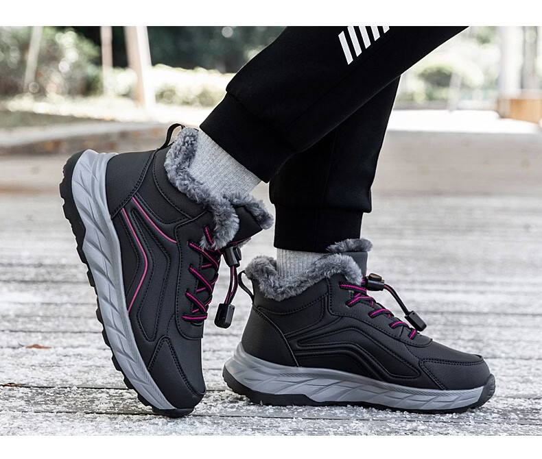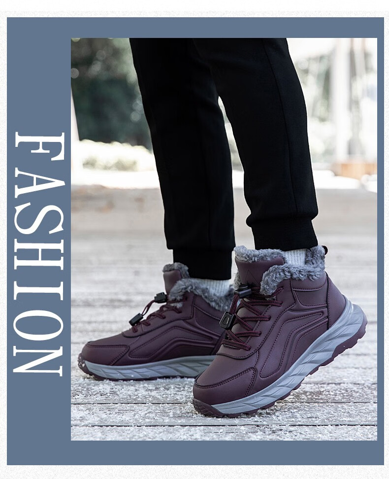 足力健大师健步老人棉鞋冬季女士加厚保暖鞋防滑中老年软底高帮雪地靴休闲鞋 8279加绒款黑色男款 加绒 45