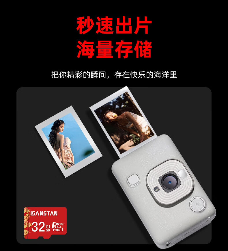 闪立派TF卡适用富士拍立得相机内存卡miniLiplay/EVO儿童相机摄影咪咪兔拍立得32G存储sd卡 TF32G【拍立得专用内存卡】+送读卡器