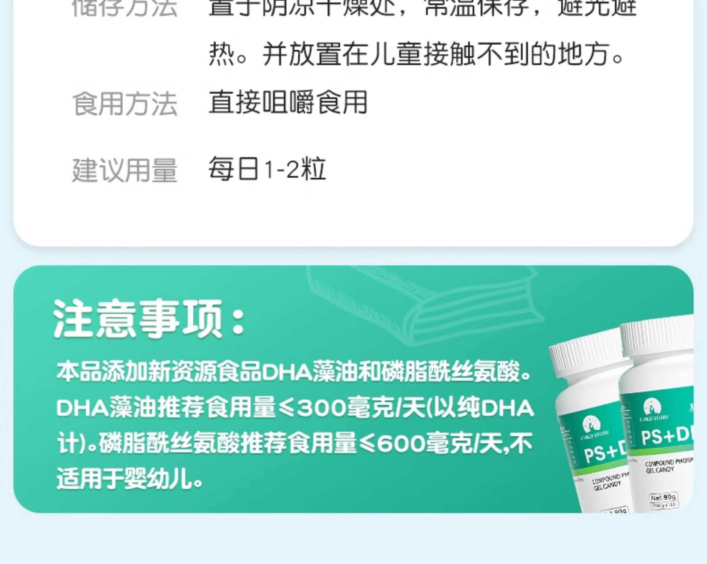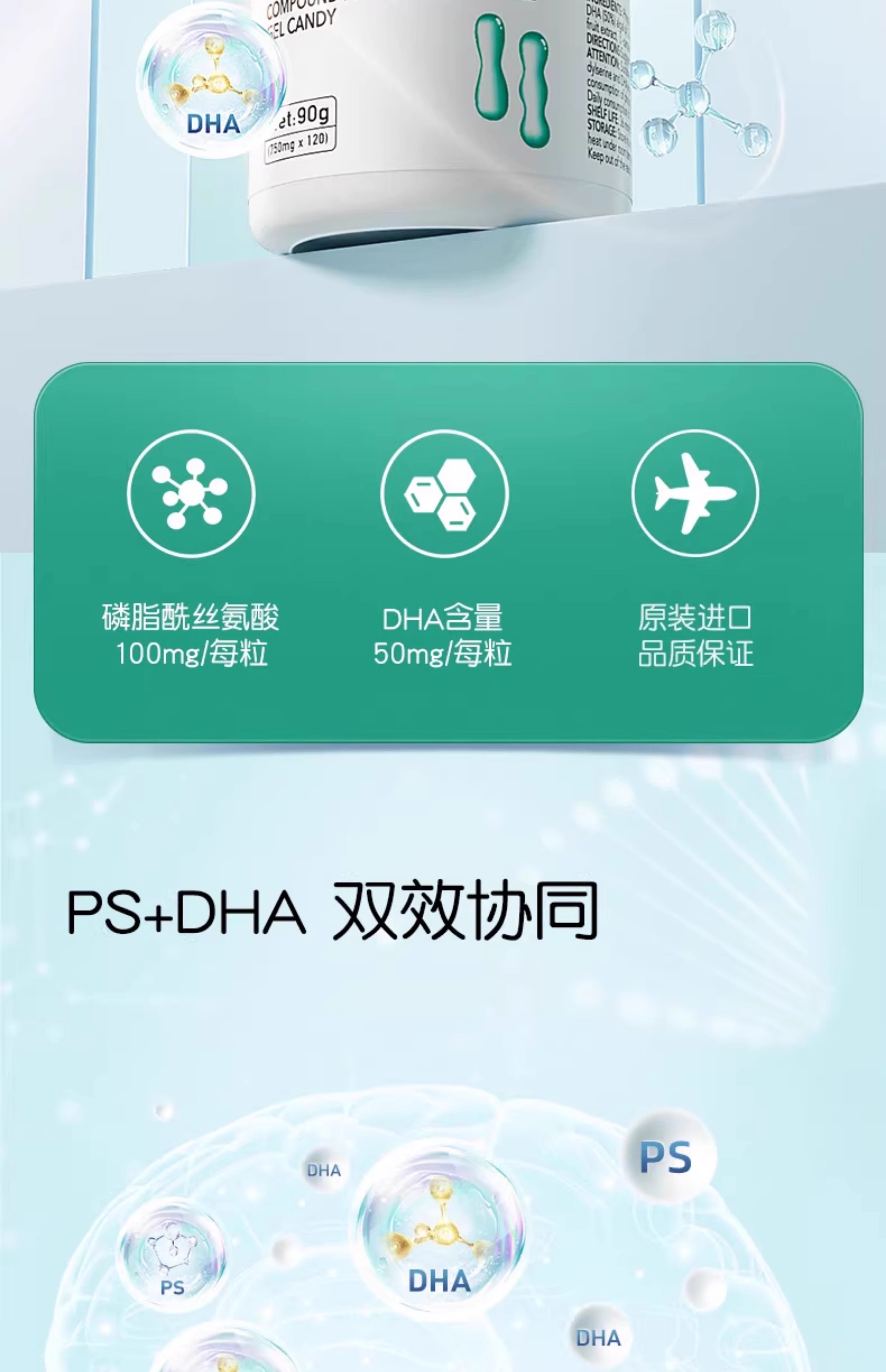 童年故事复合磷脂酰丝氨酸ps凝胶糖果120粒 DHA藻油+PS美国原装进口 【磷脂酰丝氨酸DHA+PS】120粒