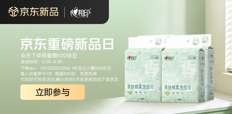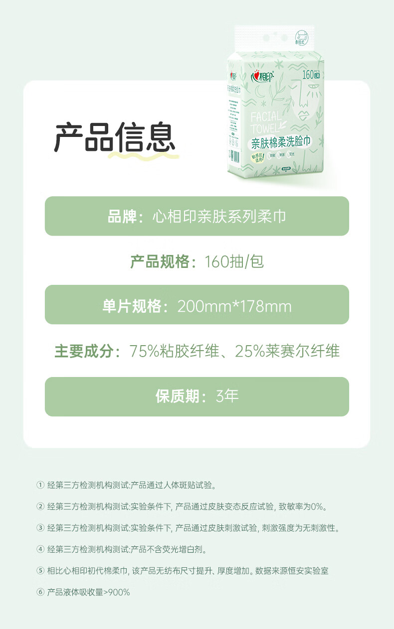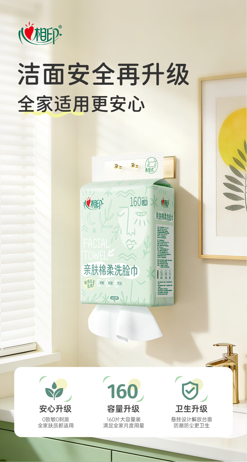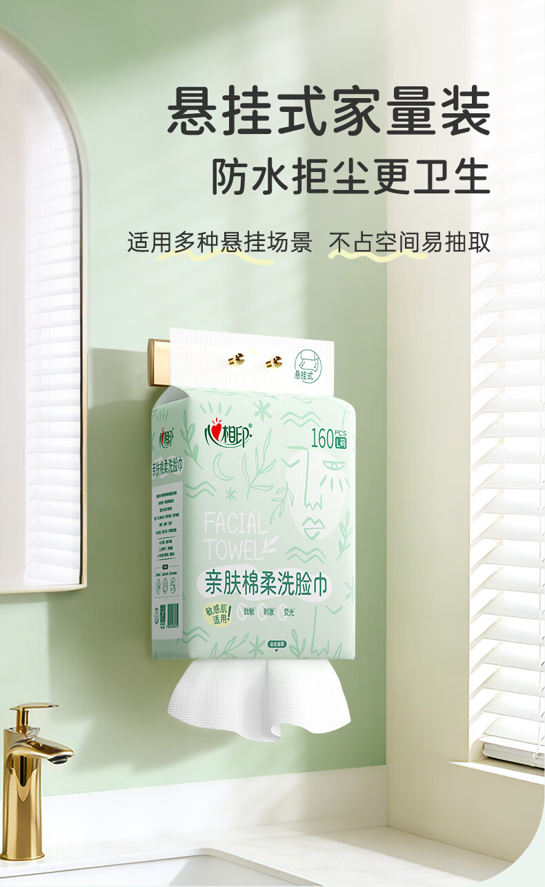 心相印洗脸巾亲肤系列160抽4提悬挂式一次性壁挂式擦脸巾洁面巾
