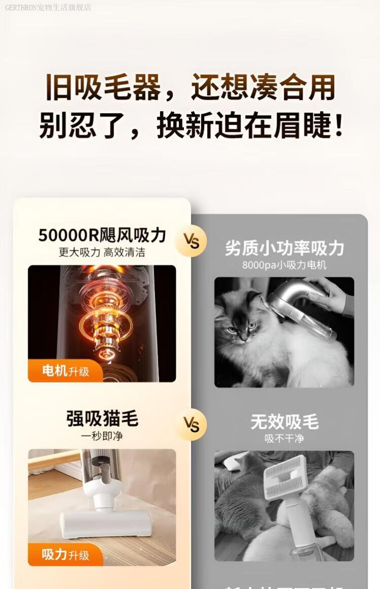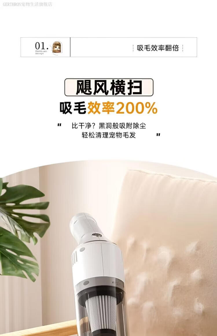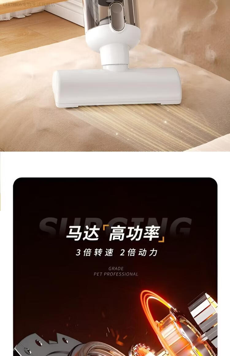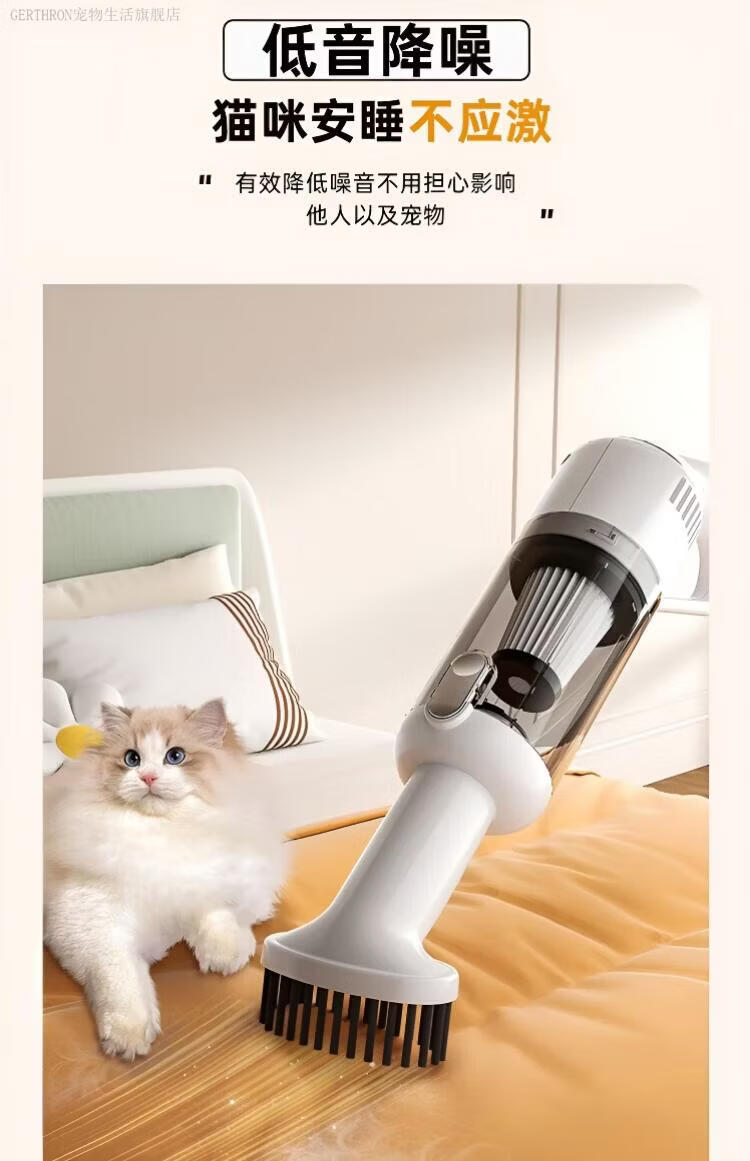 GERTHRON德国宠物吸毛器空气浮毛边梳边吸床上手持吸尘器大吸力吸猫毛神器 白色【增强款】500000转 拍1发8