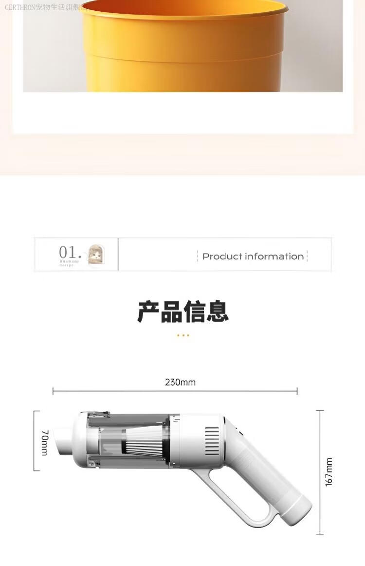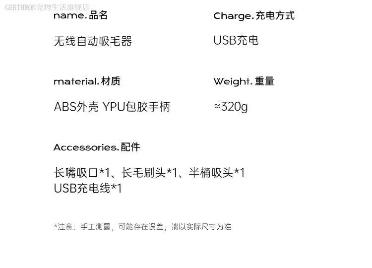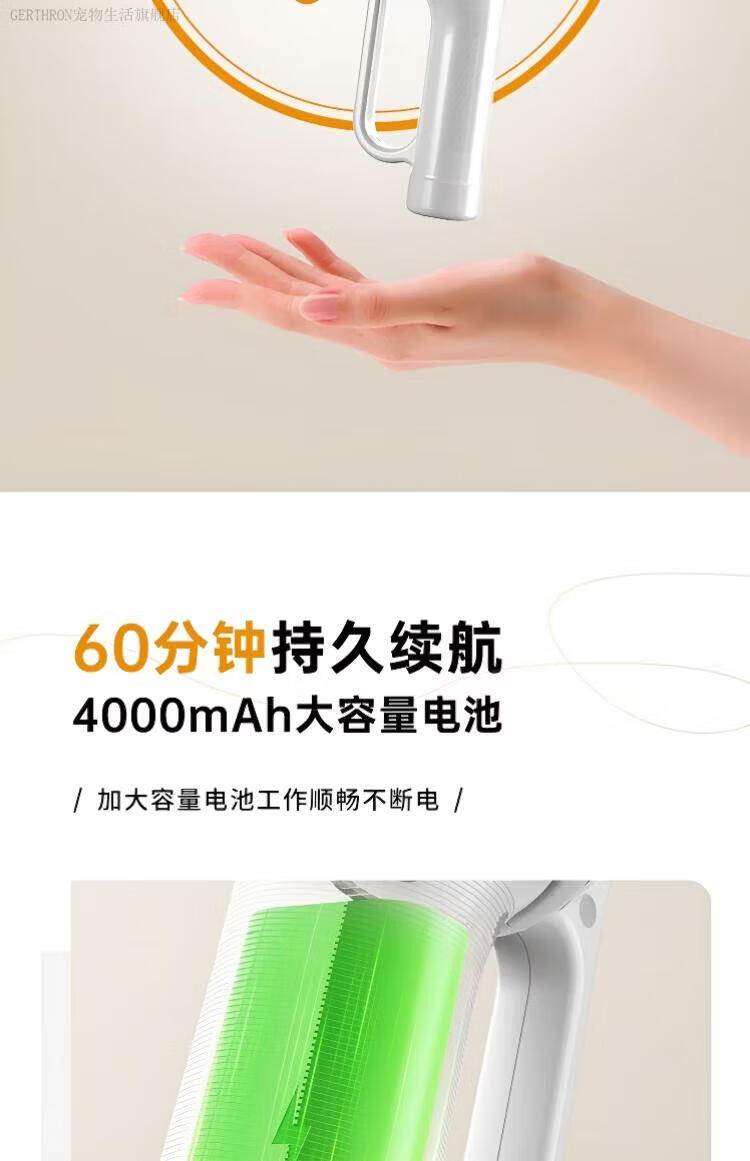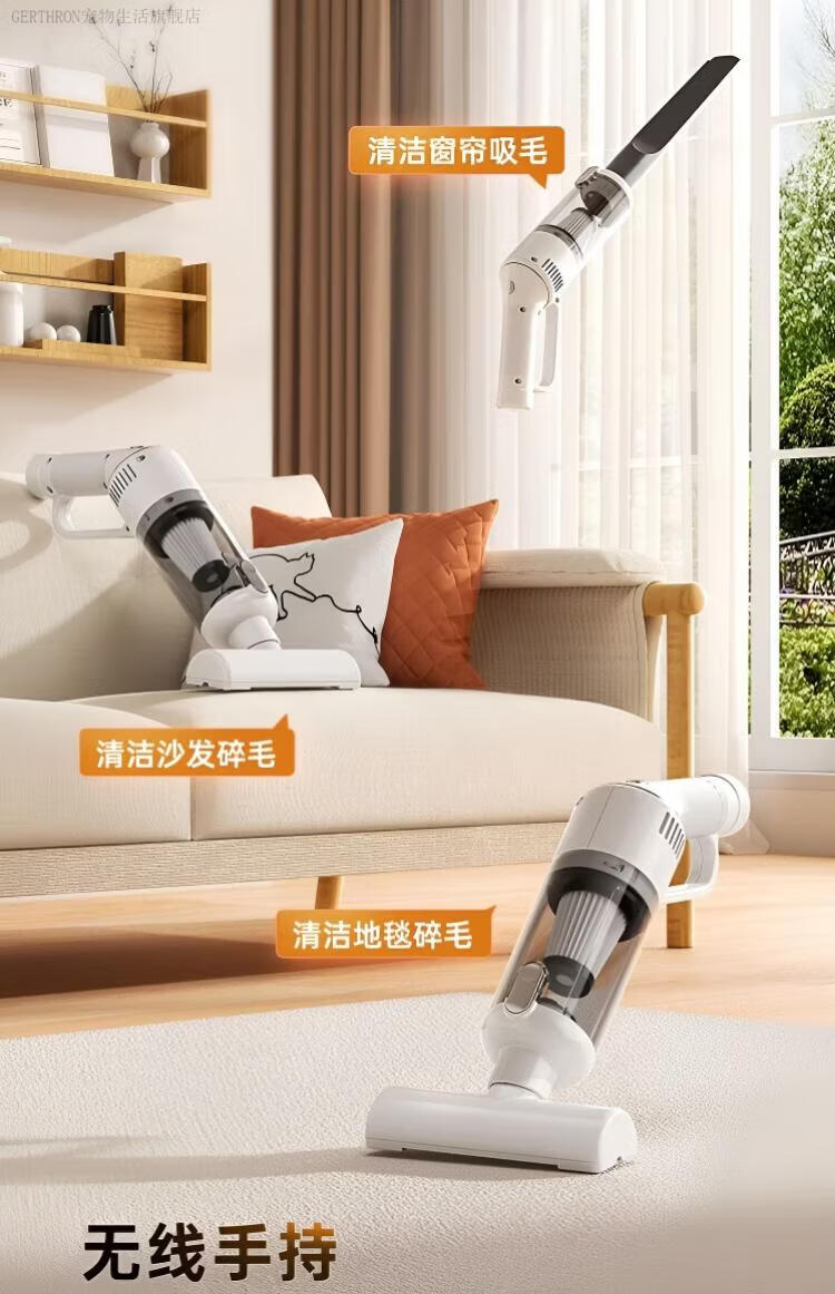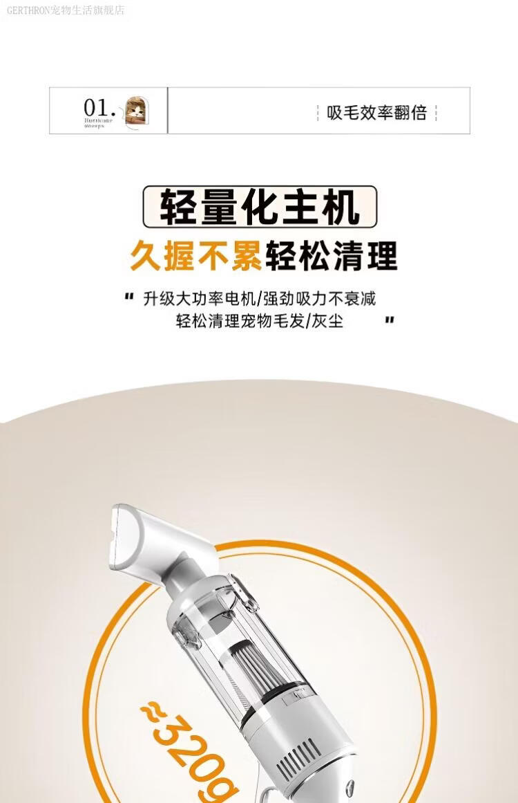 GERTHRON德国宠物吸毛器空气浮毛边梳边吸床上手持吸尘器大吸力吸猫毛神器 白色【增强款】500000转 拍1发8