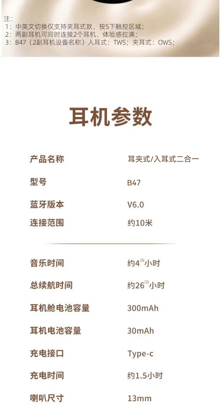 音贝奇新款ClipAir无线蓝牙耳机AI翻译耳夹式气骨传导概念开放式耳机不入耳运动挂耳式
