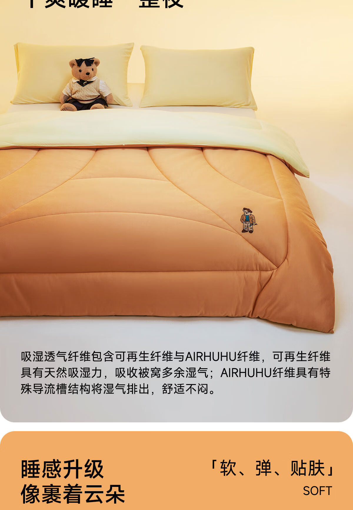 Teenie Weenie小熊春夏新款A类抗菌控温被春秋被子被芯宿舍单人双人加大四季被 四季被-暖阳橙【A类标准+抗菌防螨】 150x200cm—【适合单人使用】