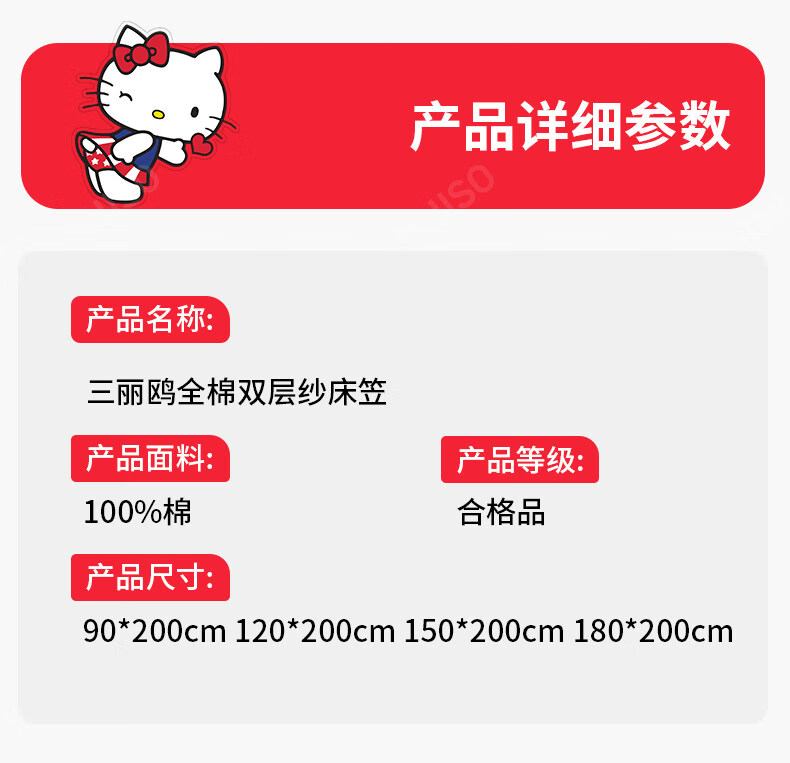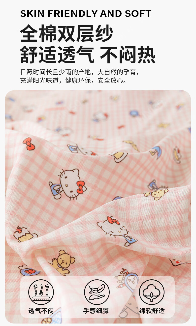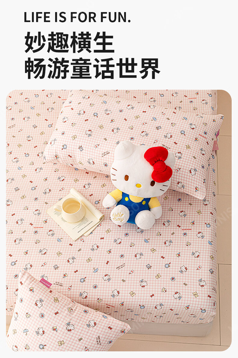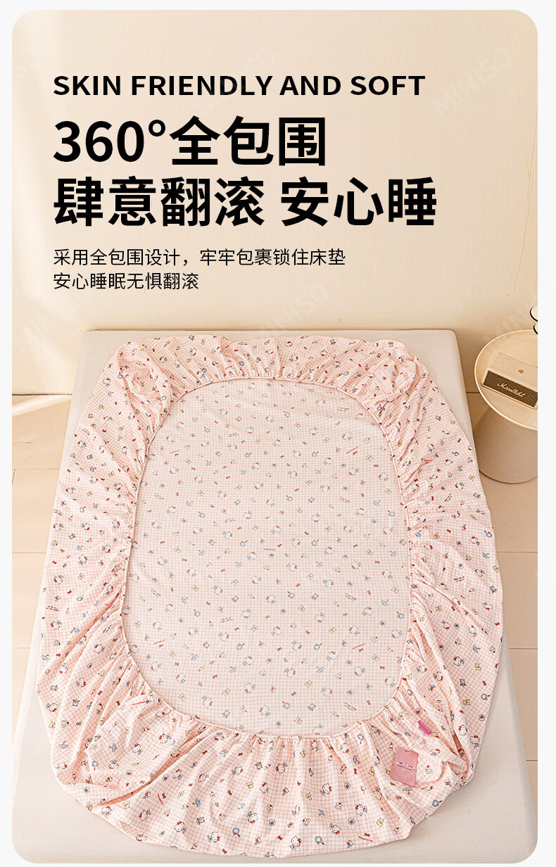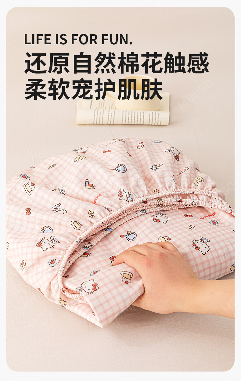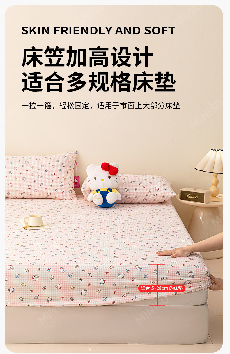 名创优品(MINISO)HelloKitty纯棉双层纱床笠1.8米x2米 儿童全棉床罩床垫保护套 KT酱【HelloKitty正版授权舒适透气】 150cm*200cm 单床笠