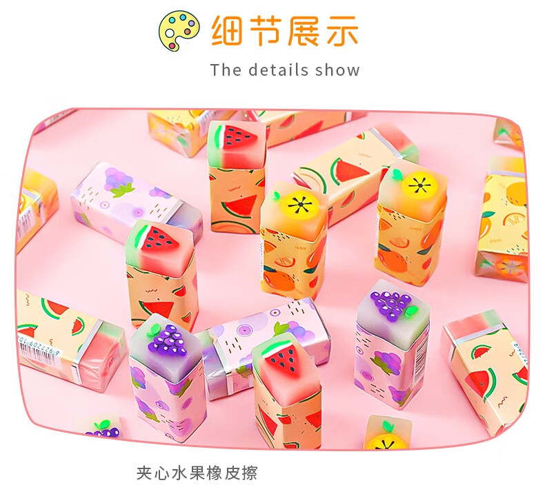 离草橡皮擦小学生专用无屑干净铅笔橡皮擦巨干净幼儿园小学生学习用品卡通水果夹心橡皮 9个