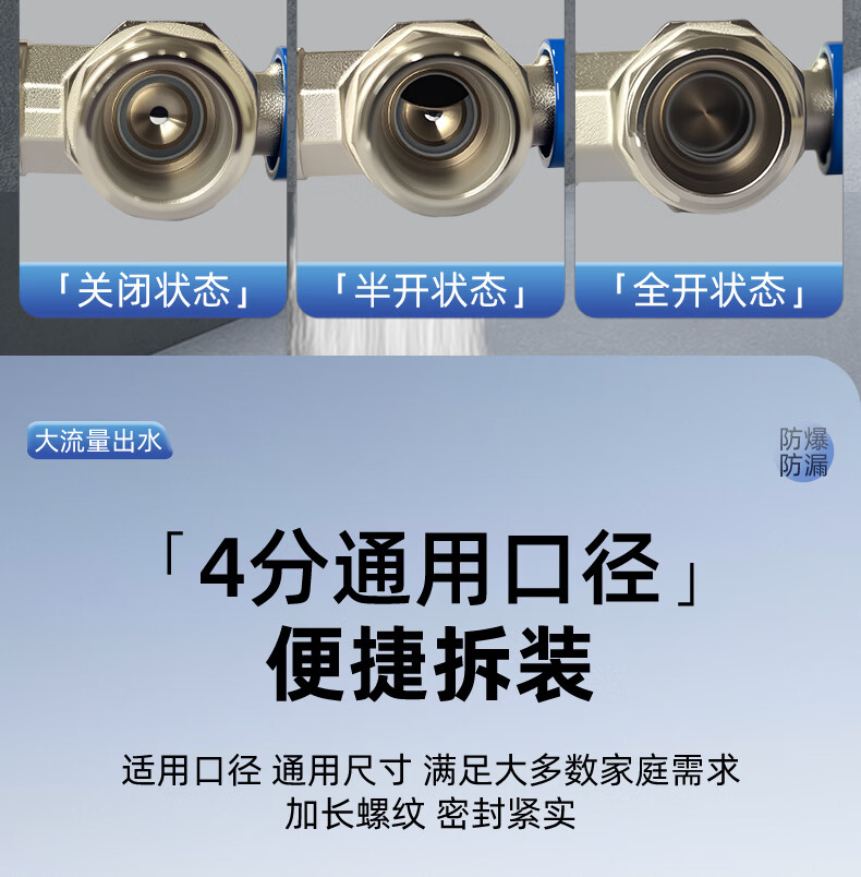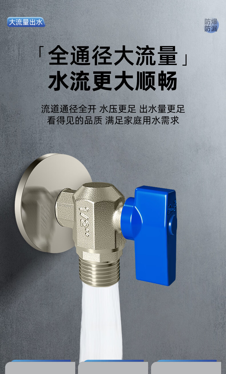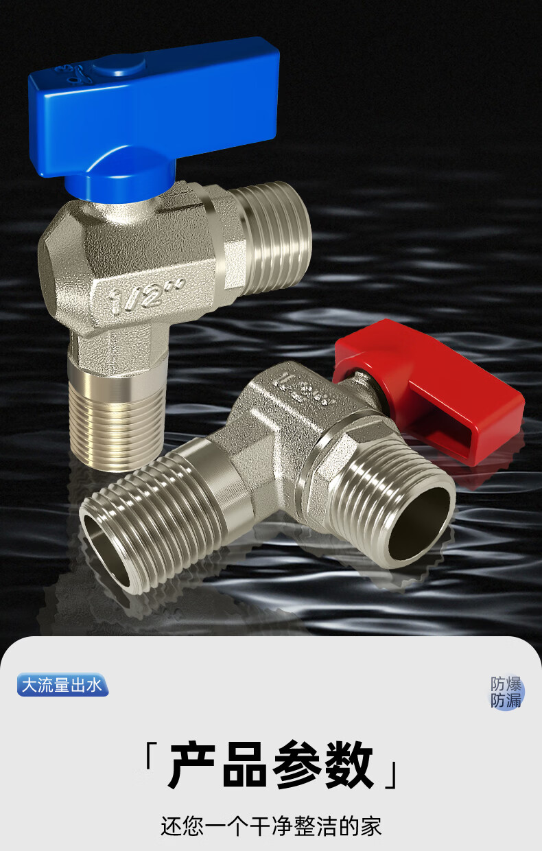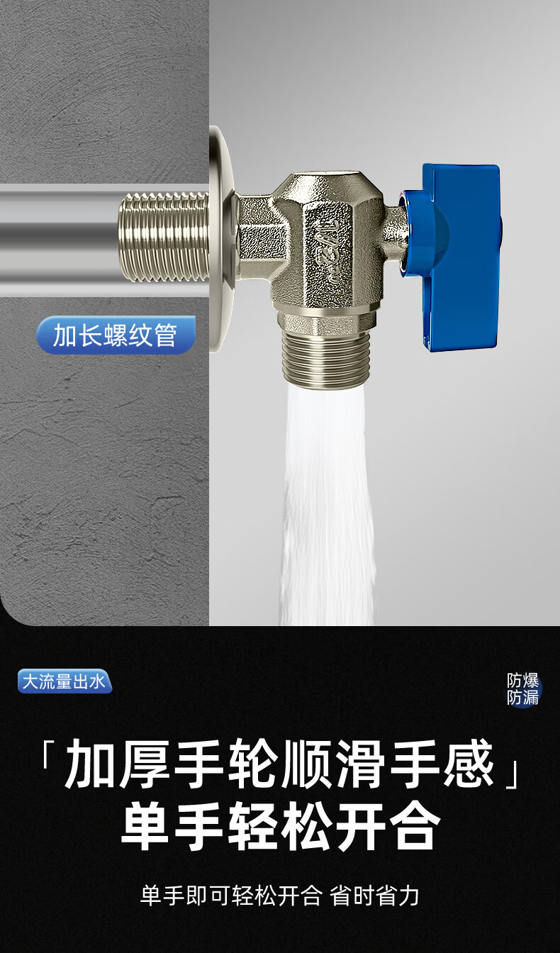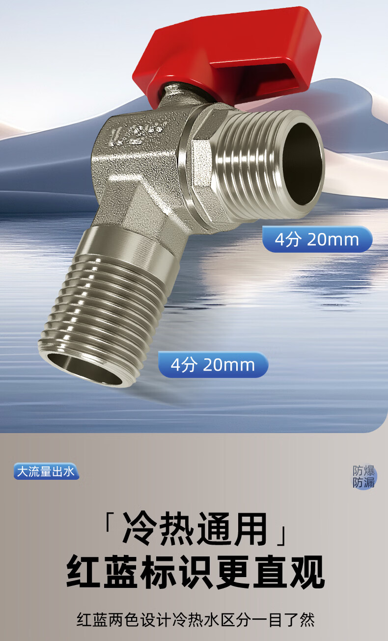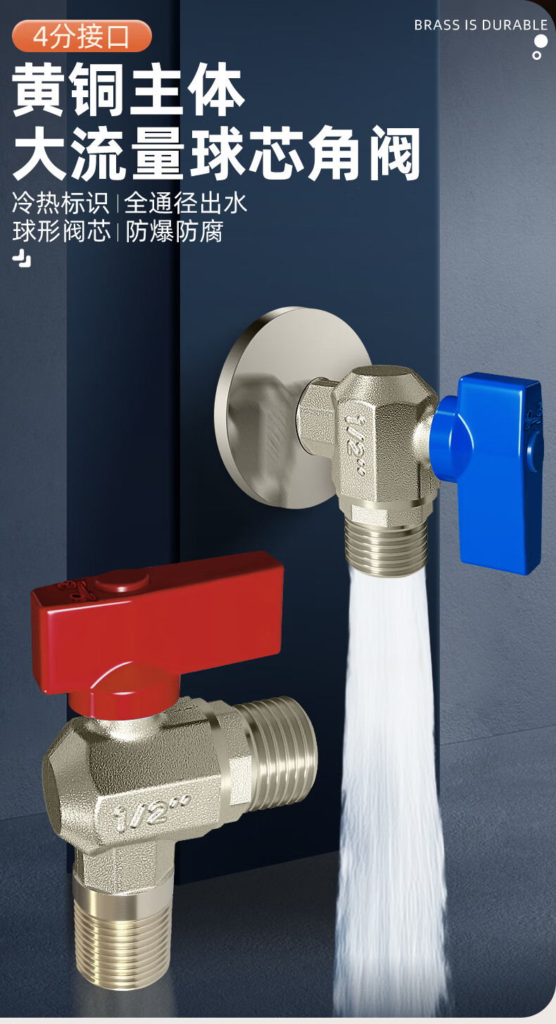 一靓球形角阀全开大流量球阀冷热水燃气热水器大流量水阀水开关阀门 4分DN15大流量球阀全开【热水蓝标】