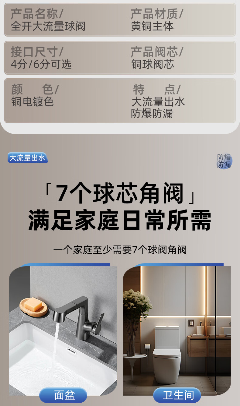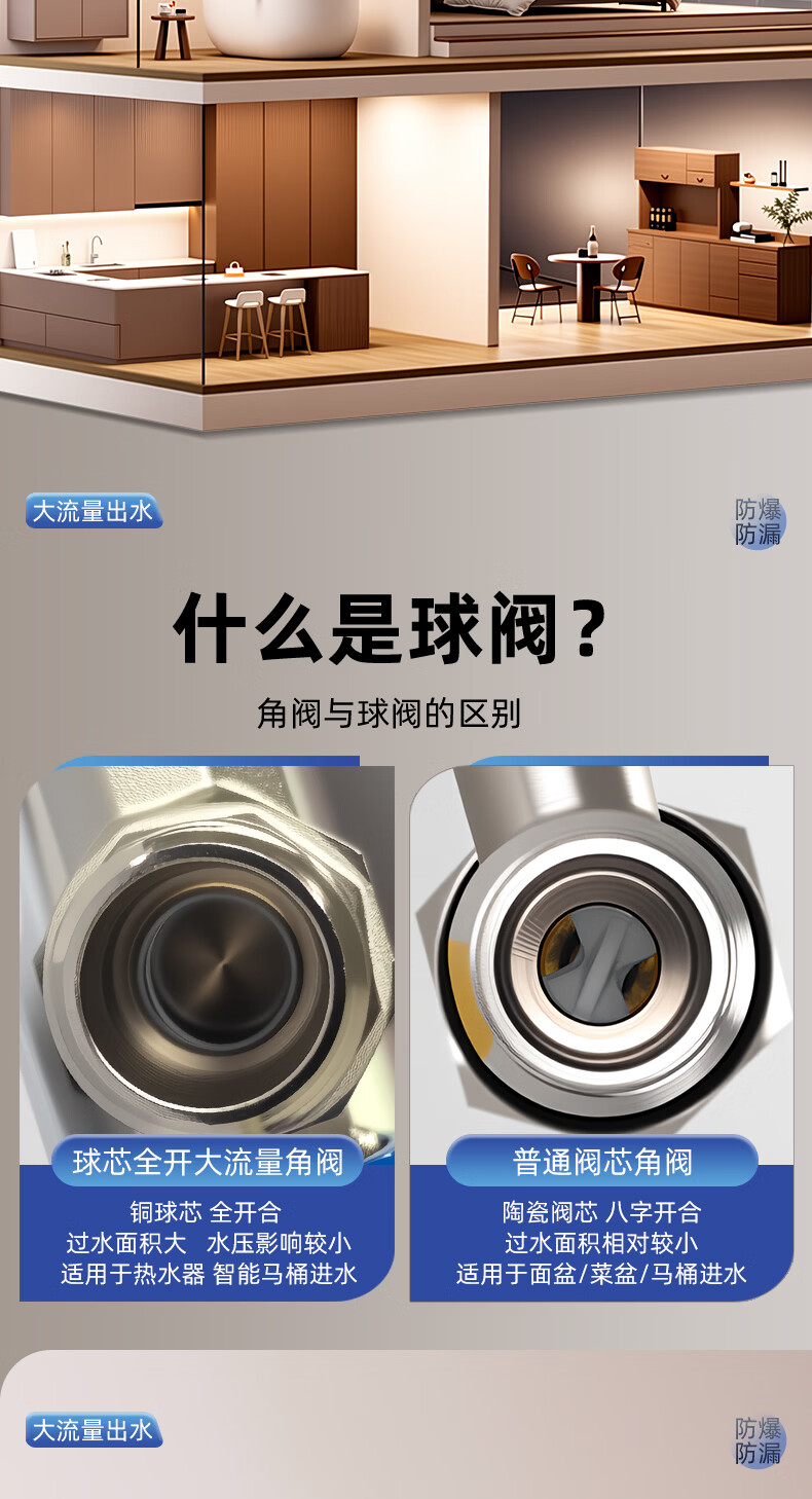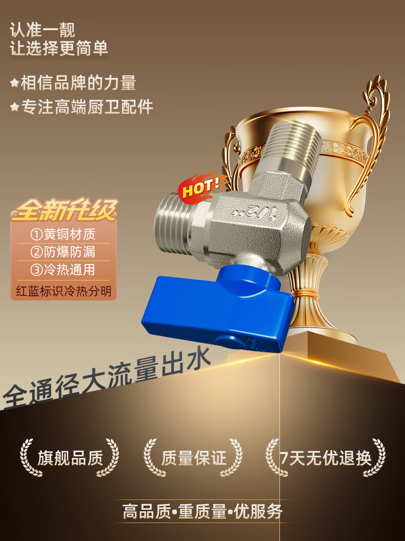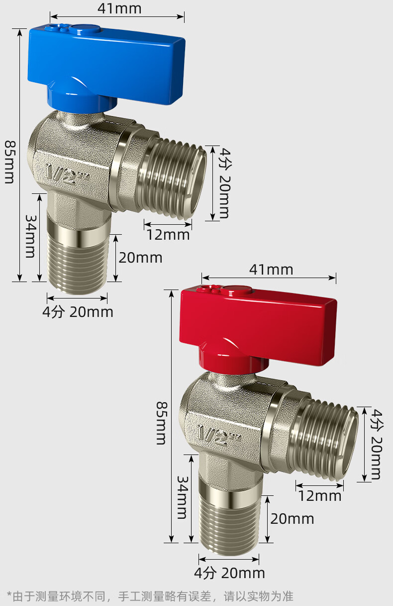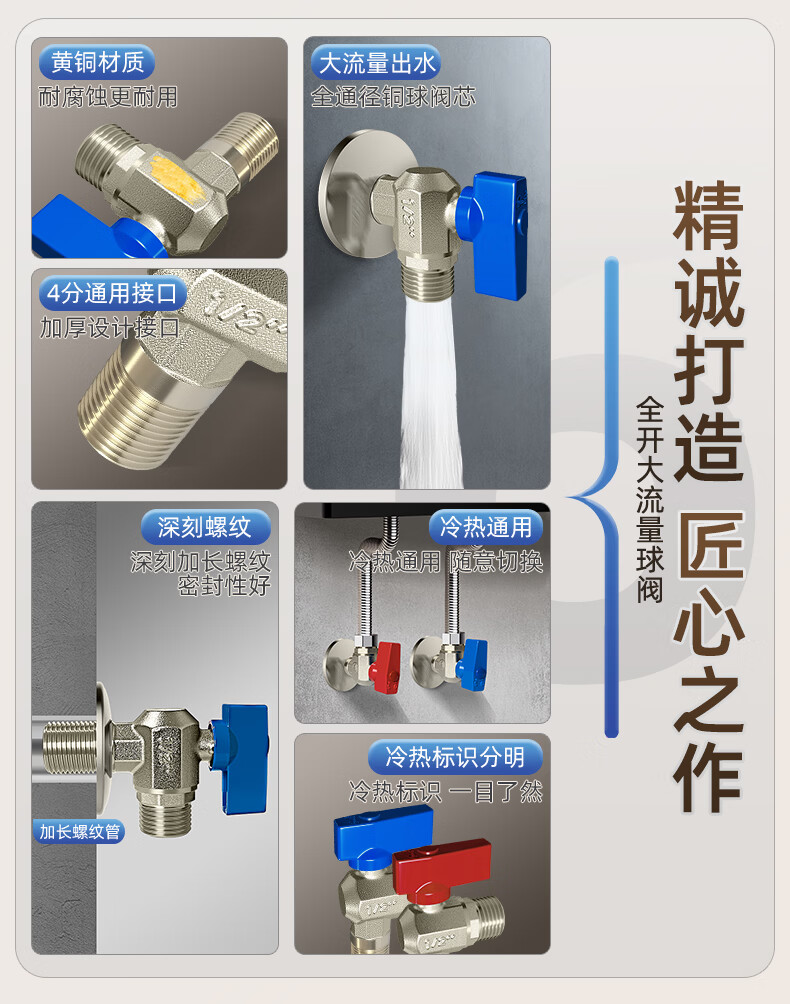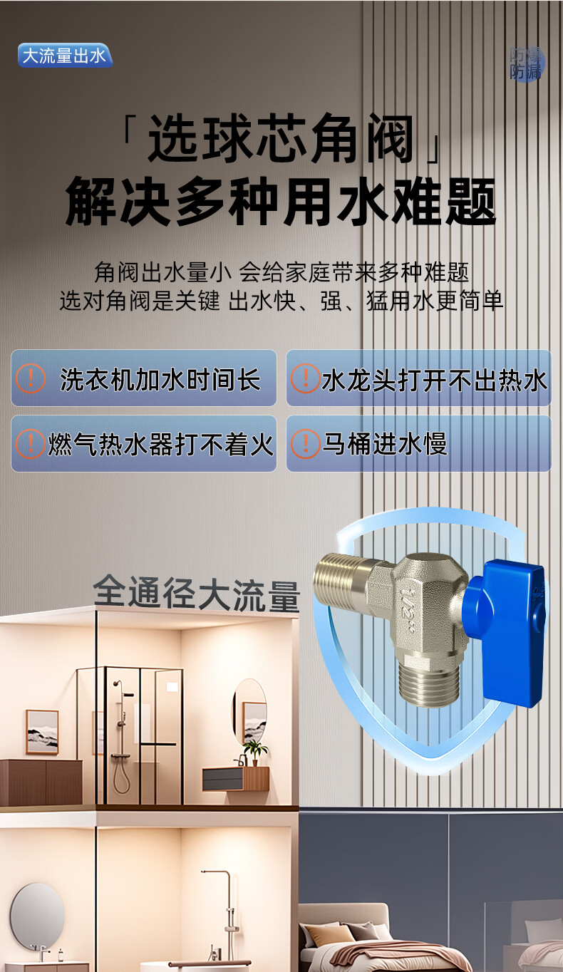 一靓球形角阀全开大流量球阀冷热水燃气热水器大流量水阀水开关阀门 4分DN15大流量球阀全开【热水蓝标】