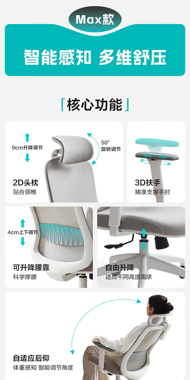 全友家居电竞椅子人体工学椅可躺电脑椅家用办公椅舒适久坐可升降KS Max款【灰色】