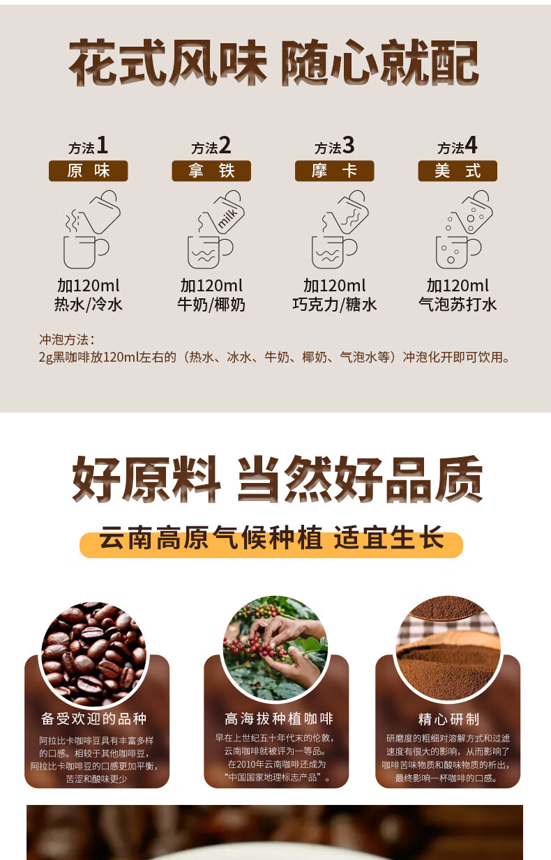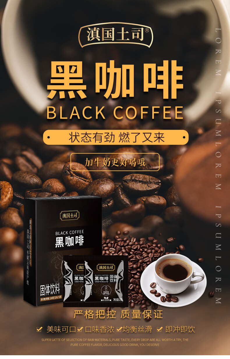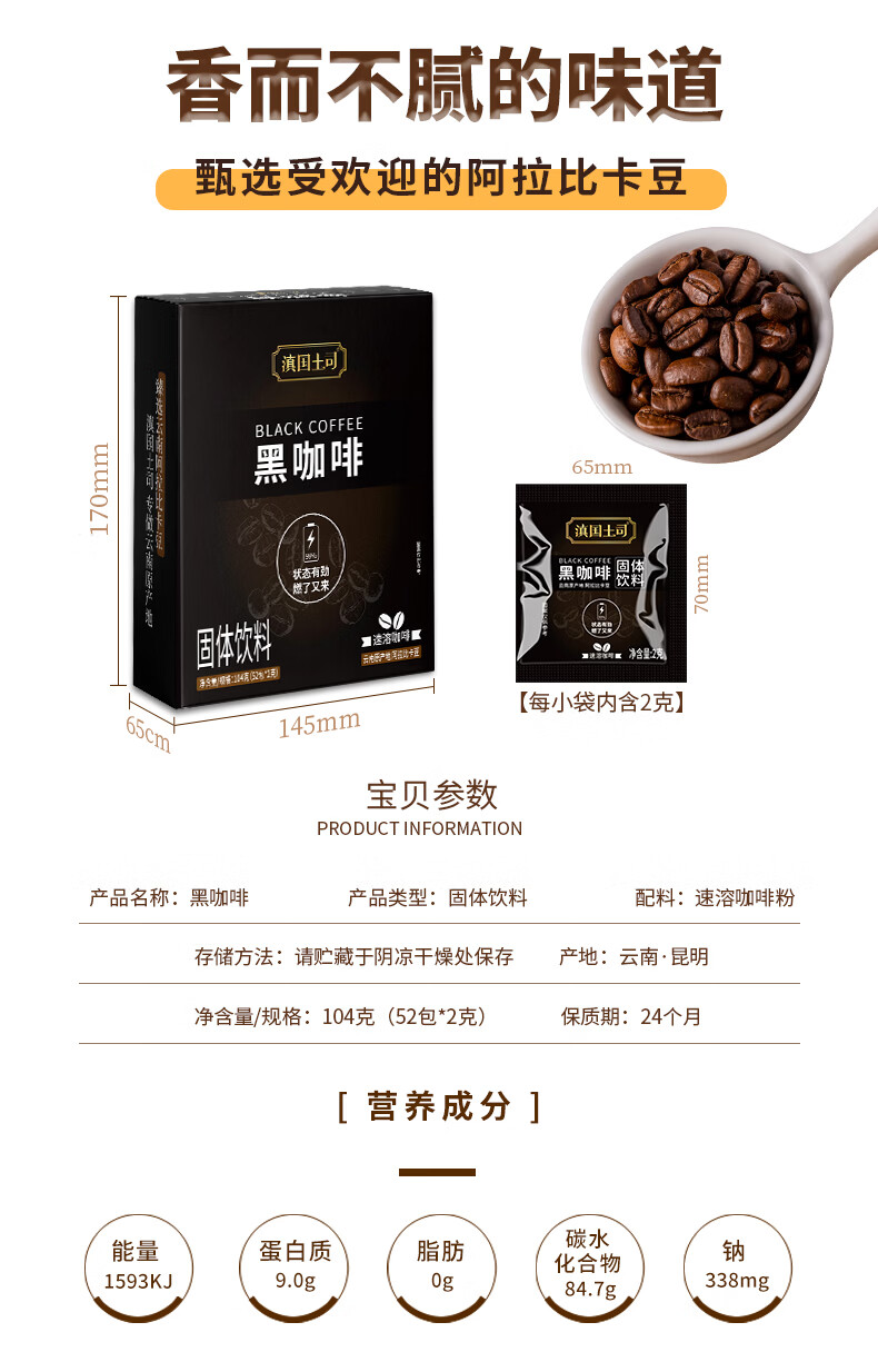 滇国土司黑咖啡云南咖啡粉烘美式速溶0脂肪0蔗糖运动健身冲饮黑咖 黑咖啡2盒104袋【0脂0蔗糖】