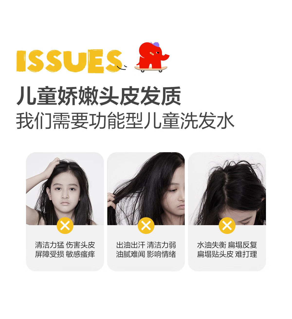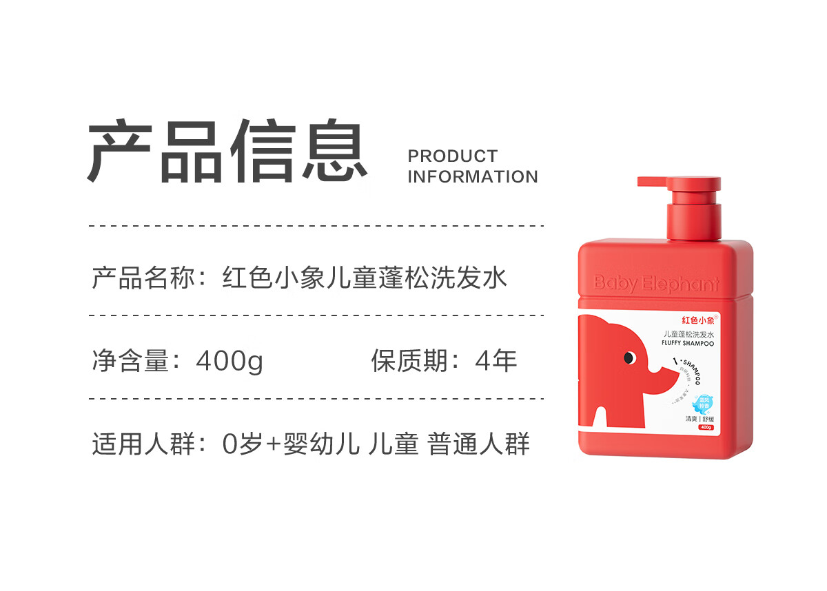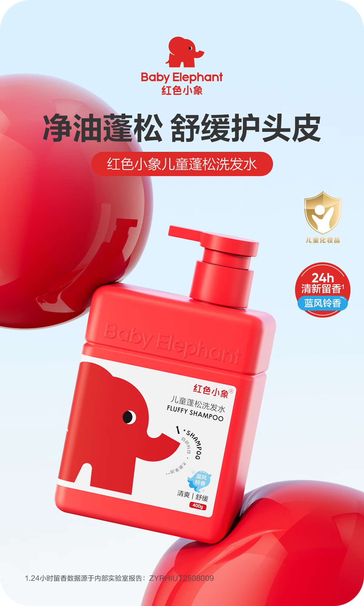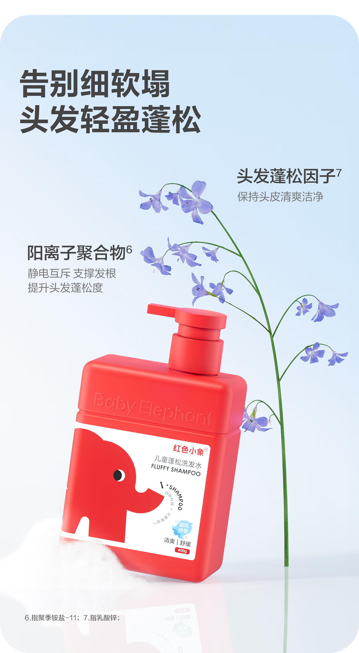 红色小象儿童蓬松洗发水 3-6-12-15岁 无硅油弱酸性 蓬松舒缓头皮400g