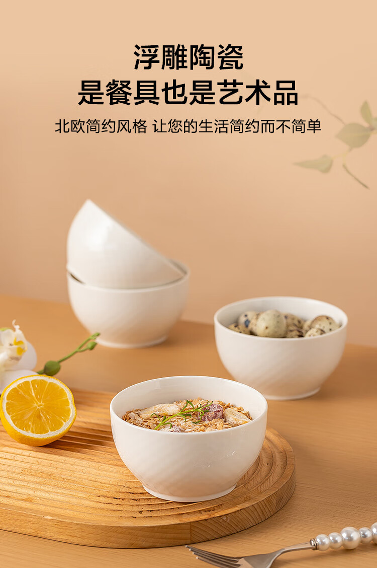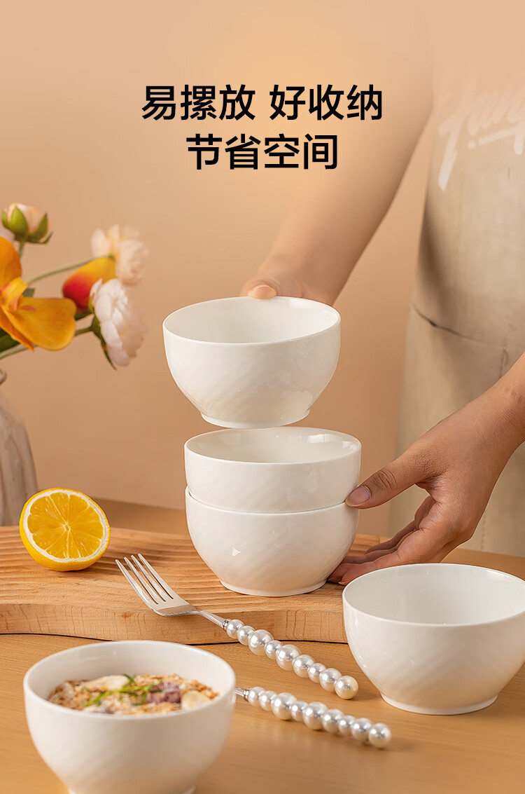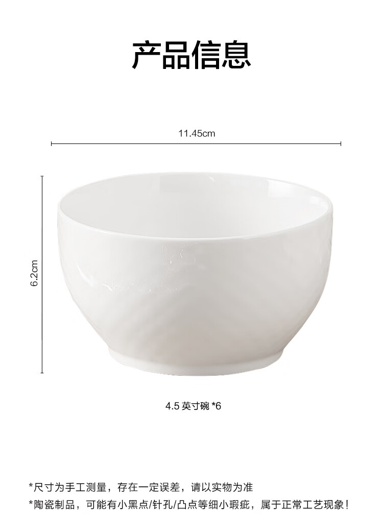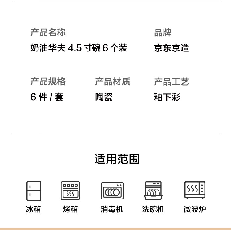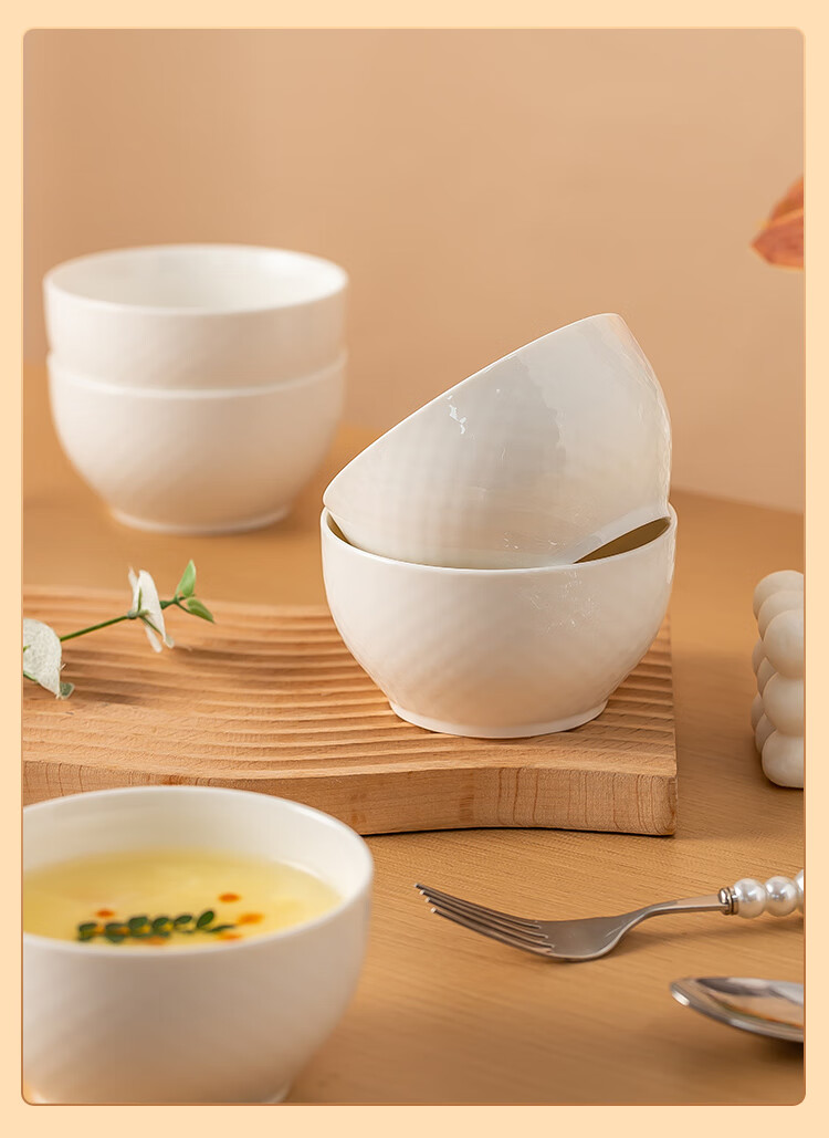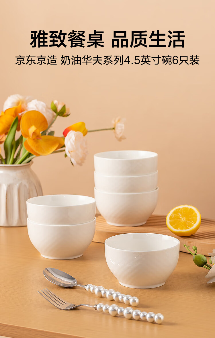 京东京造 汤碗 米饭面陶瓷景德镇餐具套装家用蒸蛋碗 奶油华夫 4.5英寸*6