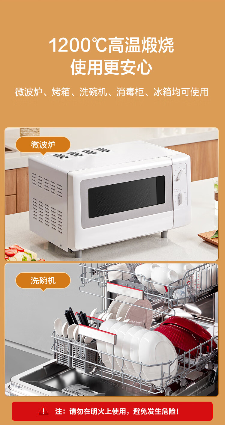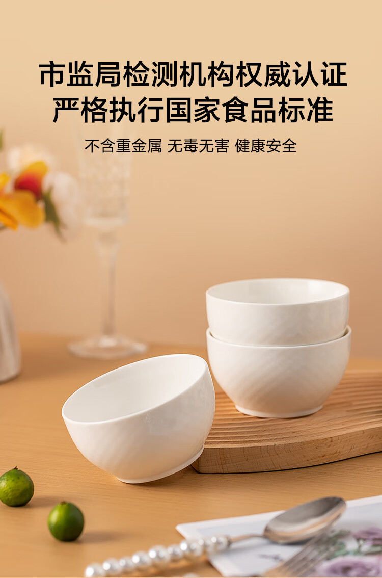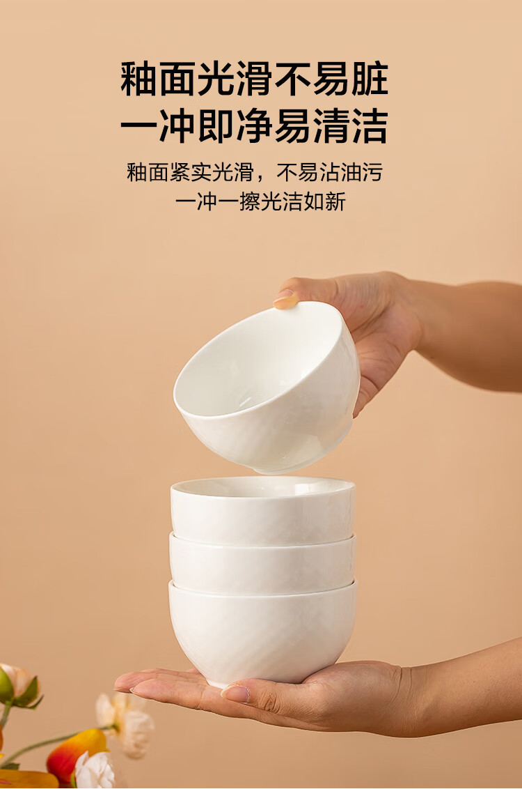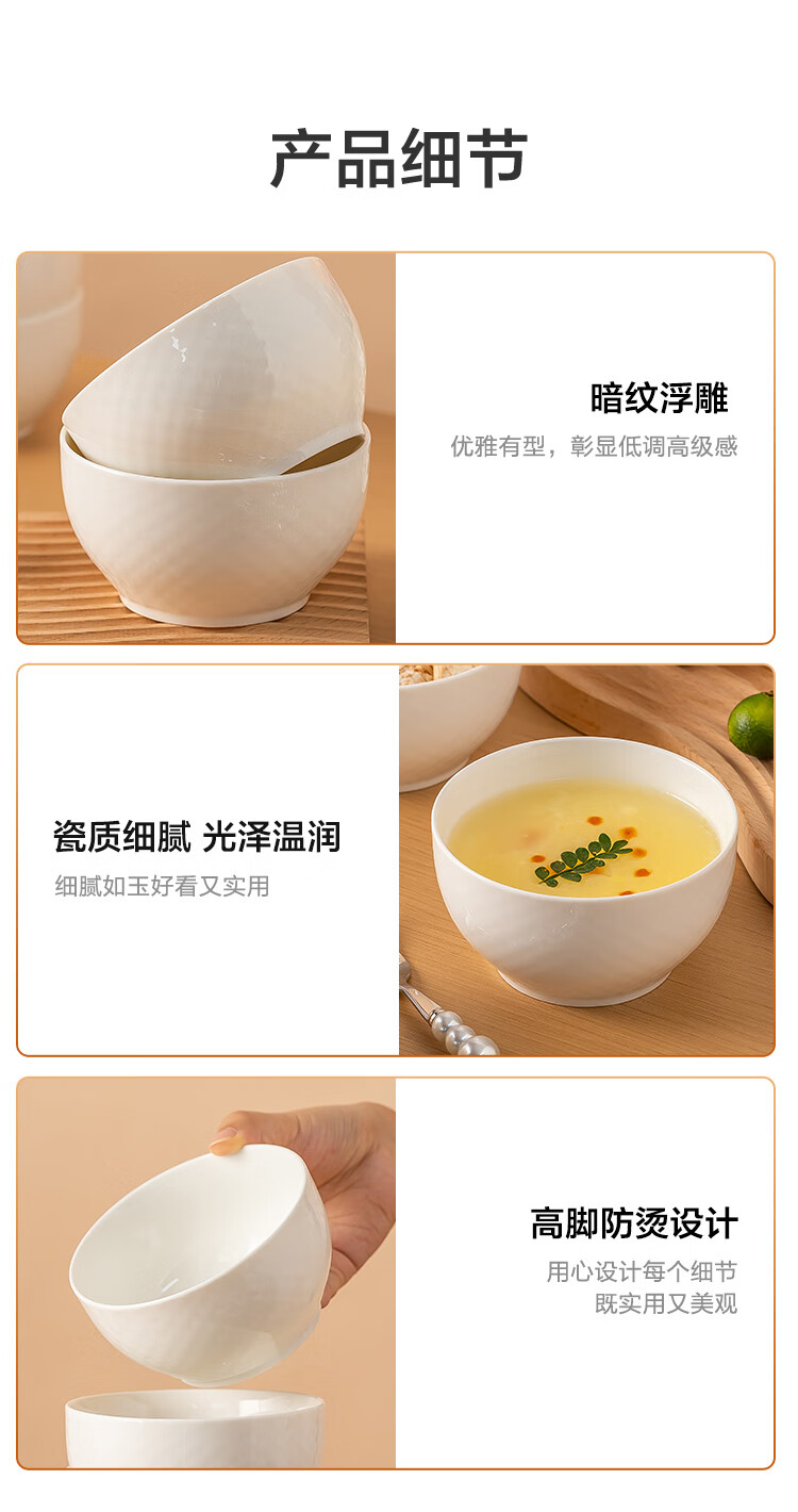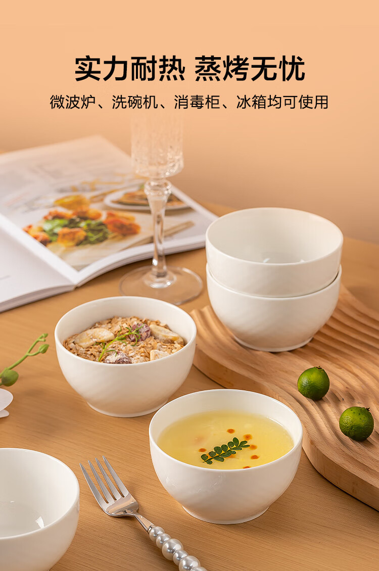 京东京造 汤碗 米饭面陶瓷景德镇餐具套装家用蒸蛋碗 奶油华夫 4.5英寸*6