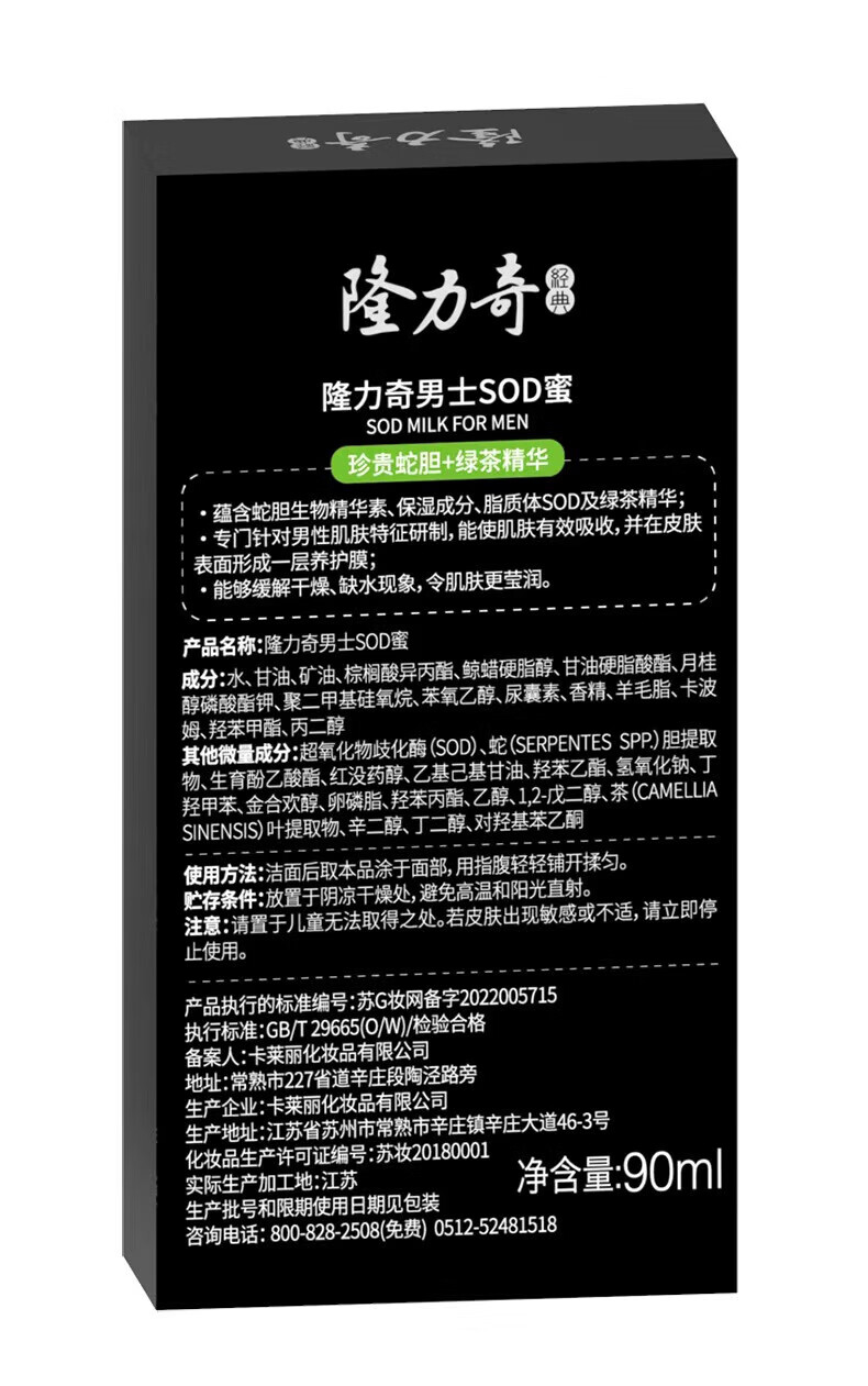 隆力奇男士蛇胆SOD蜜90ml*2瓶补水保湿滋润身体乳液面霜【临期清仓】