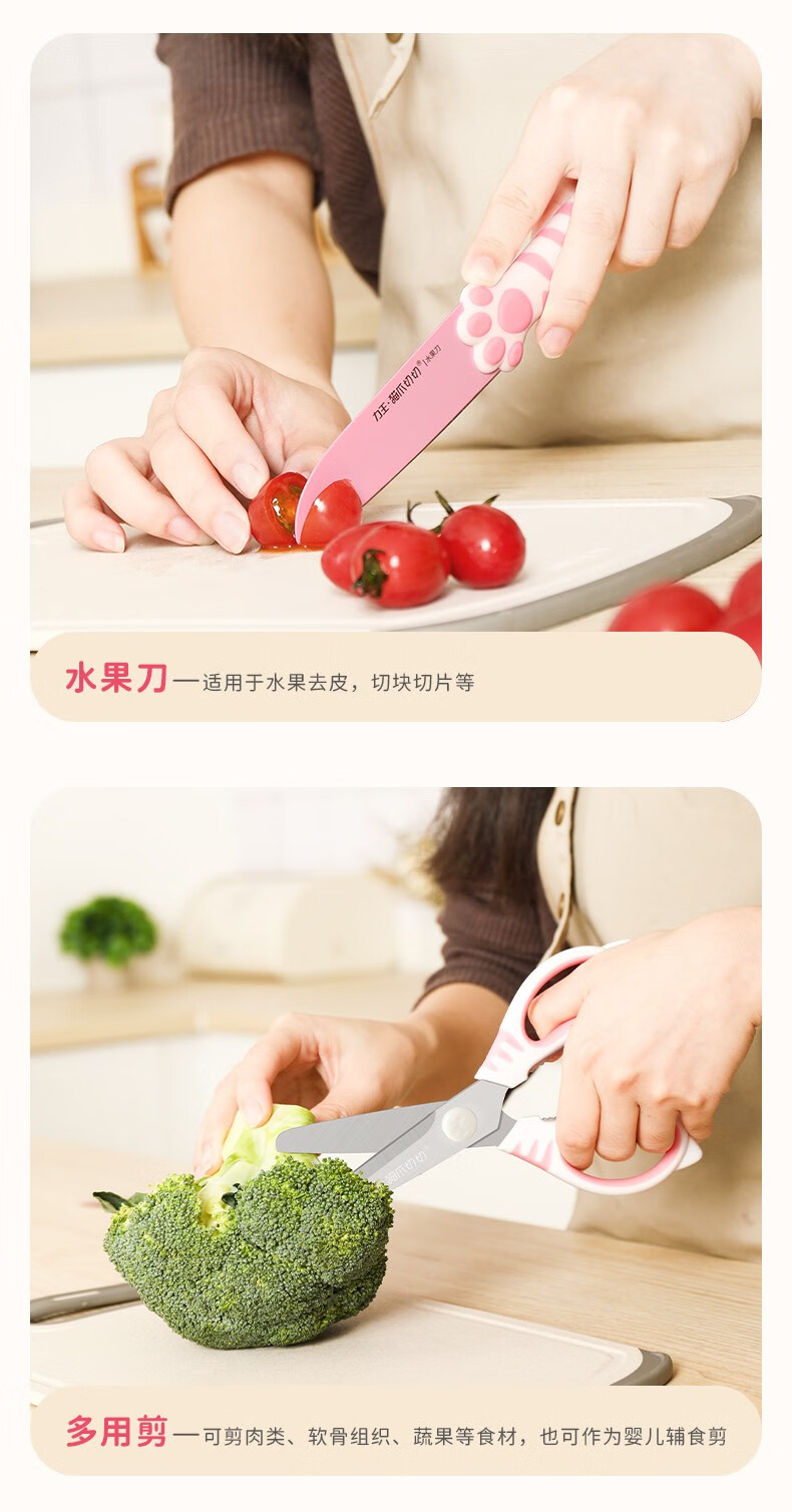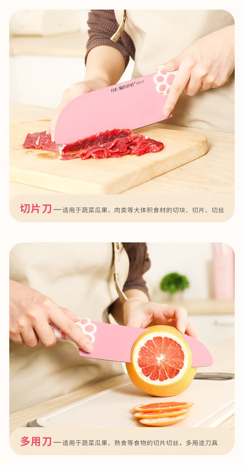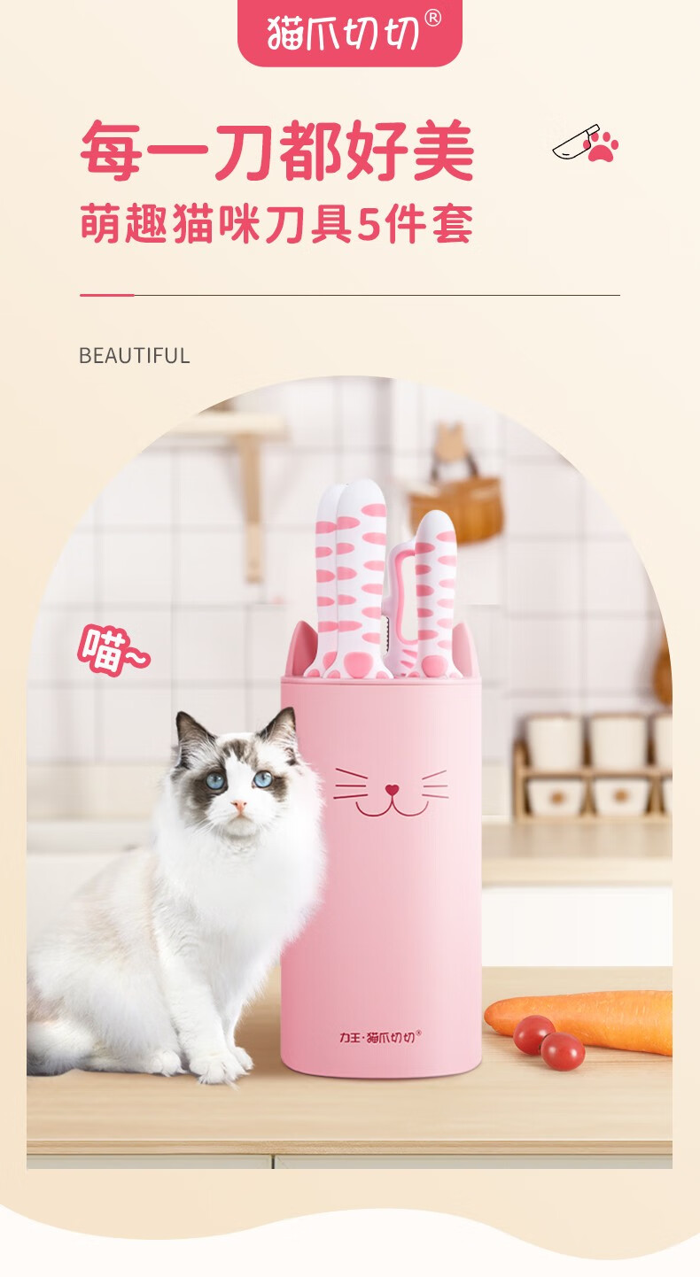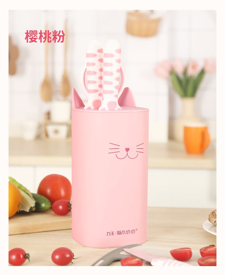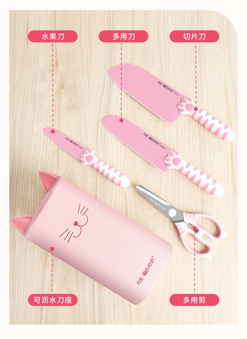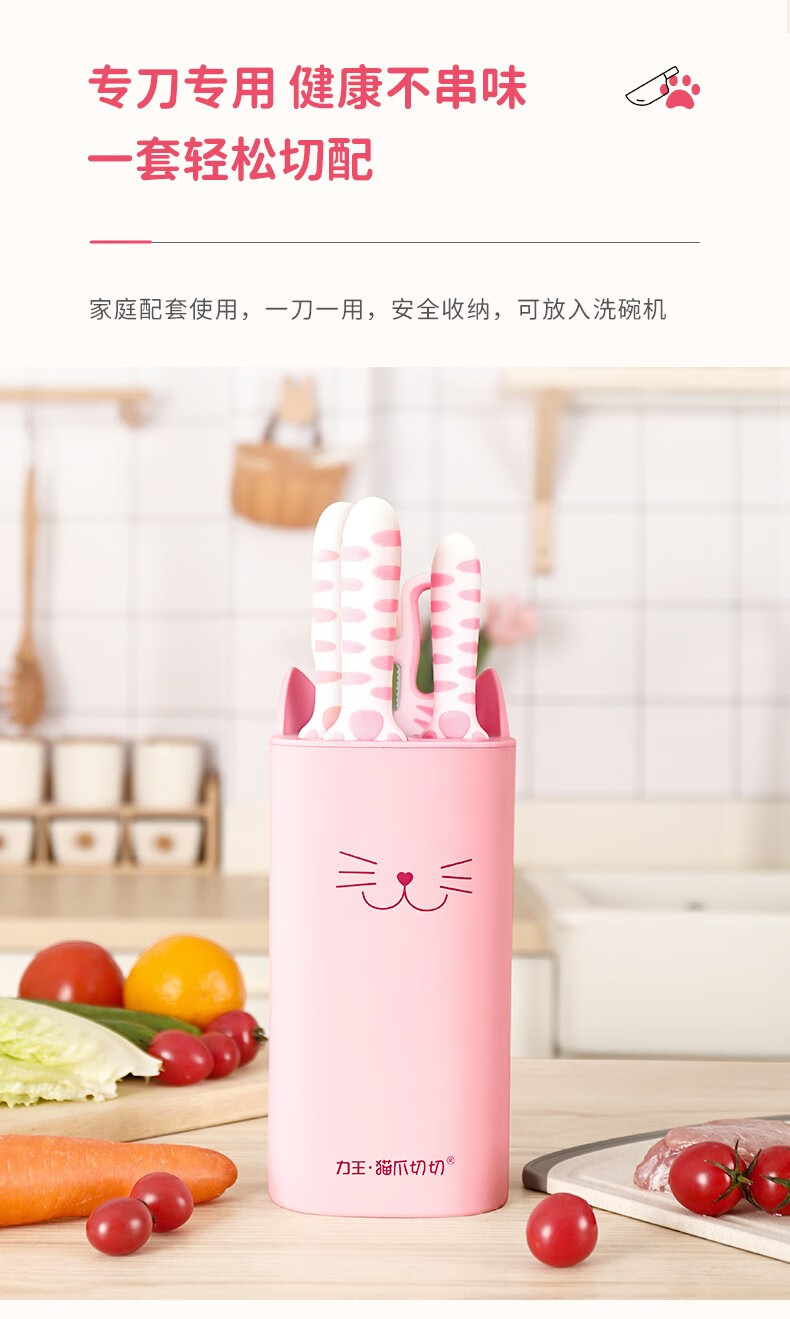 力王(LIVEON)力王·猫爪切切联名款厨房套装刀具组合女士五件套厨具萌创意送礼 粉色套刀-简约装