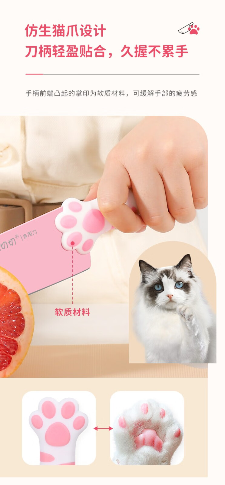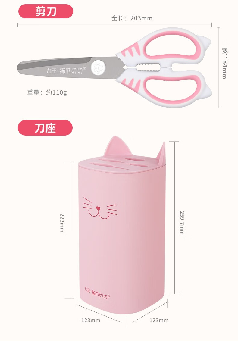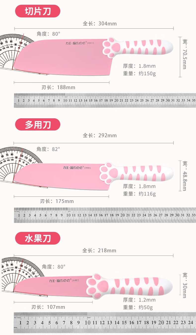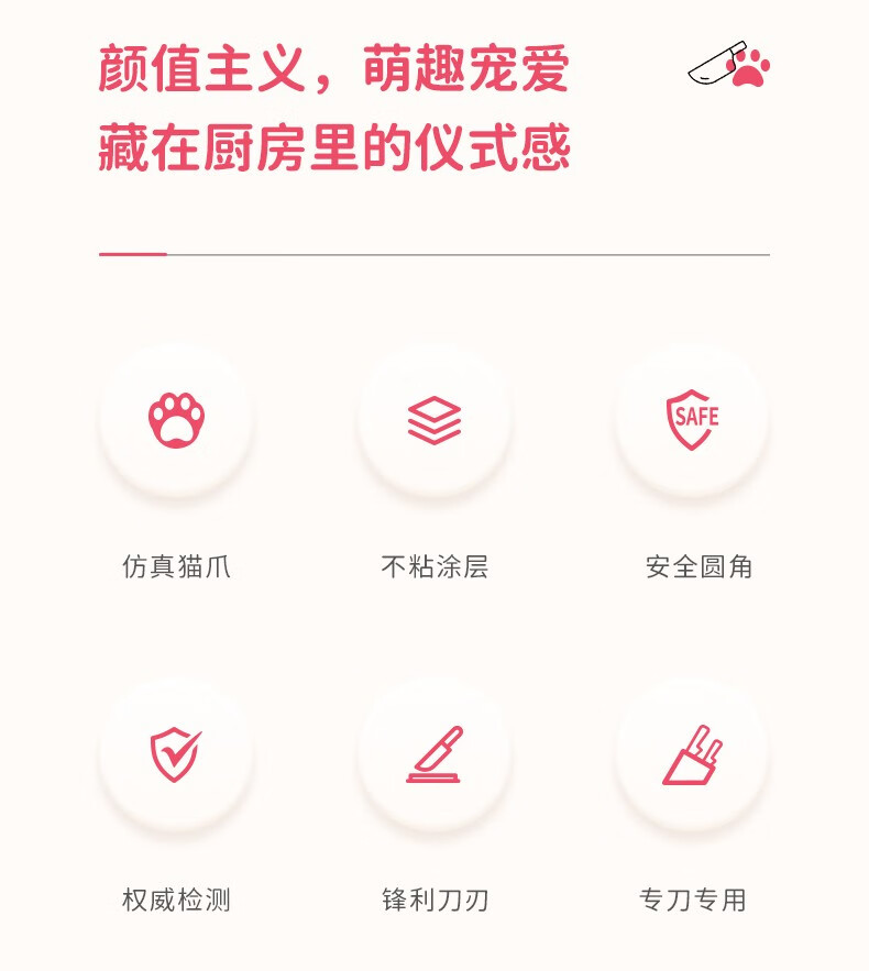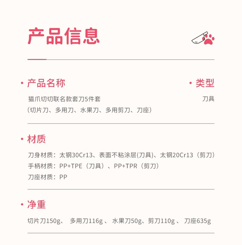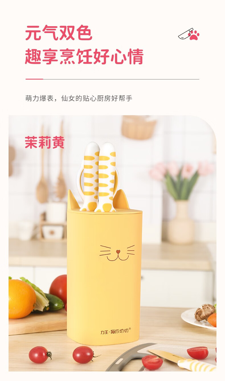 力王(LIVEON)力王·猫爪切切联名款厨房套装刀具组合女士五件套厨具萌创意送礼 粉色套刀-简约装