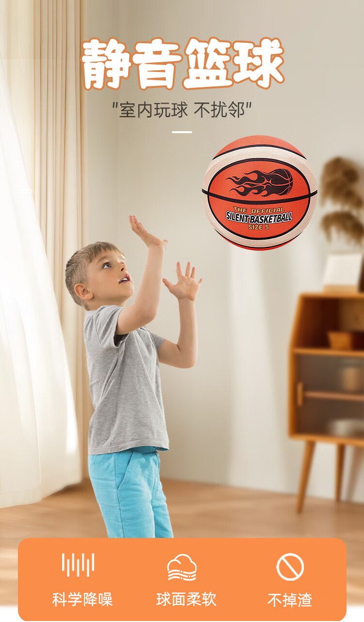 秘萌 静音篮球5号不掉渣儿童篮球第四代室内弹力球加篮筐玩具礼物