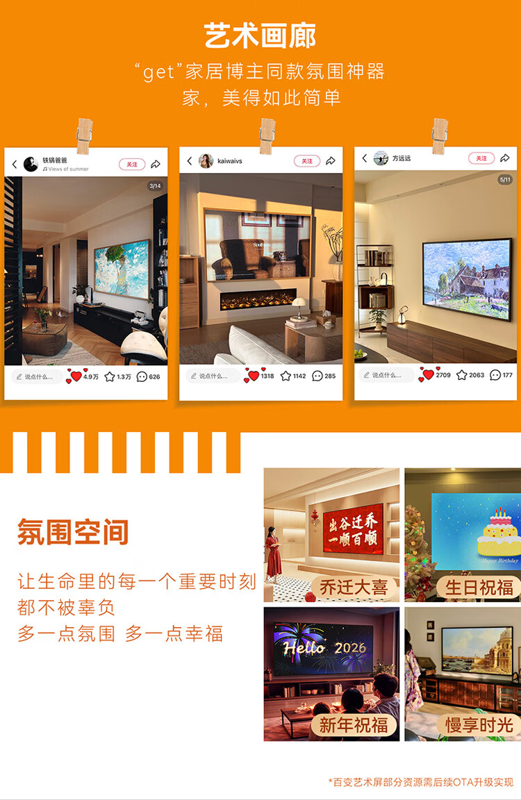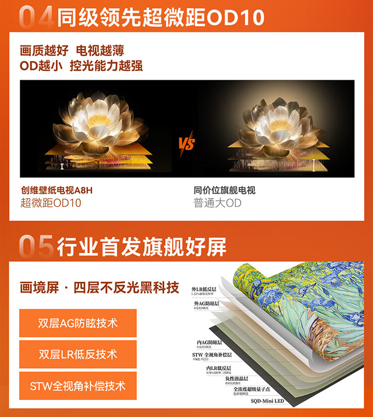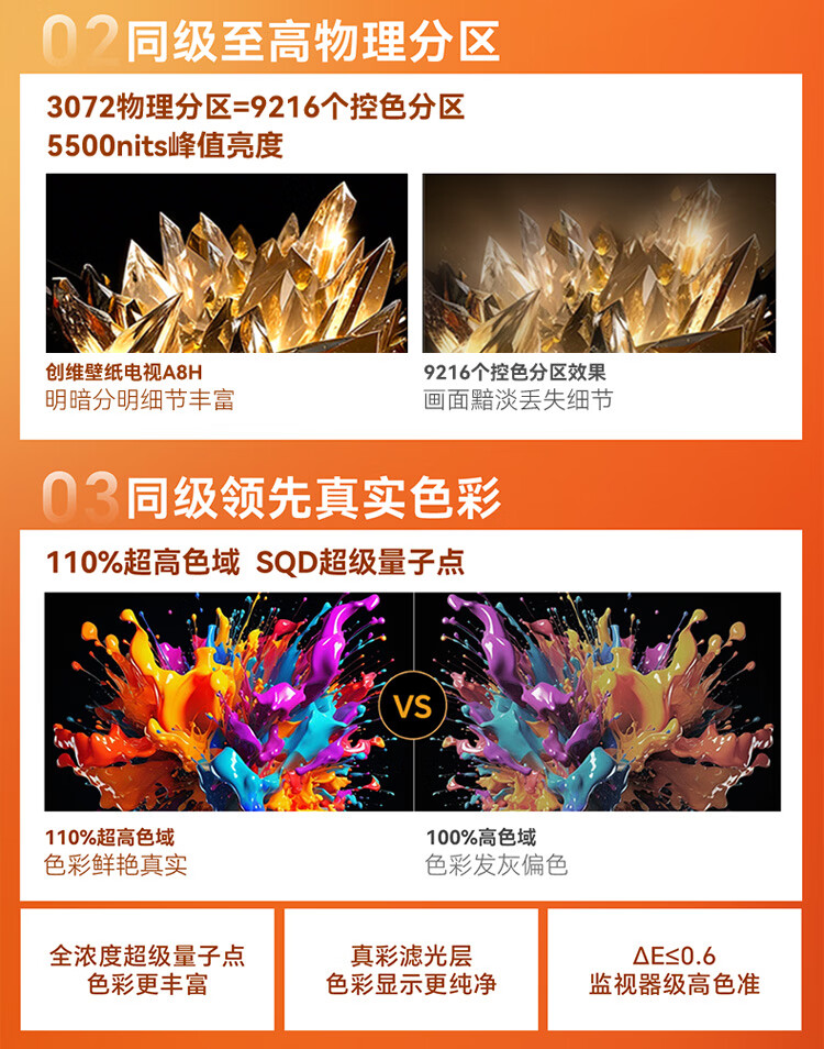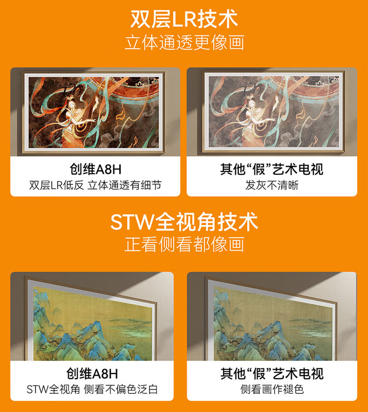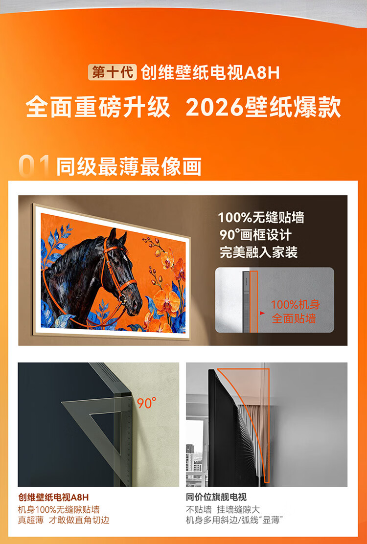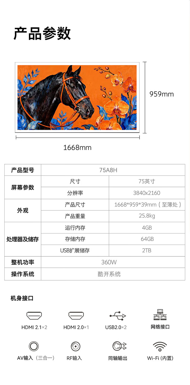 创维电视75A8H 75英寸壁纸电视3072分区SQD Mini LED 7.1.2哈曼全景声 3.9cm超薄平板电视机 国家补贴