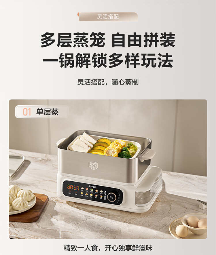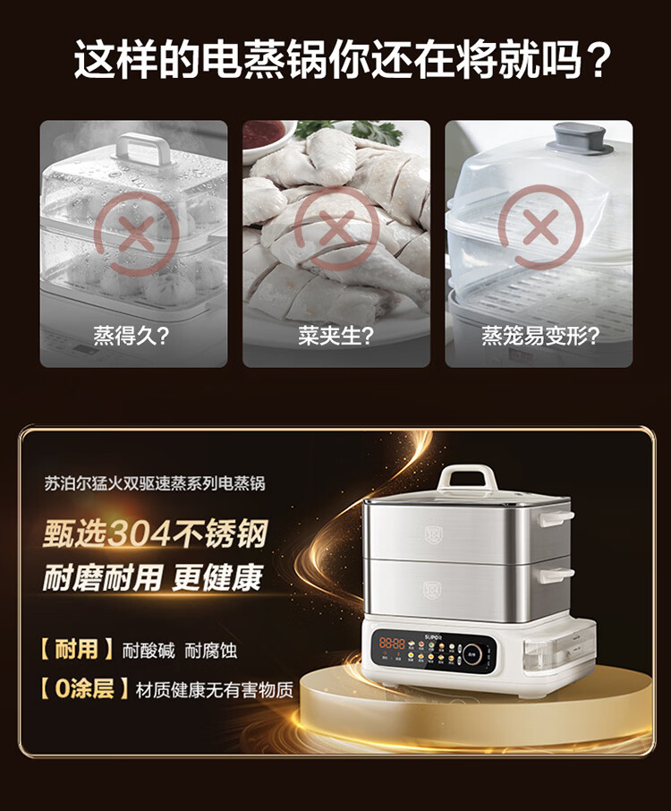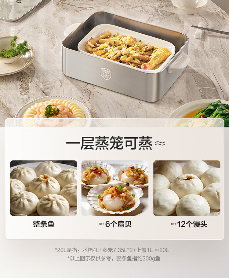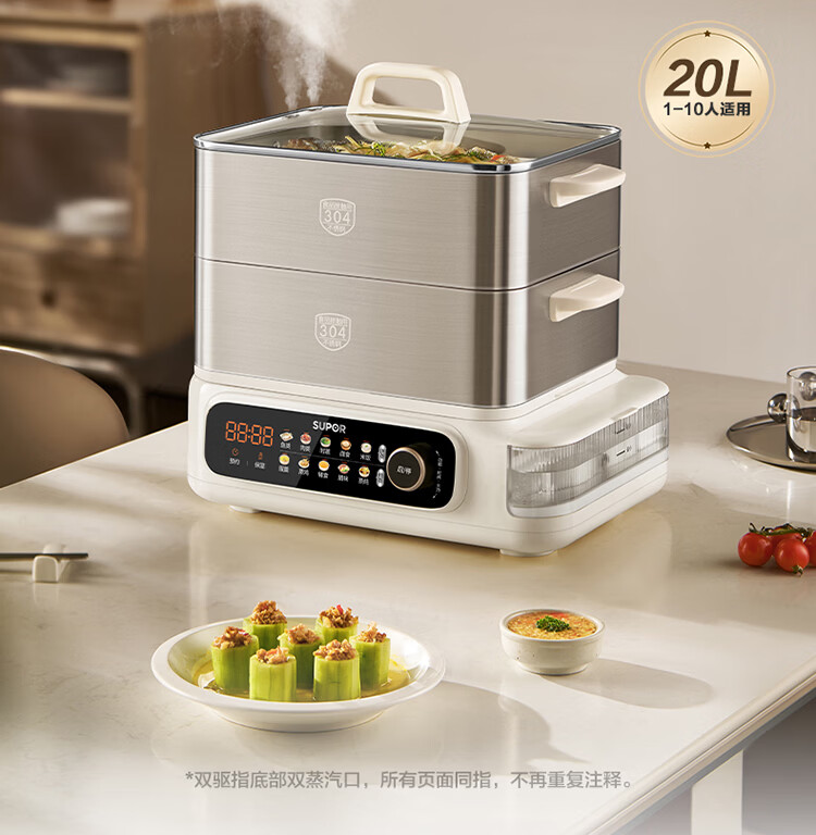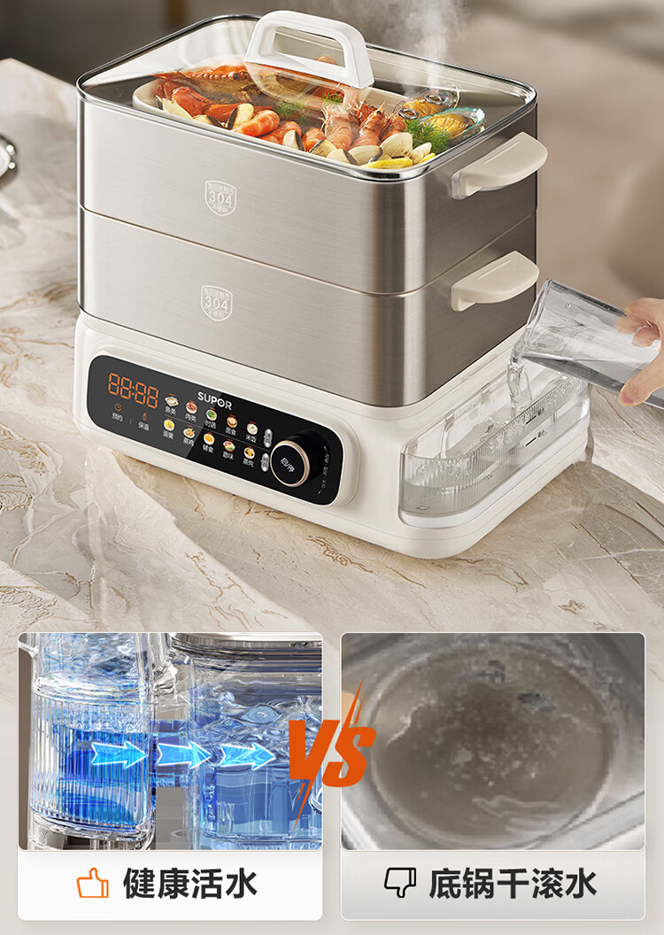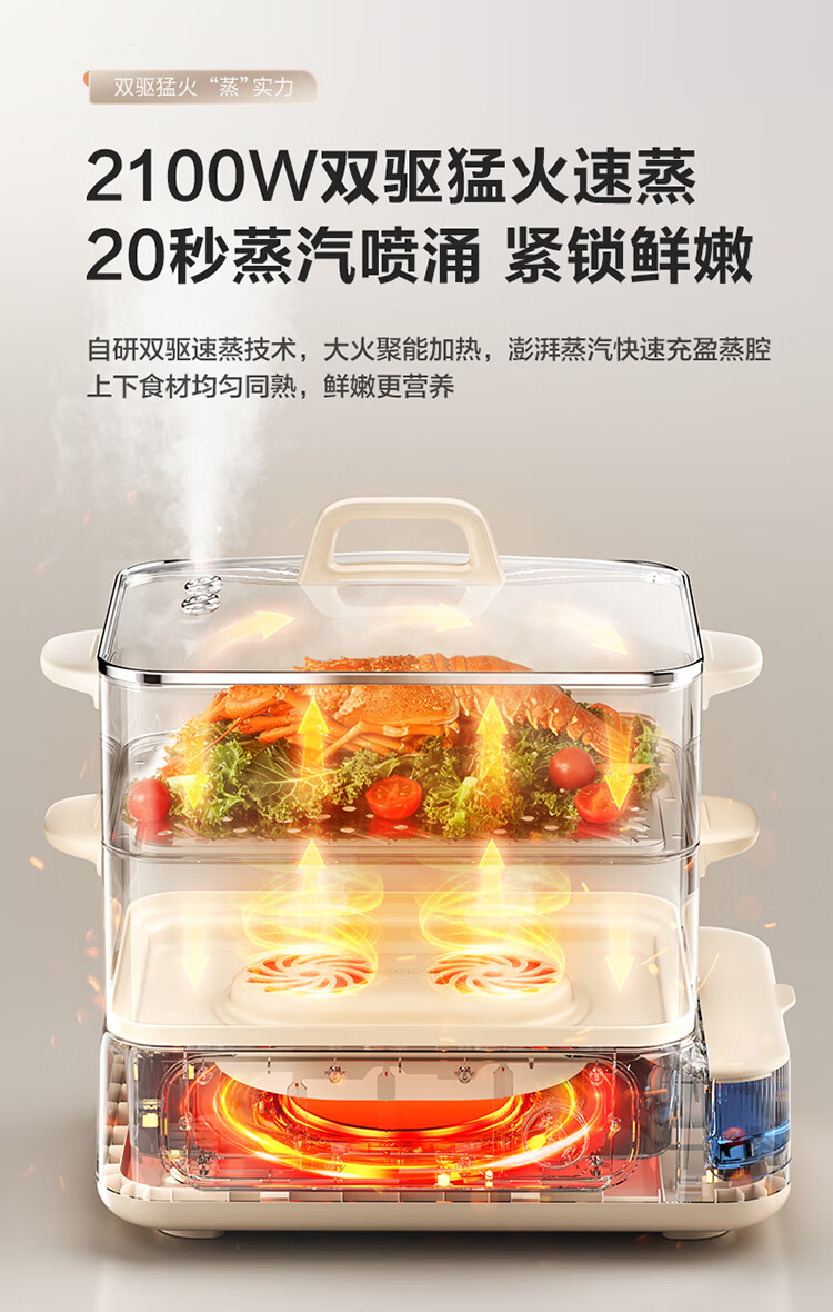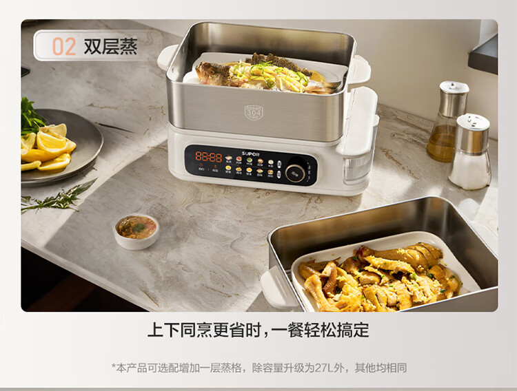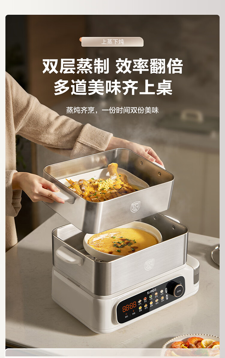 苏泊尔(SUPOR)蒸蒸宝电蒸锅不锈钢0涂层蒸锅多功能电蒸箱2100W双驱猛火澎湃速蒸蒸鱼蒸屉大容量蒸笼 ZN32FC1295