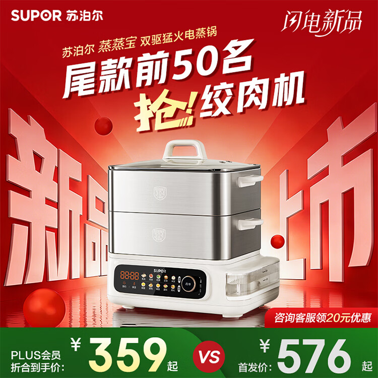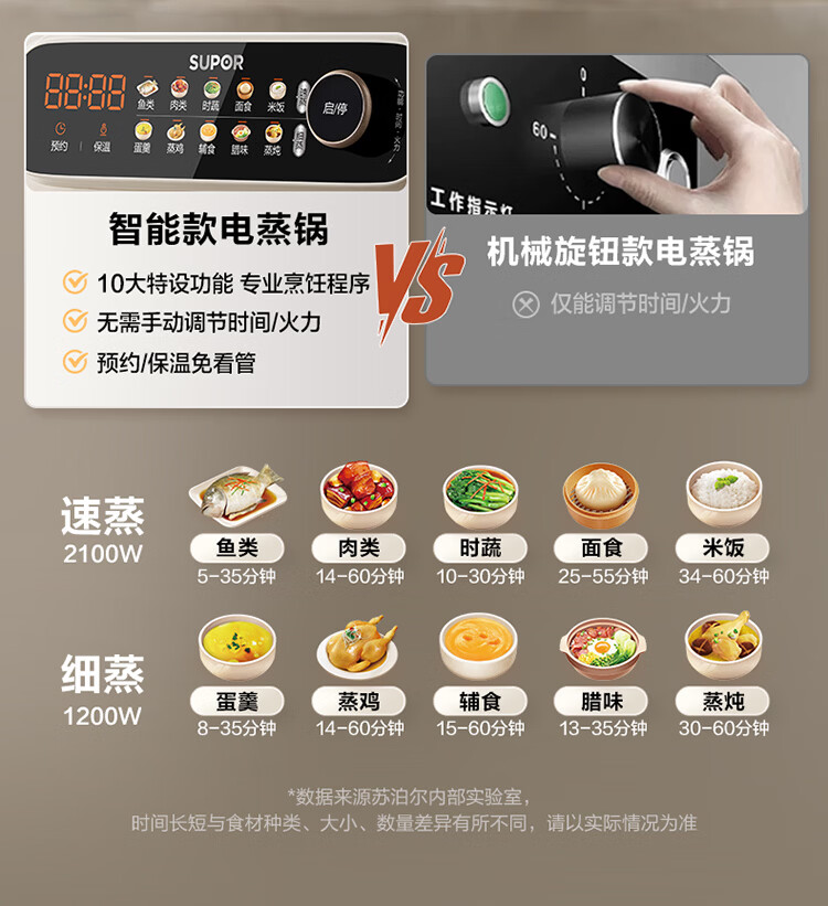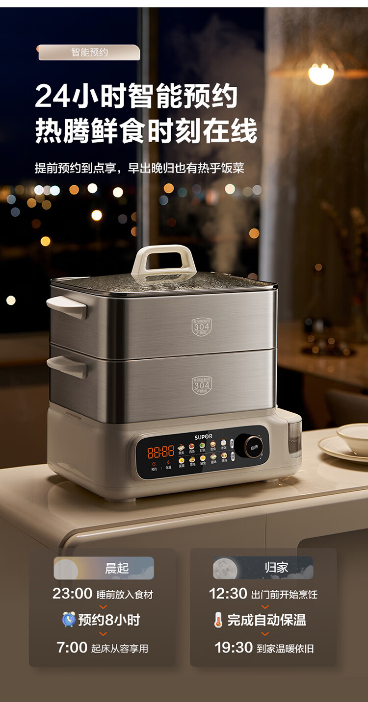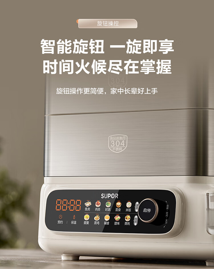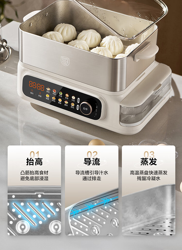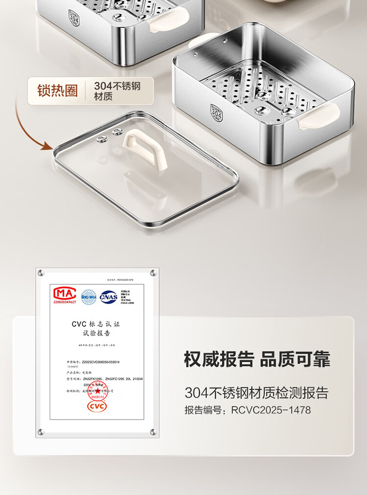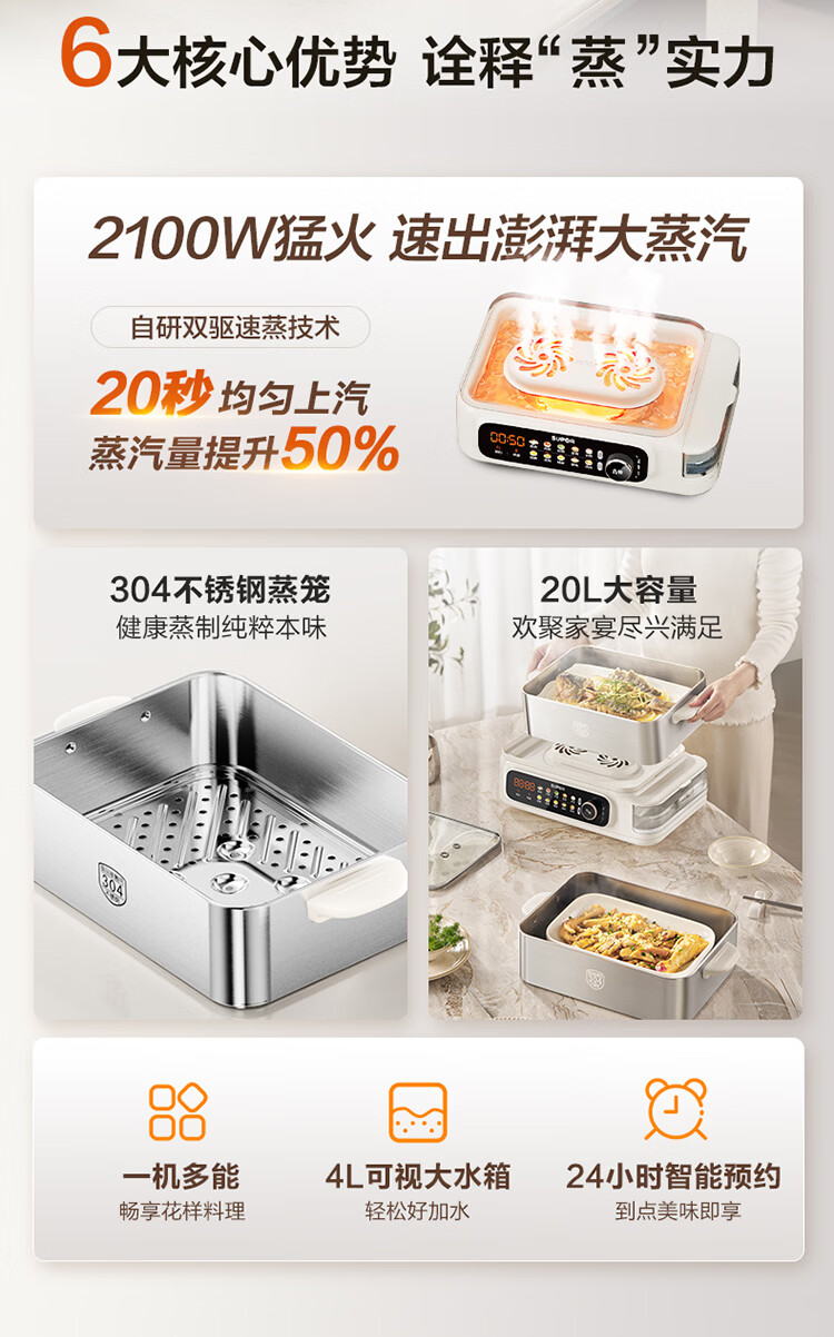 苏泊尔(SUPOR)蒸蒸宝电蒸锅不锈钢0涂层蒸锅多功能电蒸箱2100W双驱猛火澎湃速蒸蒸鱼蒸屉大容量蒸笼 ZN32FC1295