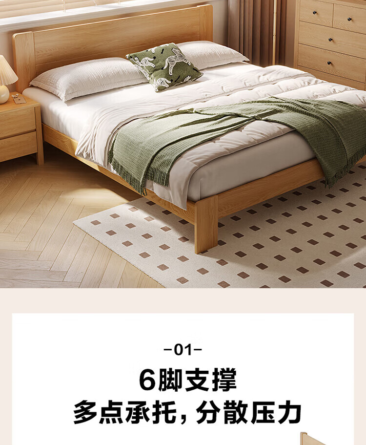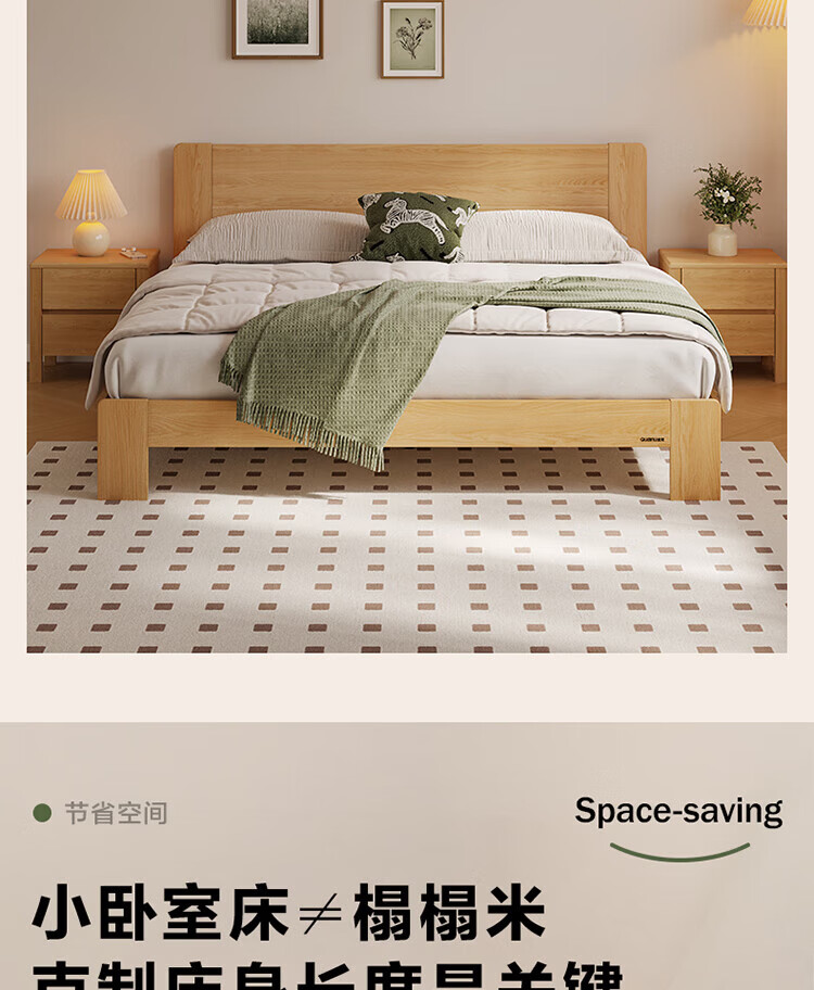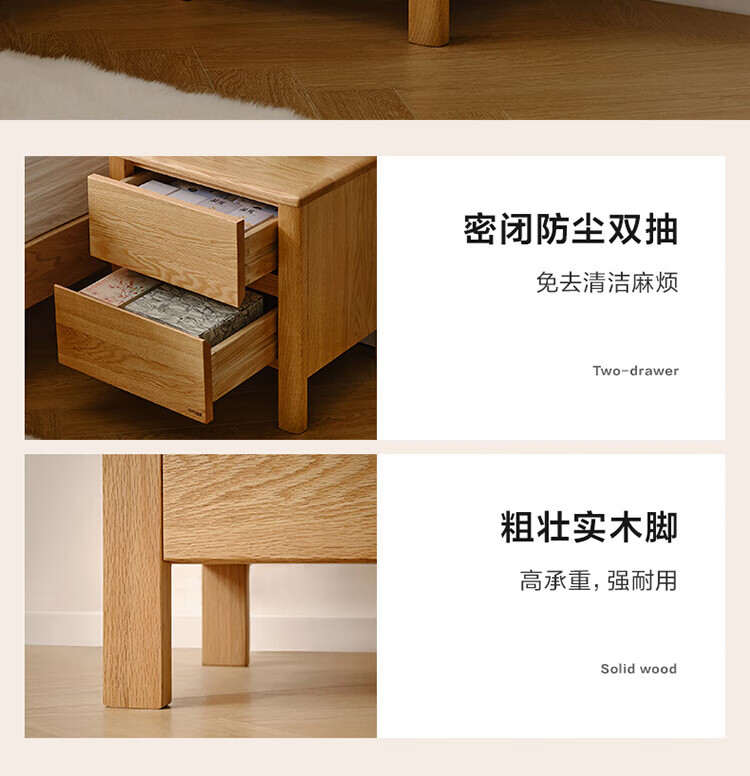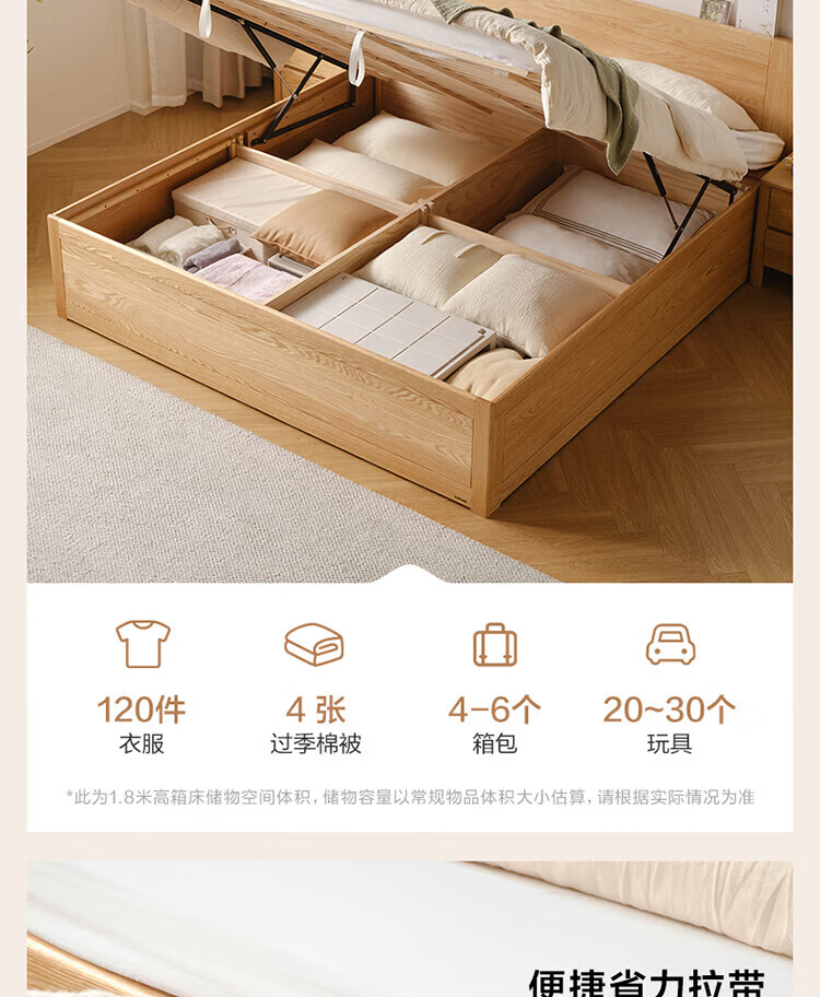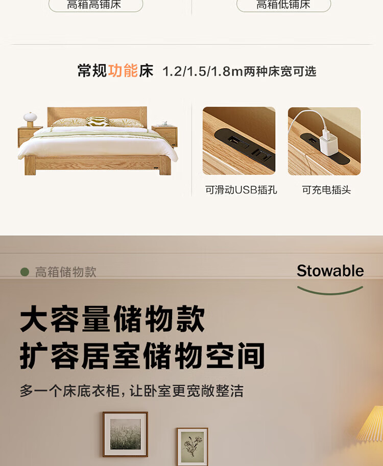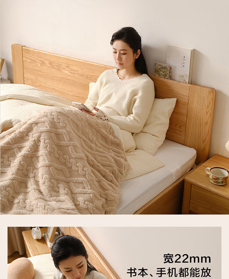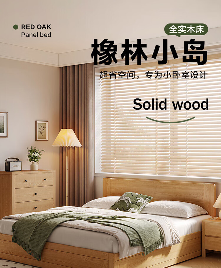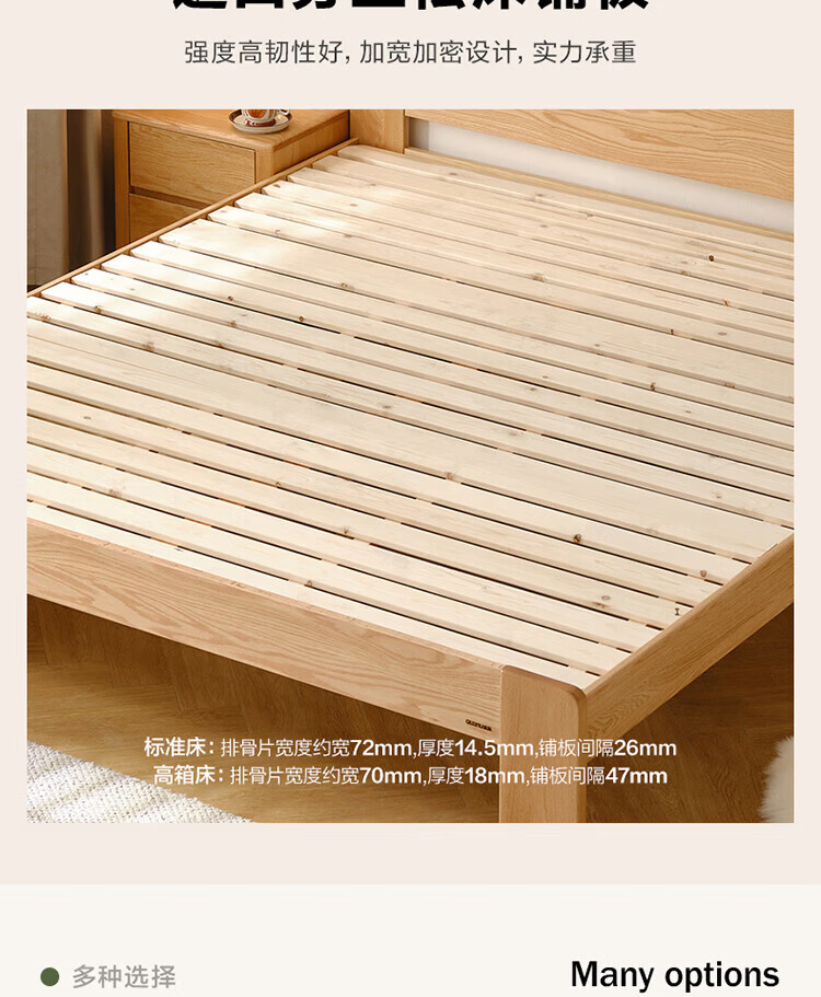 全友家居北欧原木风多功能储物床主卧室1.5米2米橡木全实木双人大床 红橡木|小岛床头柜 1.5米