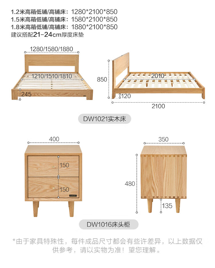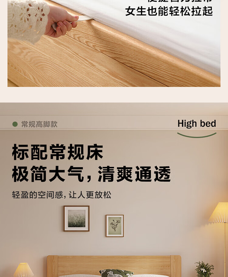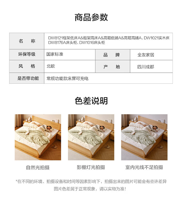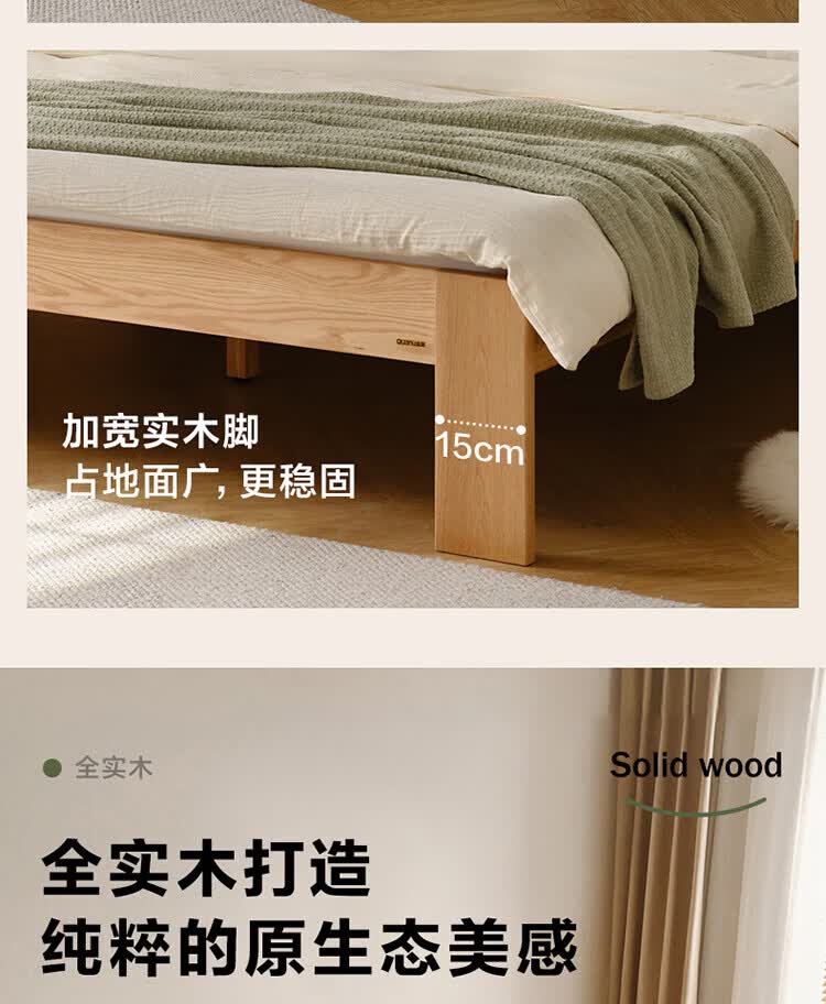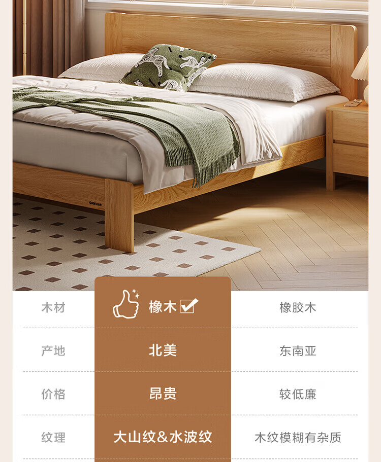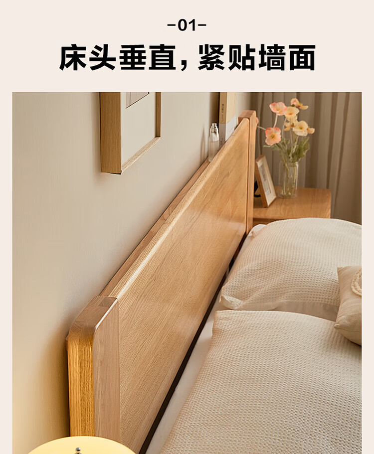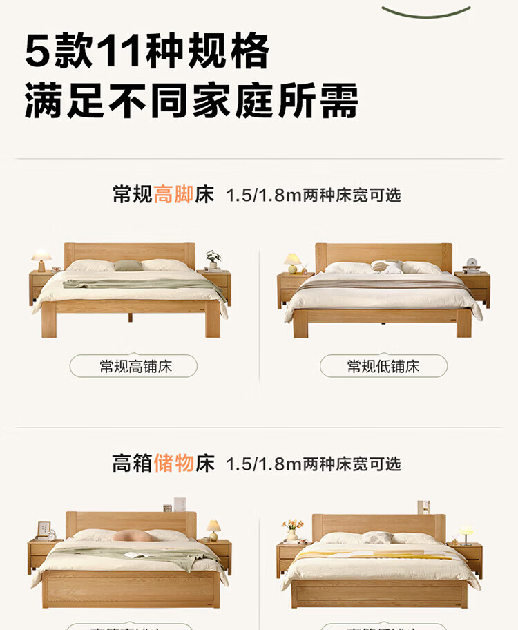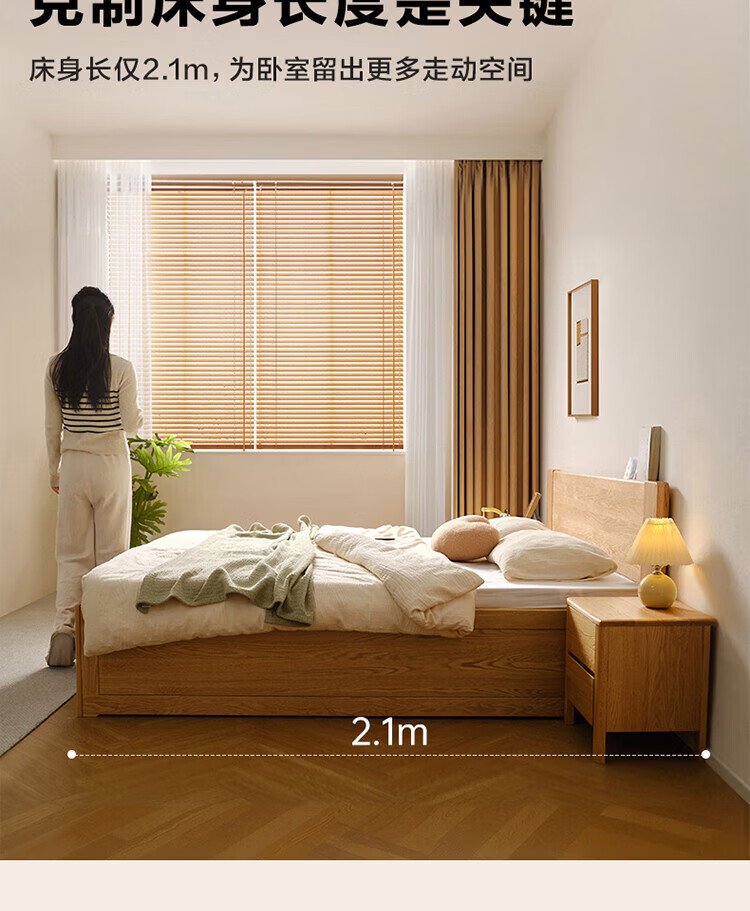 全友家居北欧原木风多功能储物床主卧室1.5米2米橡木全实木双人大床 红橡木|小岛床头柜 1.5米