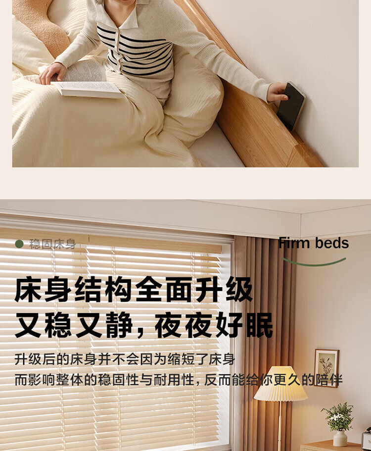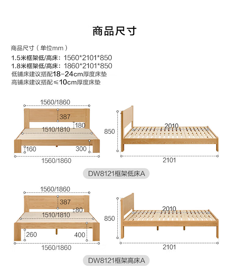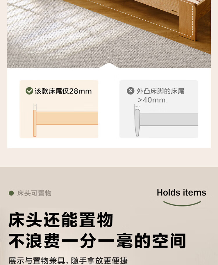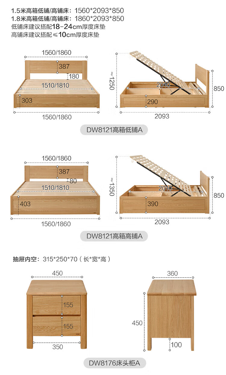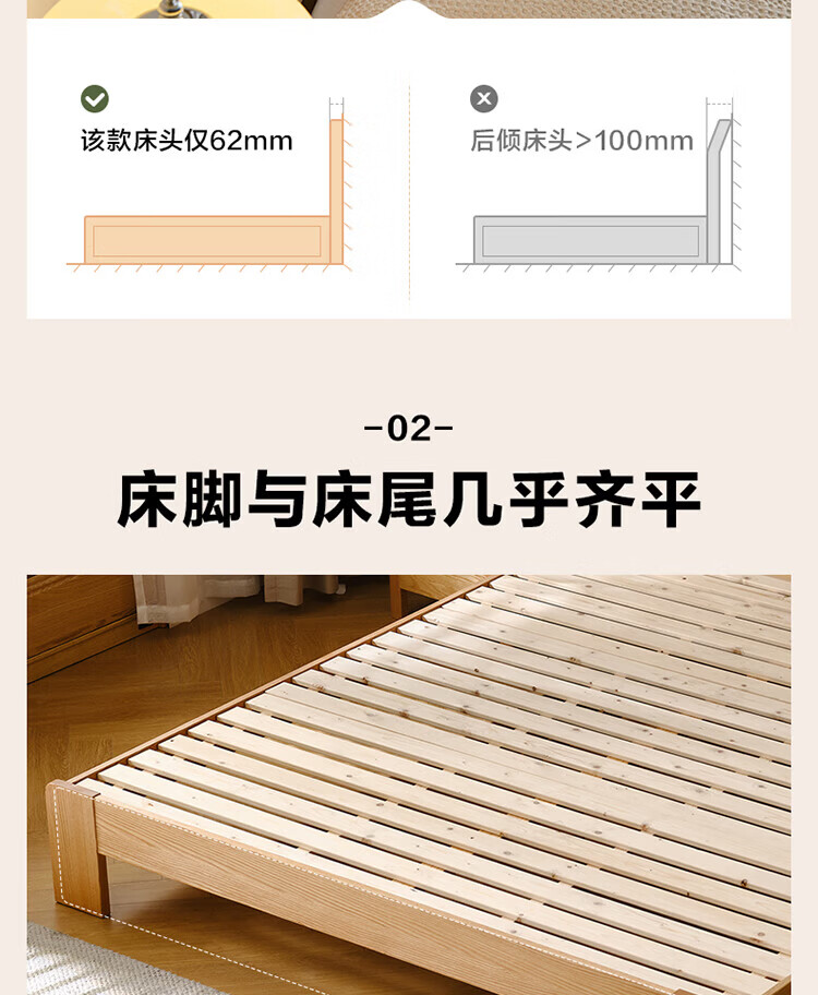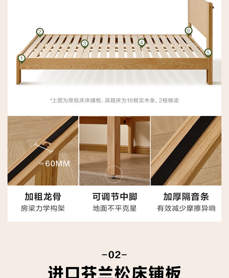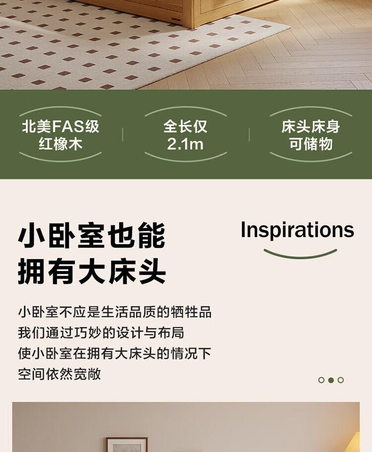 全友家居北欧原木风多功能储物床主卧室1.5米2米橡木全实木双人大床 红橡木|小岛床头柜 1.5米
