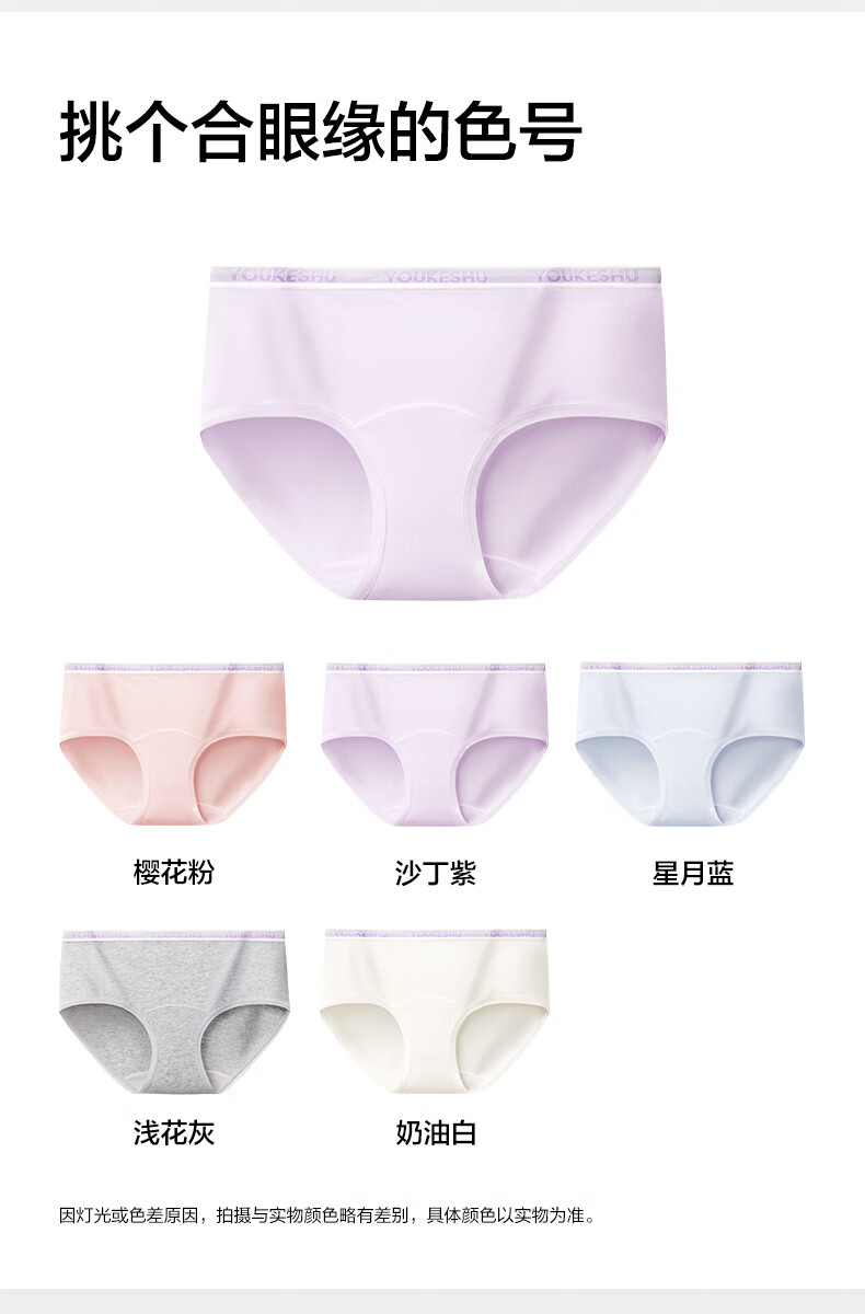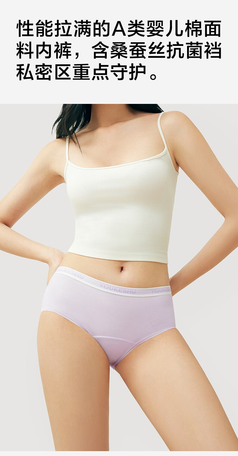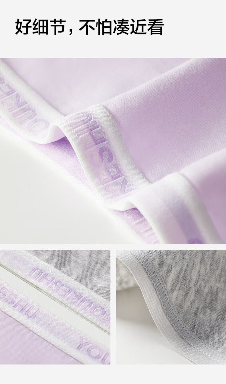 有棵树【元气紫】A类婴儿棉内裤女纯棉10A抗菌桑蚕丝裆高弹运动风三角裤