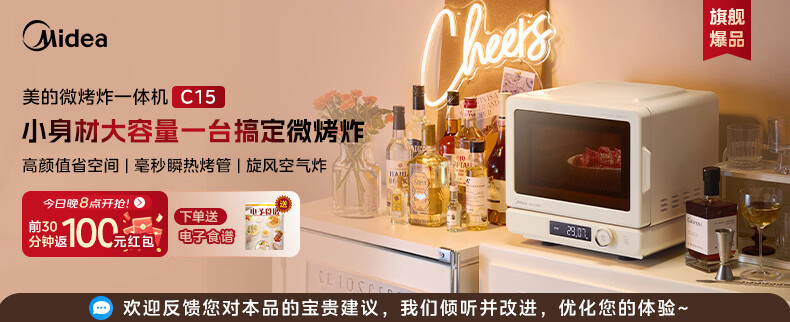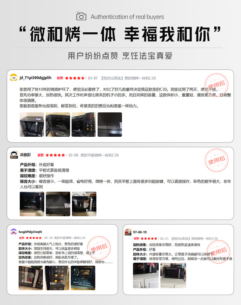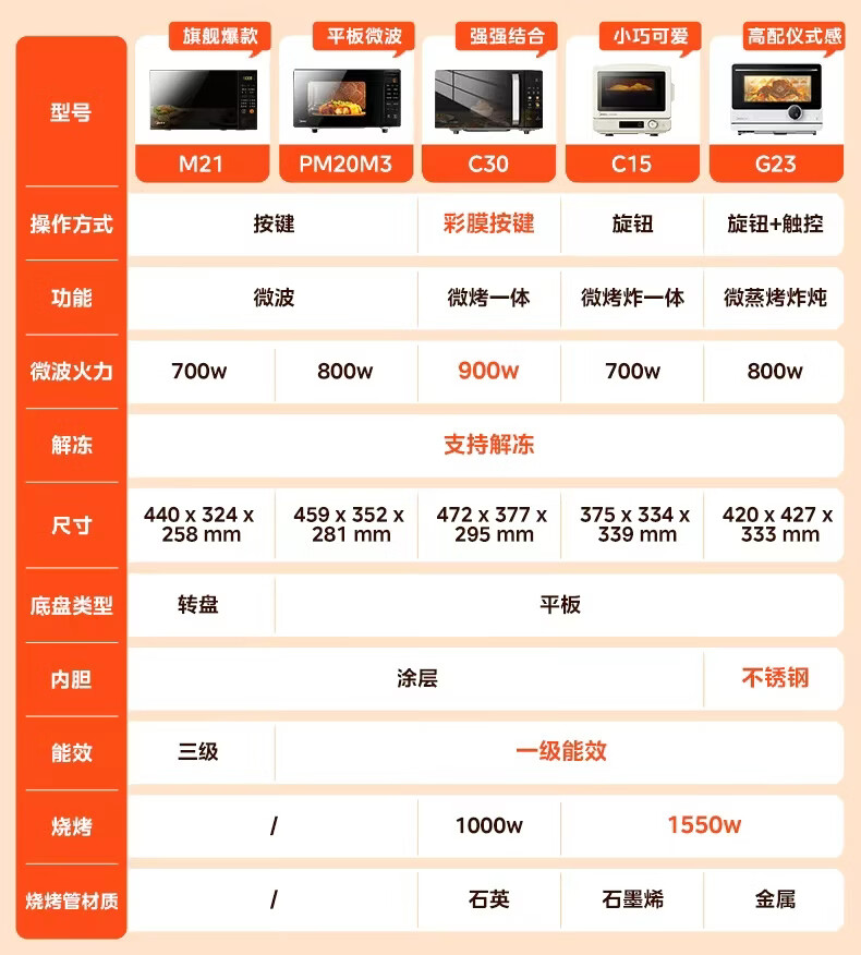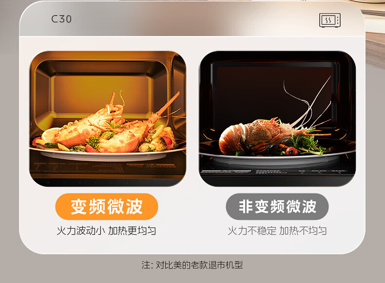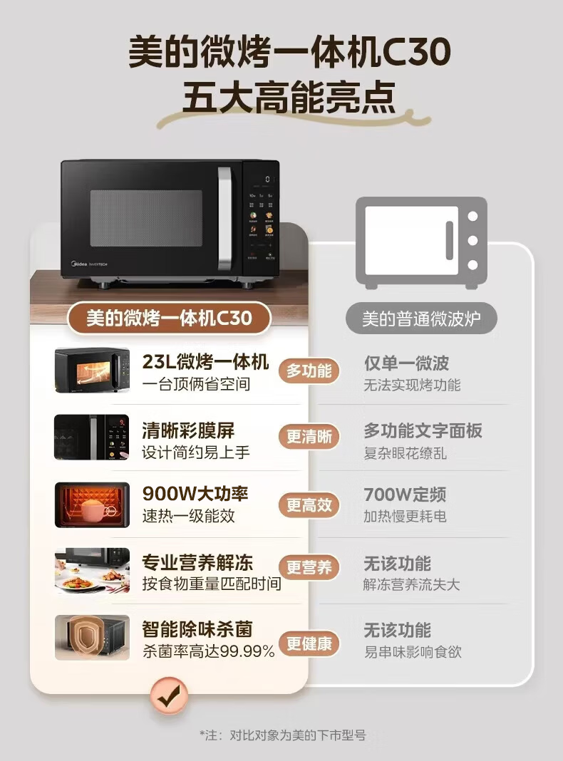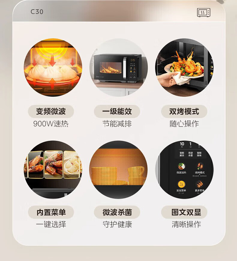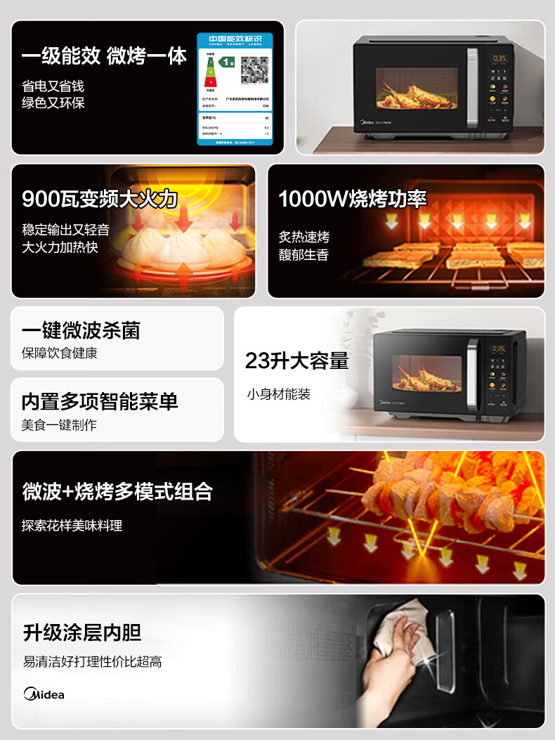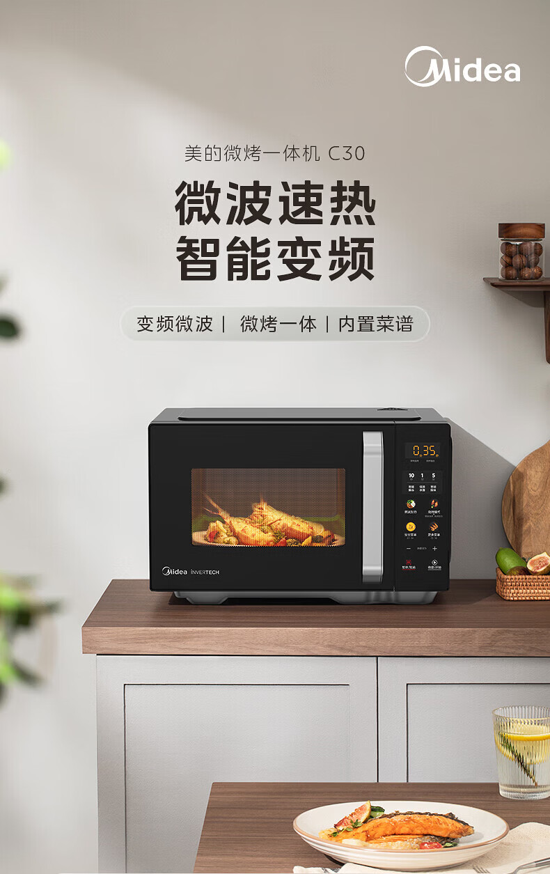 美的(Midea)C30 23升900W大功率家用微波炉烤箱一体机 平板速热 彩膜按键 智能解冻杀菌 一级能效节能省电 【性价比首选】美的微烤一体机C30
