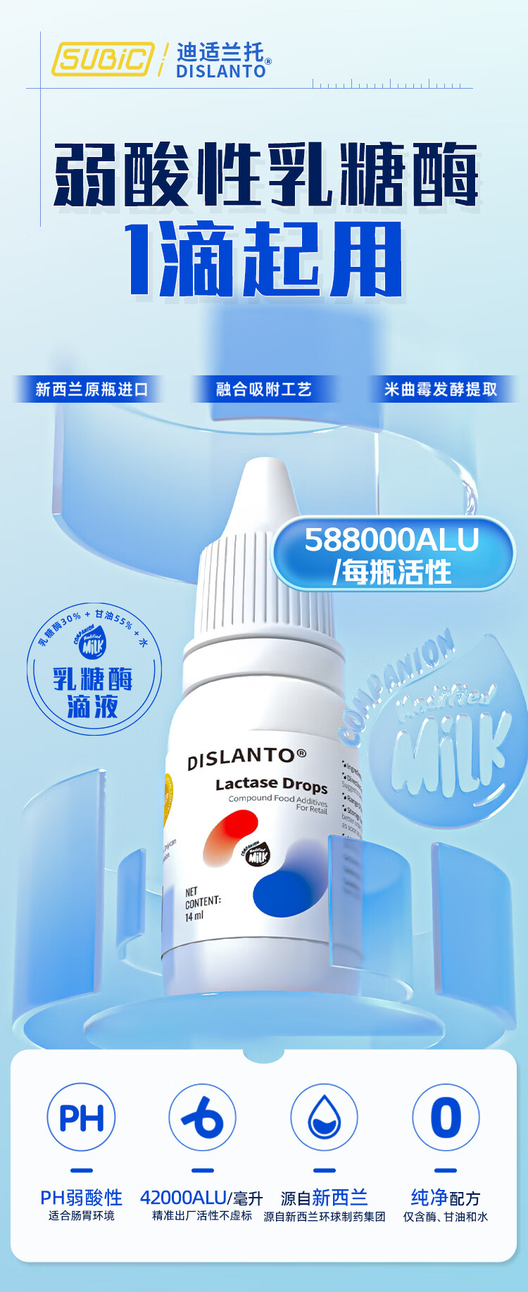 迪适兰托酸性乳糖酶滴剂14ml 588000型 新西兰原装进口 【新西兰进口】乳糖酶 14ml*1瓶