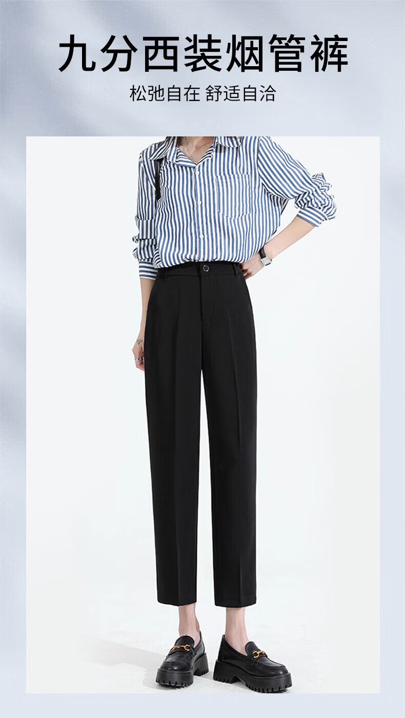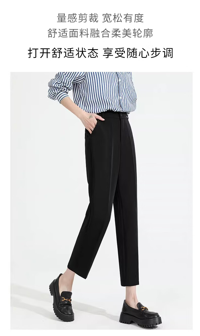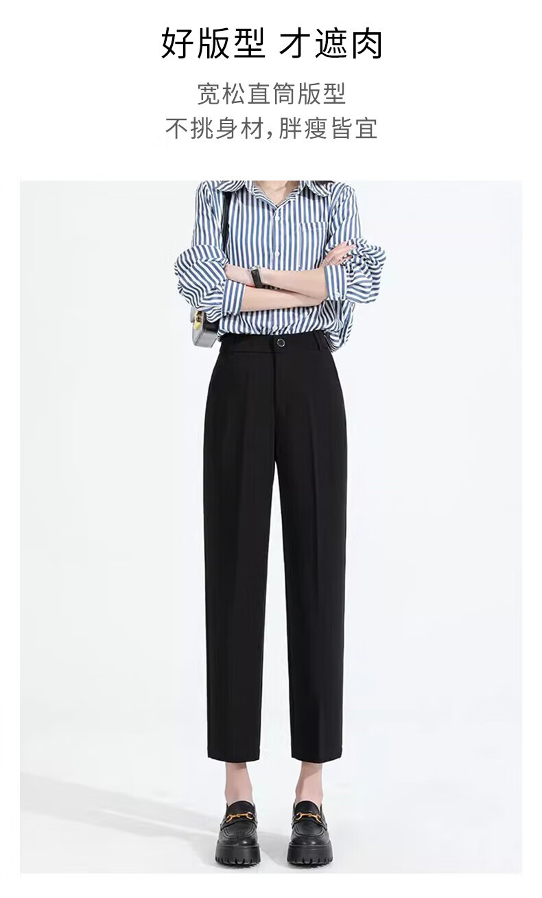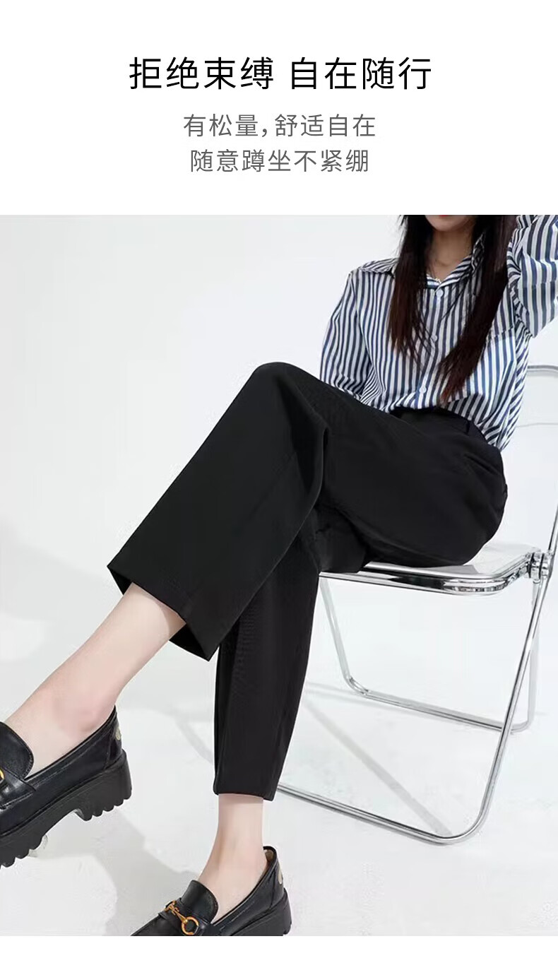 浪莎黑色西装裤女秋冬款垂感直筒休闲宽松显瘦通勤哈伦西裤九分烟管裤 黑色 【加绒款】 L 【推荐101-110斤】