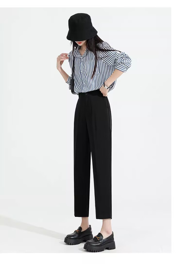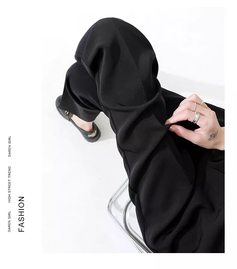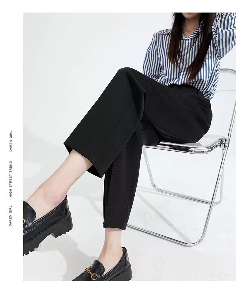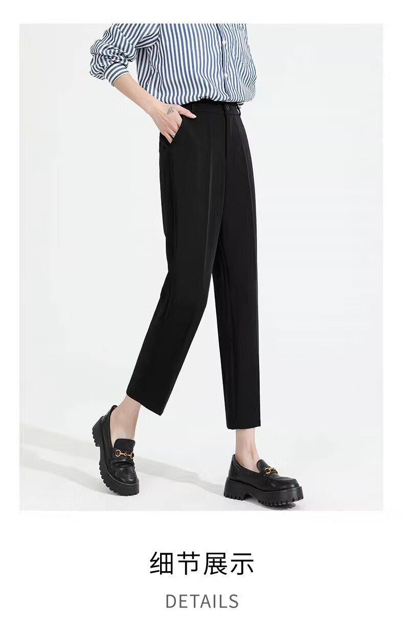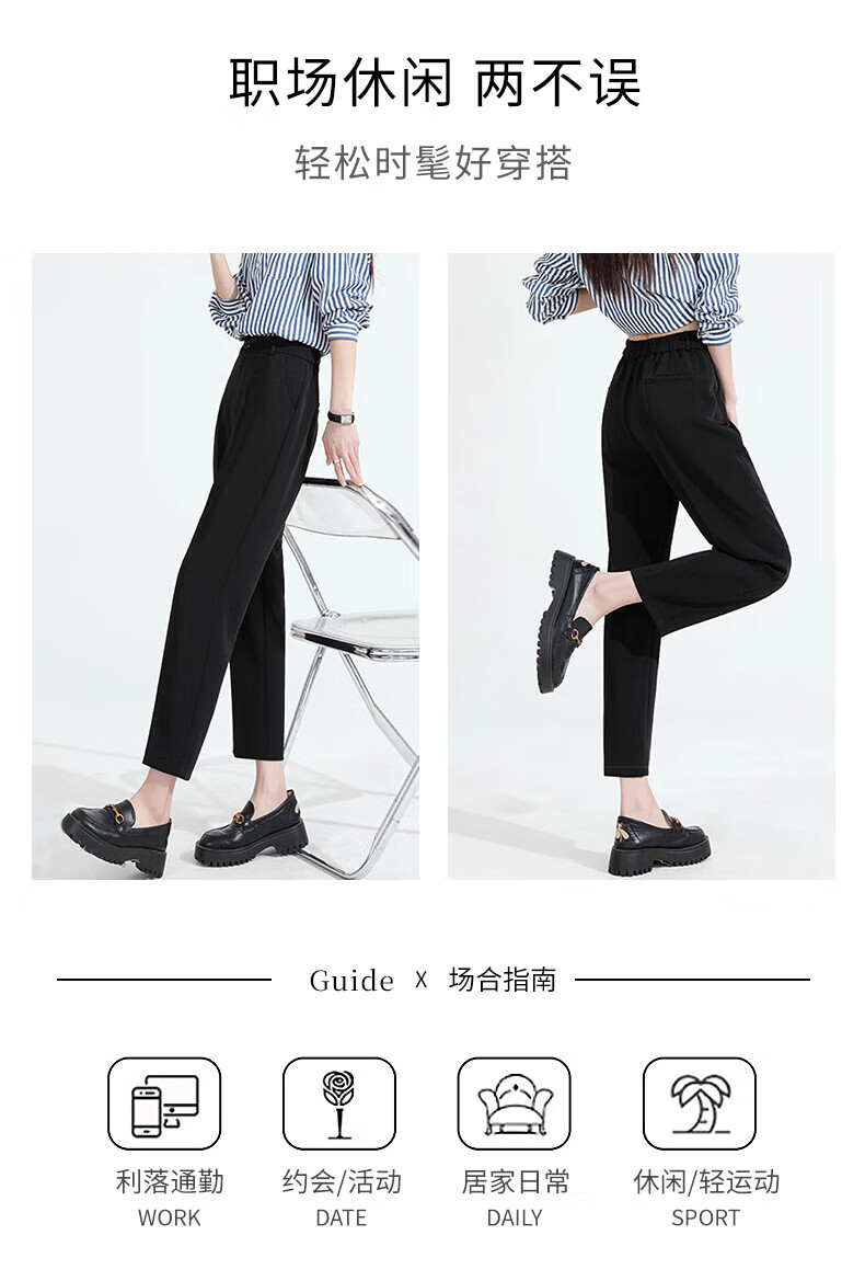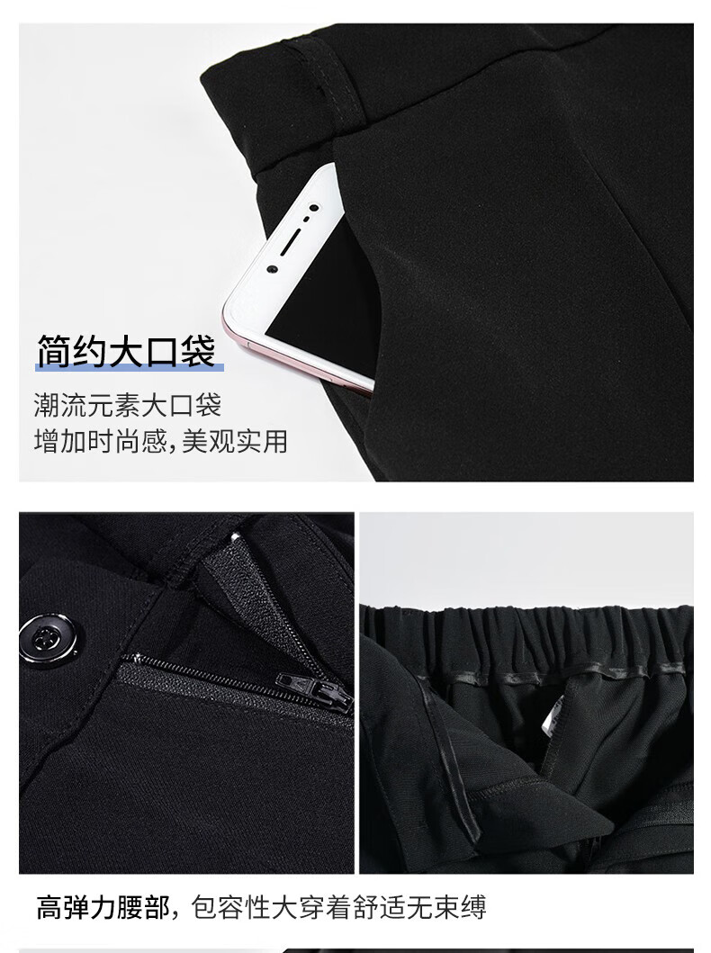 浪莎黑色西装裤女秋冬款垂感直筒休闲宽松显瘦通勤哈伦西裤九分烟管裤 黑色 【加绒款】 L 【推荐101-110斤】