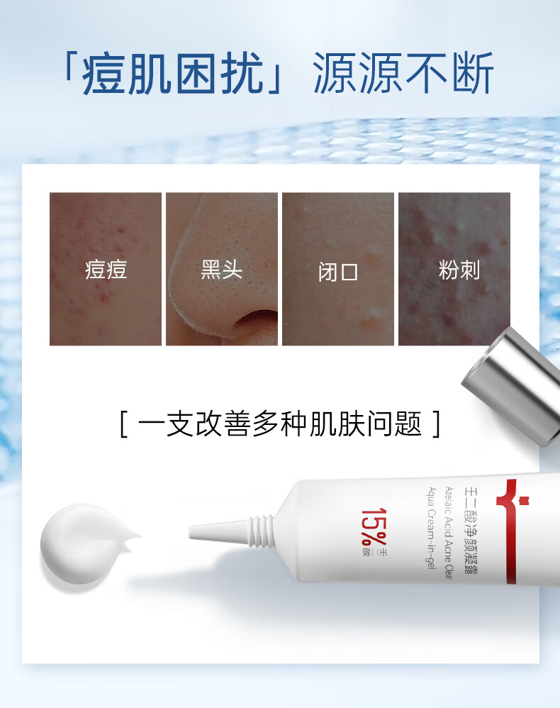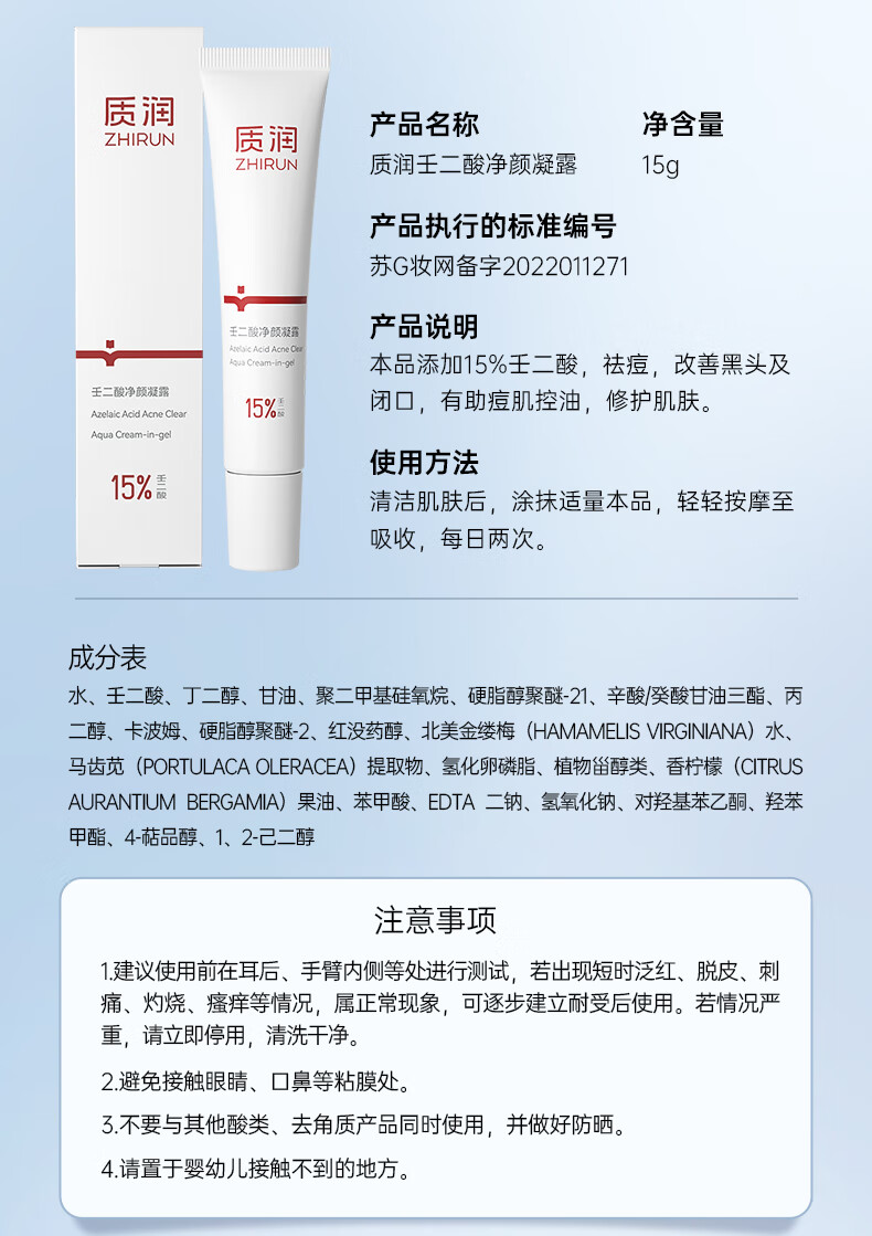 质润壬二酸15%凝胶祛痘去黑头祛痘膏水杨酸壬二酸凝胶闭口粉刺淡化痘印15g