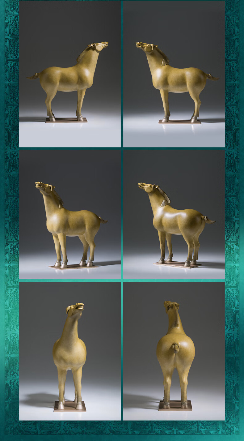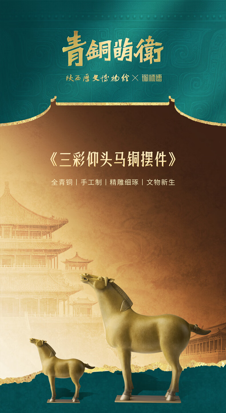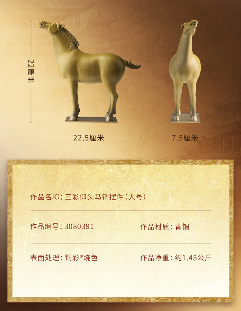铜师傅 陕西历史博物馆系列《三彩仰头马铜摆件》青铜摆件 小号