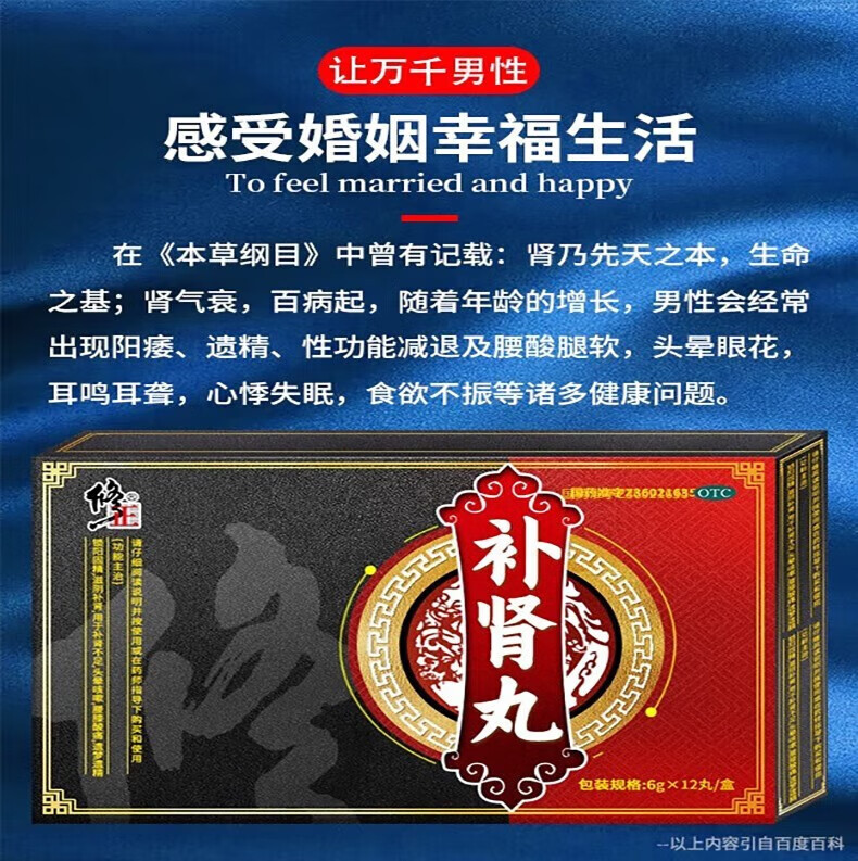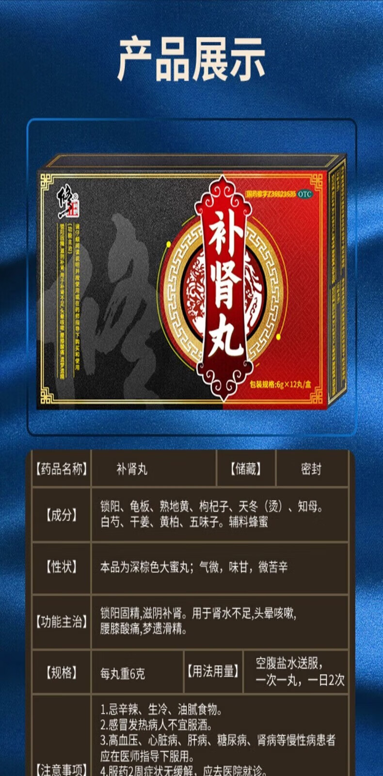[修正]补肾丸 6g*12丸 5盒装 正品国药准字号补肾益精肾虚中药治阳痿可搭助勃延时增大增粗增长增硬持久延时不 疗程装