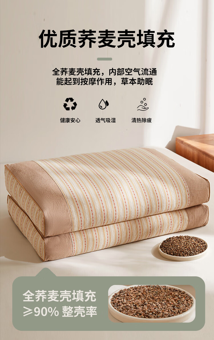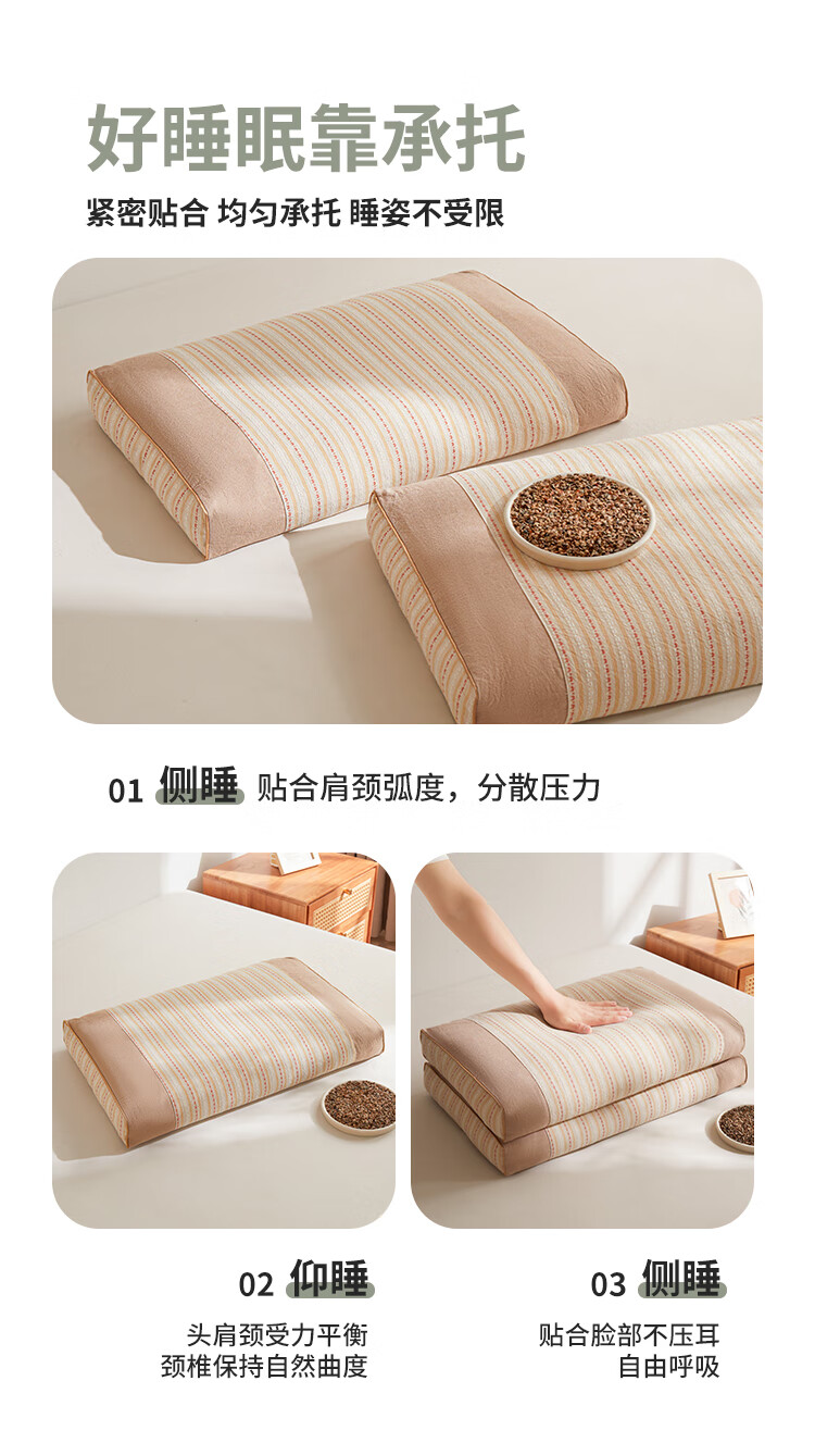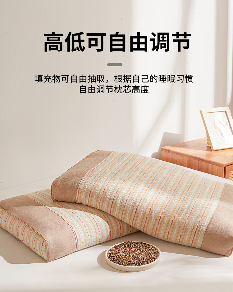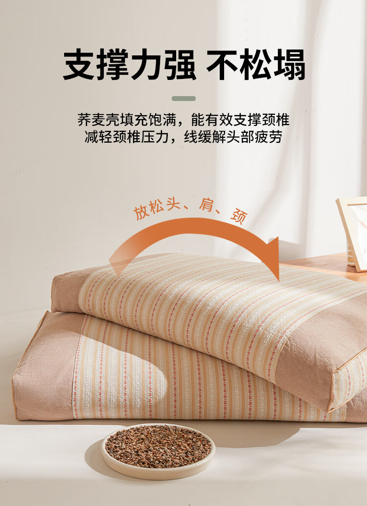 猫人(MiiOW)全棉荞麦皮壳枕头护颈椎助睡眠成人学生支撑硬草本植物枕芯一对装 单只 卡其【28*48cm单只装】 35cm*55cm