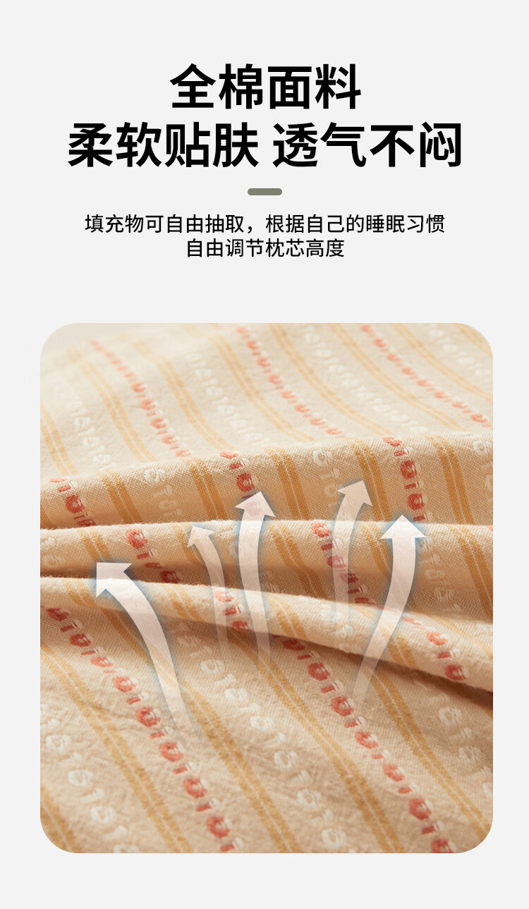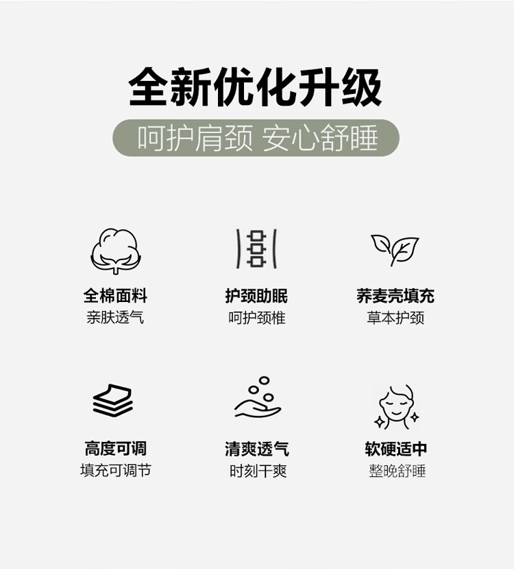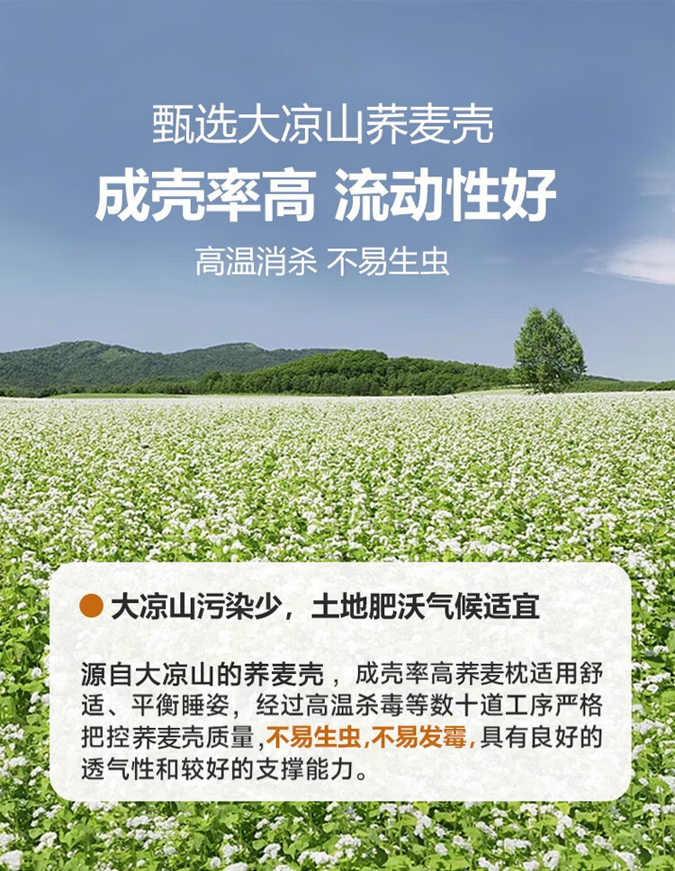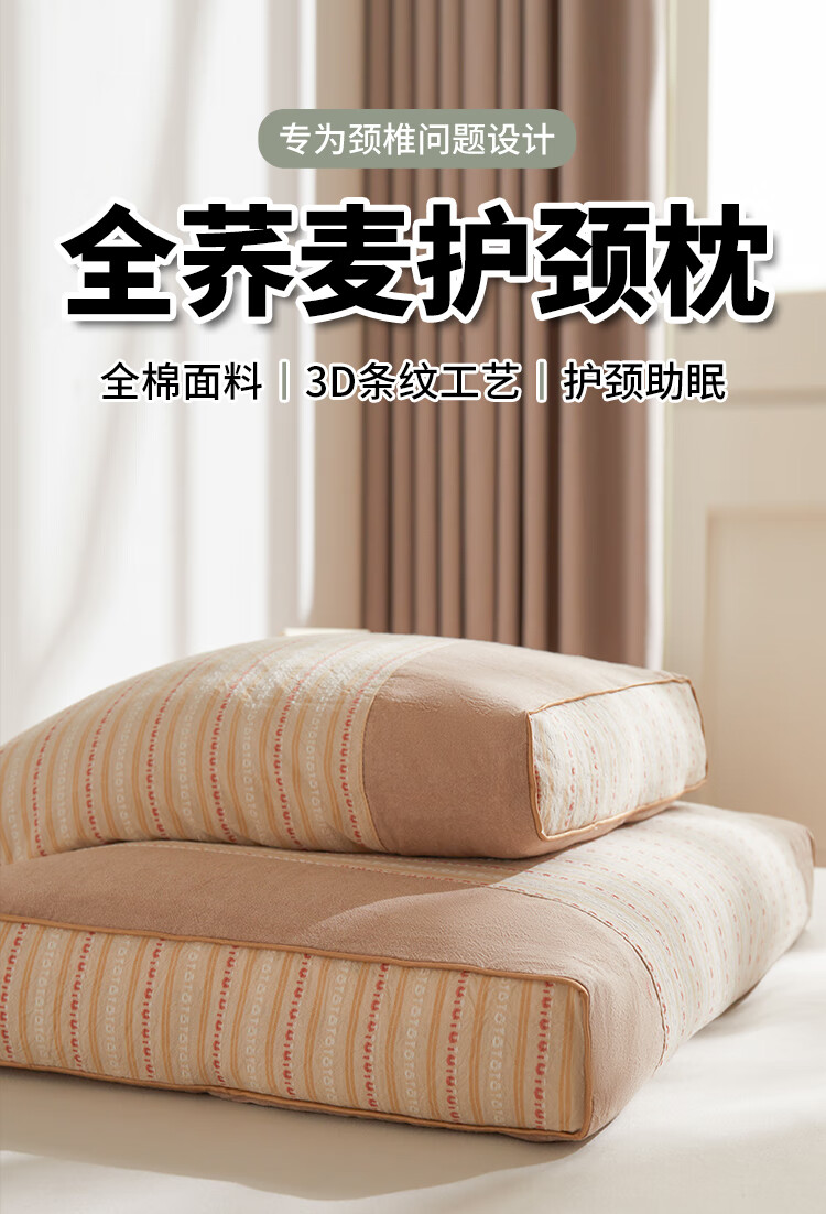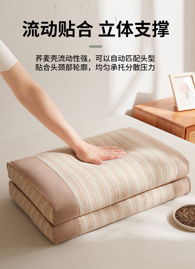 猫人(MiiOW)全棉荞麦皮壳枕头护颈椎助睡眠成人学生支撑硬草本植物枕芯一对装 单只 卡其【28*48cm单只装】 35cm*55cm