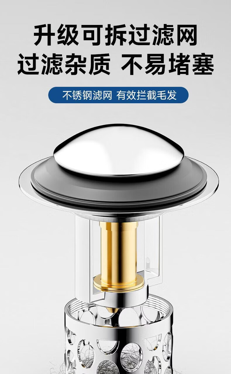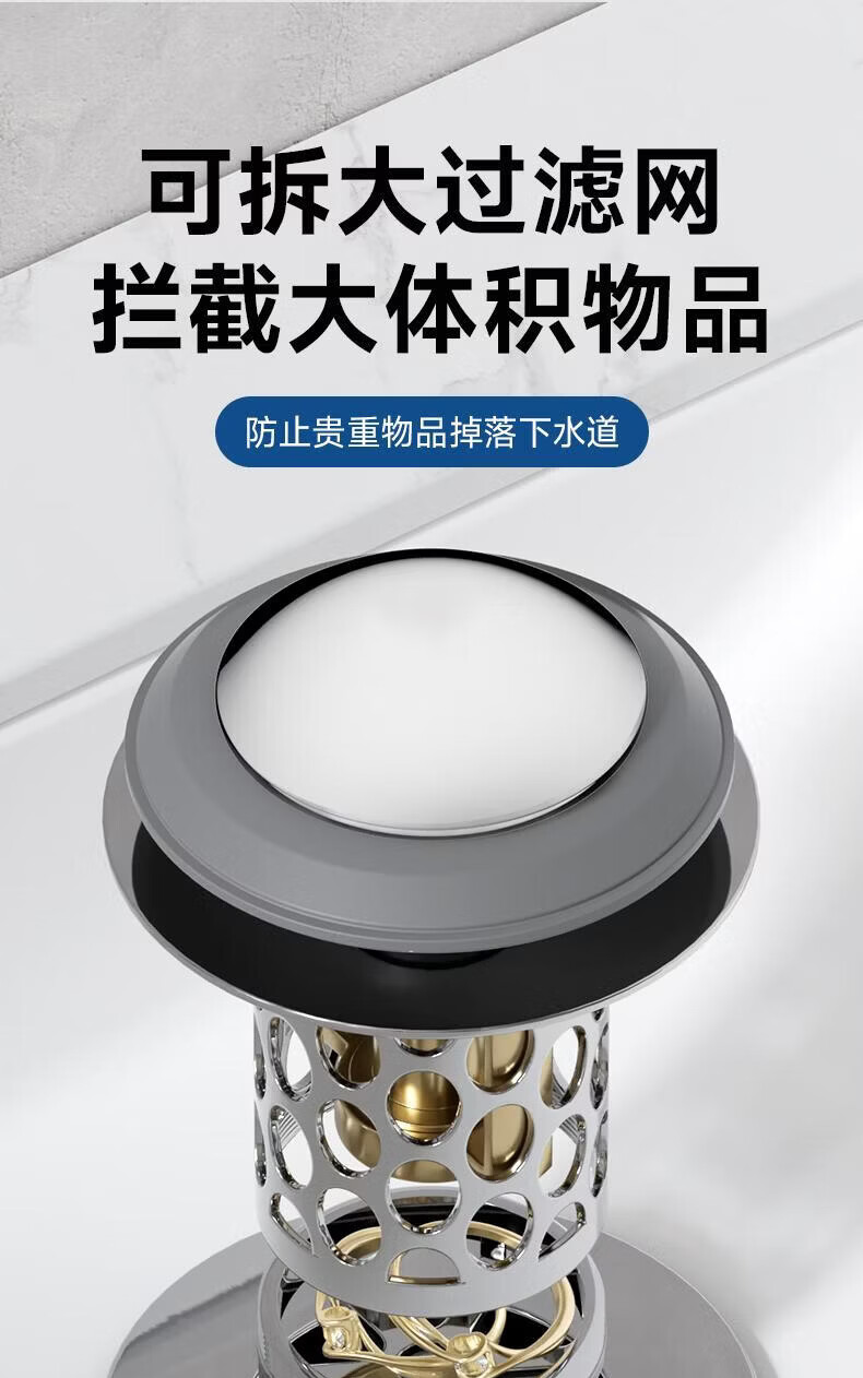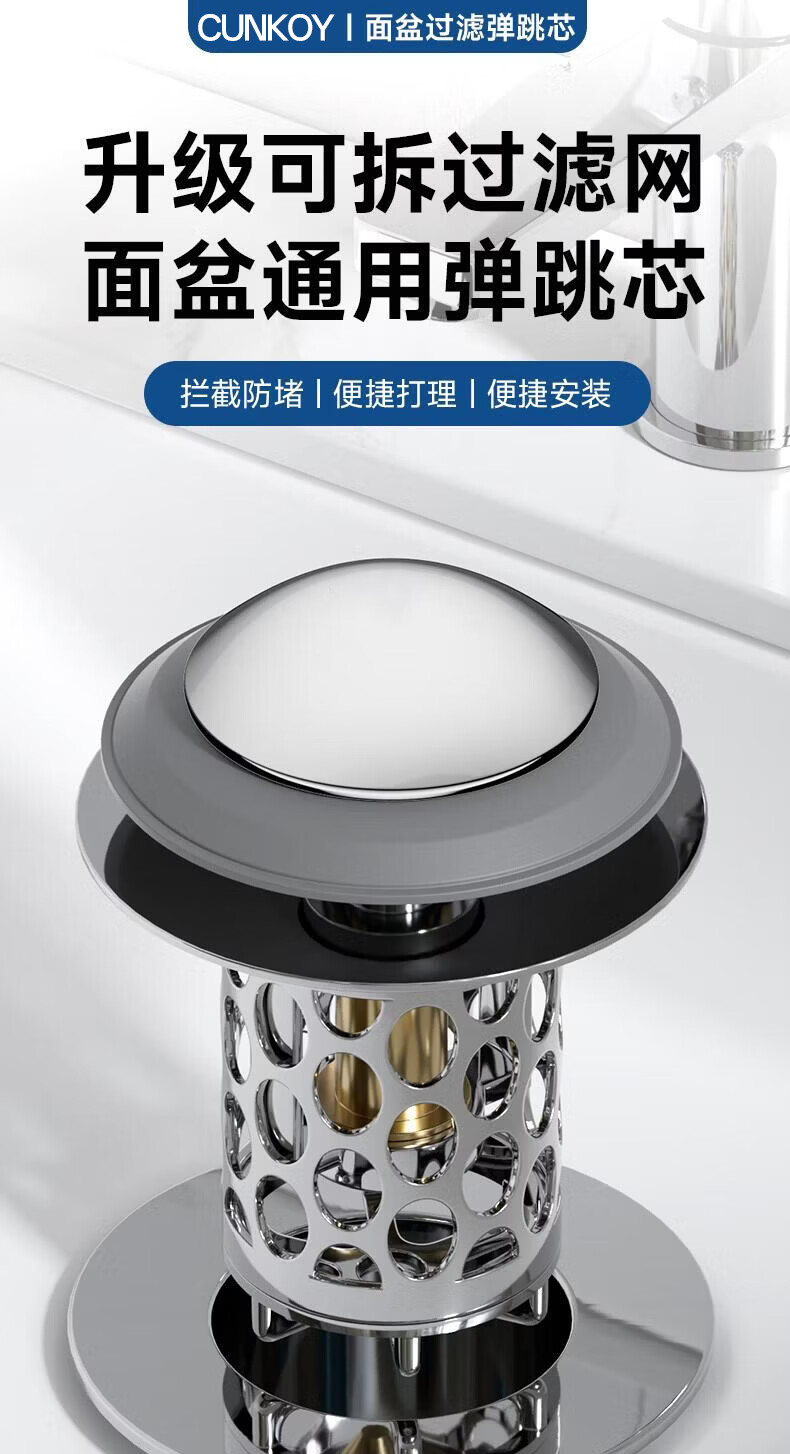 CUNKOY【德国】洗手盆漏水塞面盆弹跳芯全铜芯防虫防臭下水器防堵漏水塞 全铜面盆过滤防臭弹跳芯【升级不锈钢过滤网】 通用安装丨过滤防堵丨防臭防虫