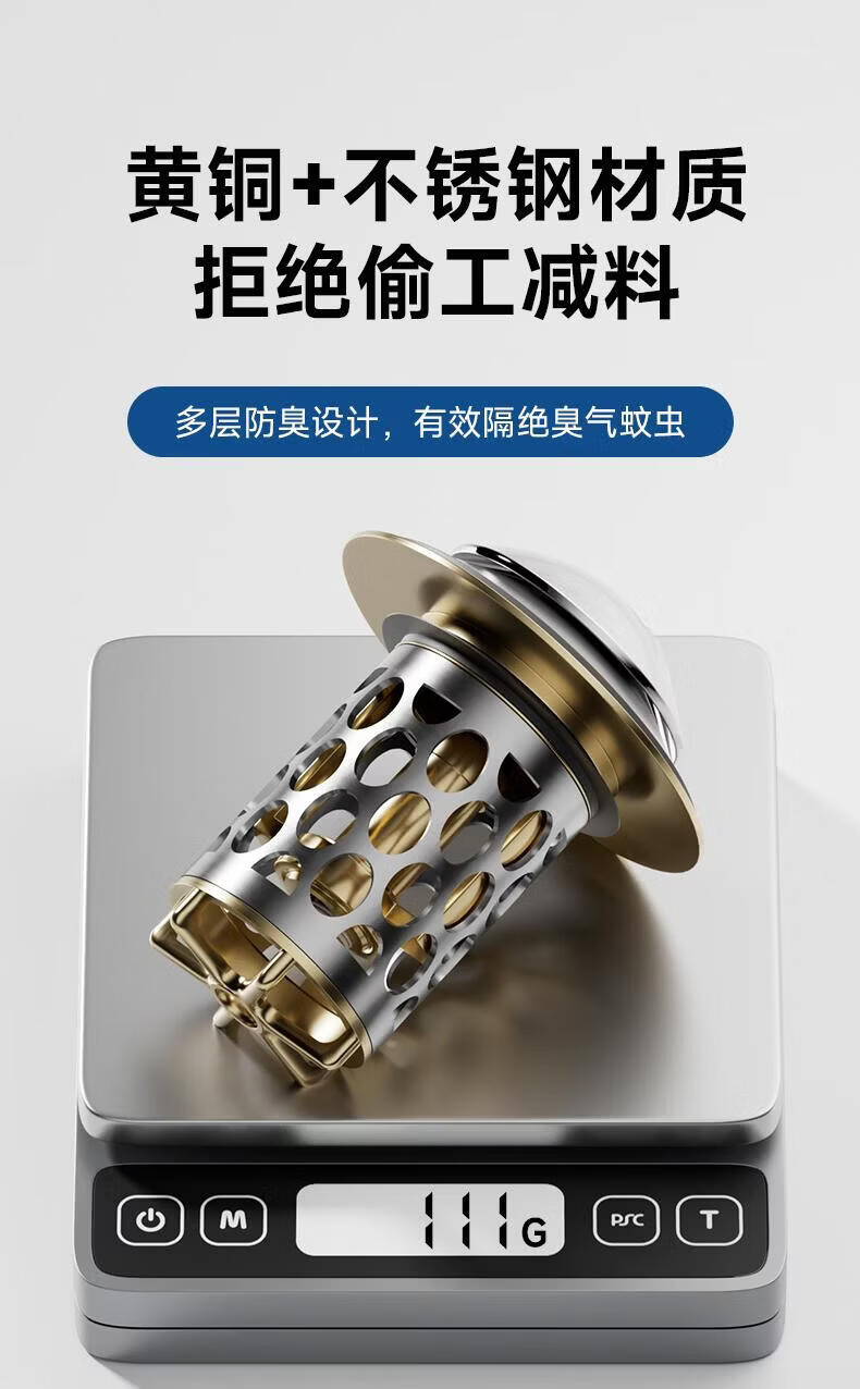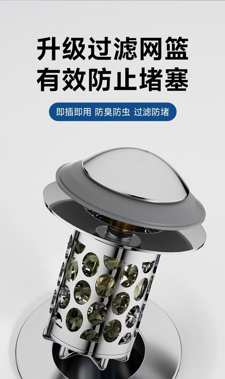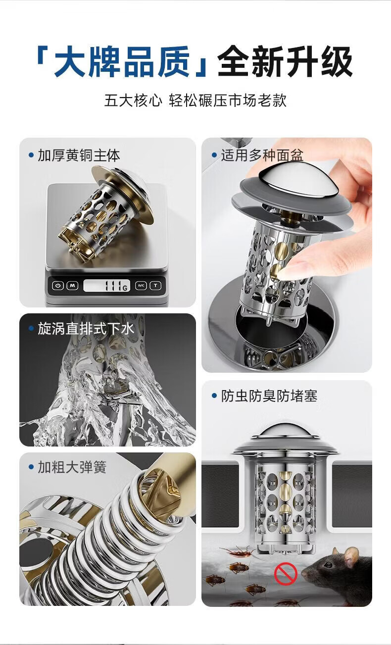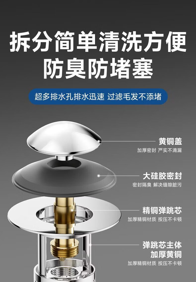 CUNKOY【德国】洗手盆漏水塞面盆弹跳芯全铜芯防虫防臭下水器防堵漏水塞 全铜面盆过滤防臭弹跳芯【升级不锈钢过滤网】 通用安装丨过滤防堵丨防臭防虫