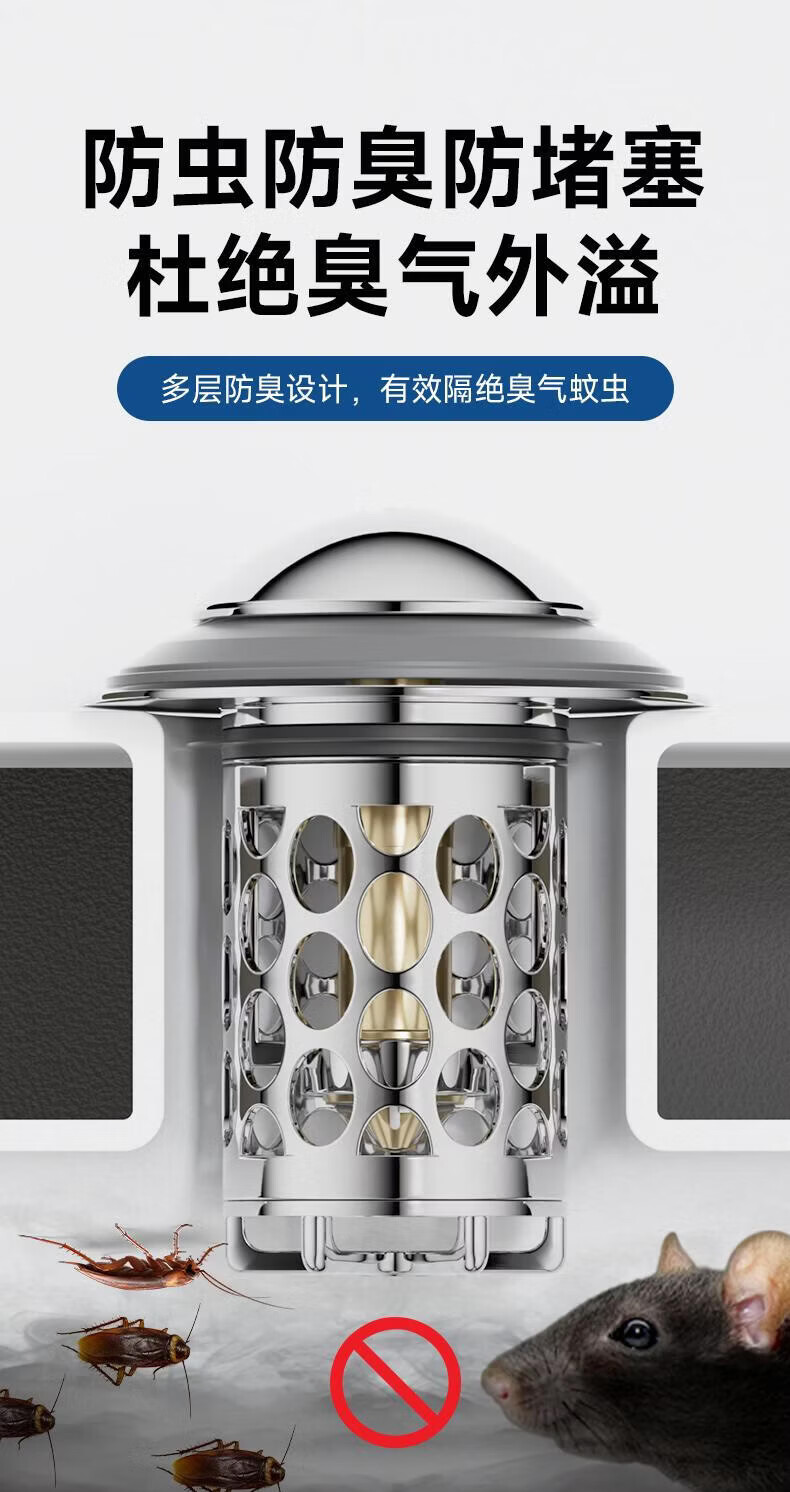 九牧(JOMOO)地漏大排量淋浴地漏防反水地漏卫生间下水道防臭防虫 304不锈钢|干区防臭地漏|92500亮银