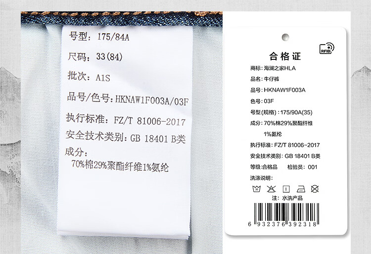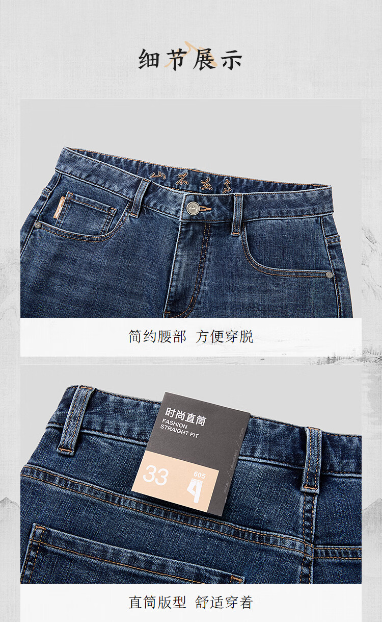 HLA海澜之家牛仔裤男26山不在高系列五袋直筒裤子男春