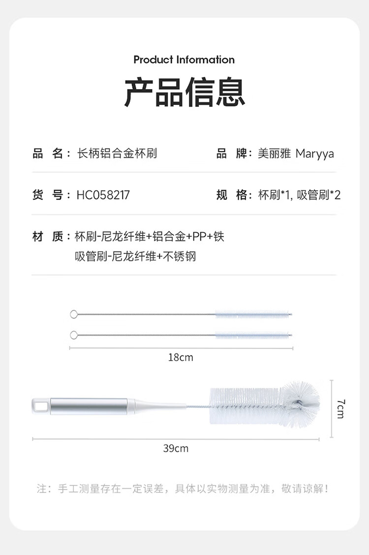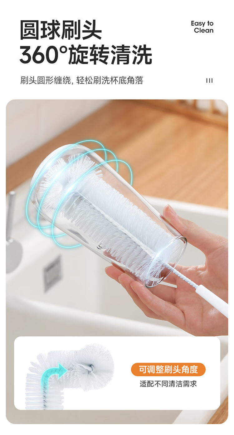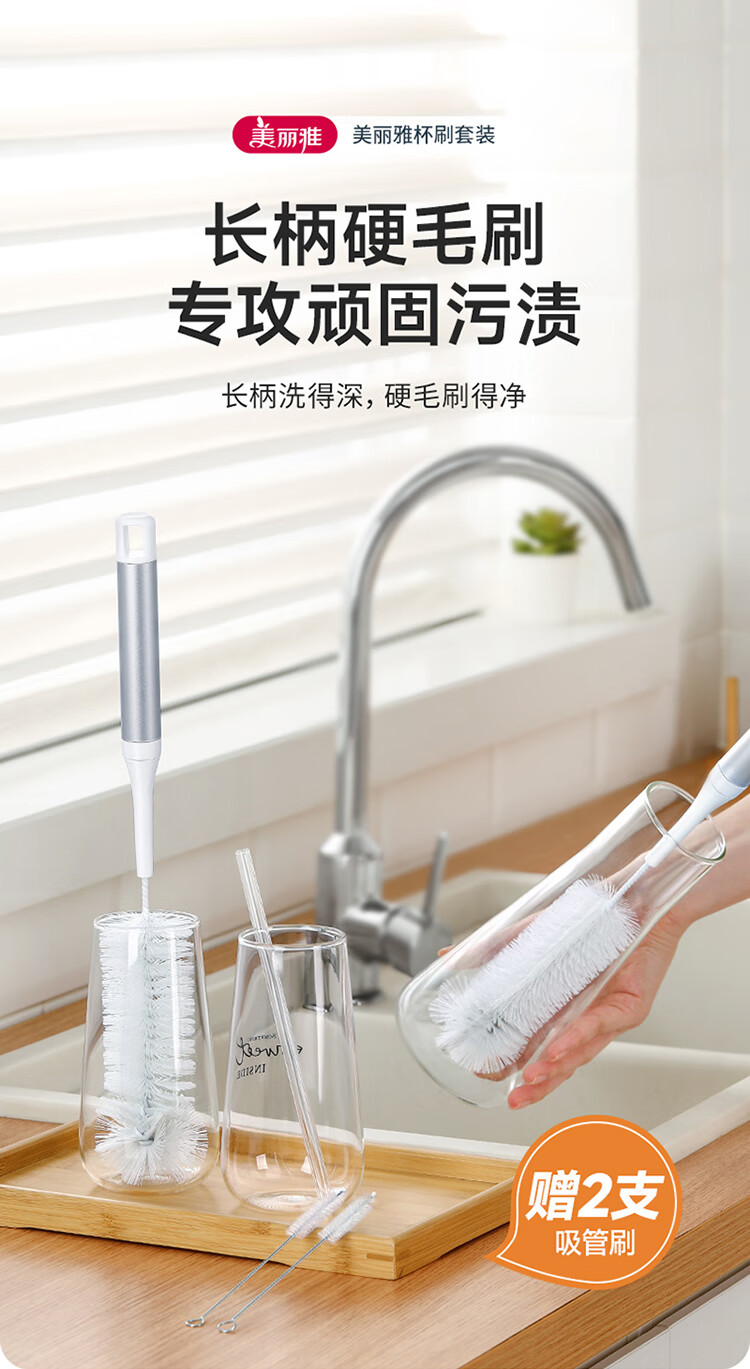 美丽雅洗杯刷1支赠2支吸管刷加长手柄无死角刷茶水杯破壁机保温瓶神器