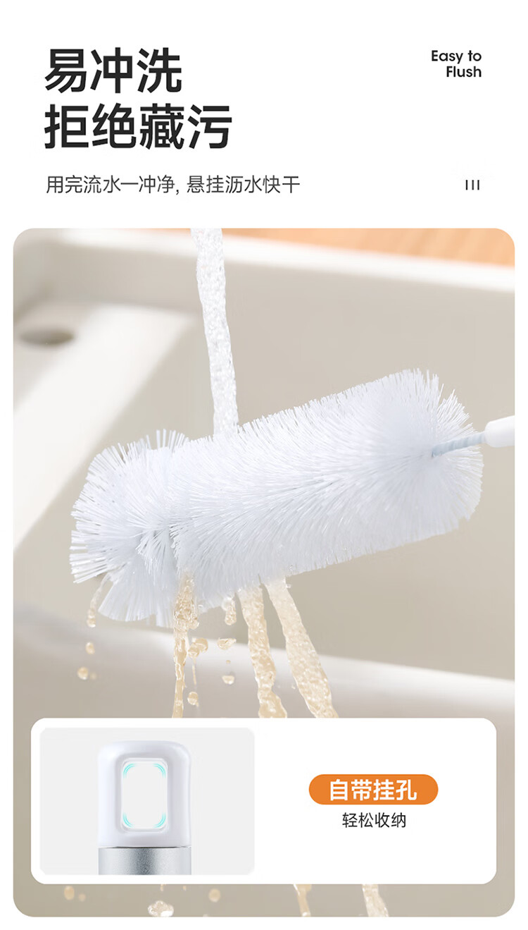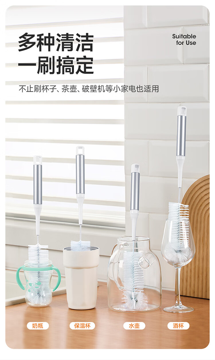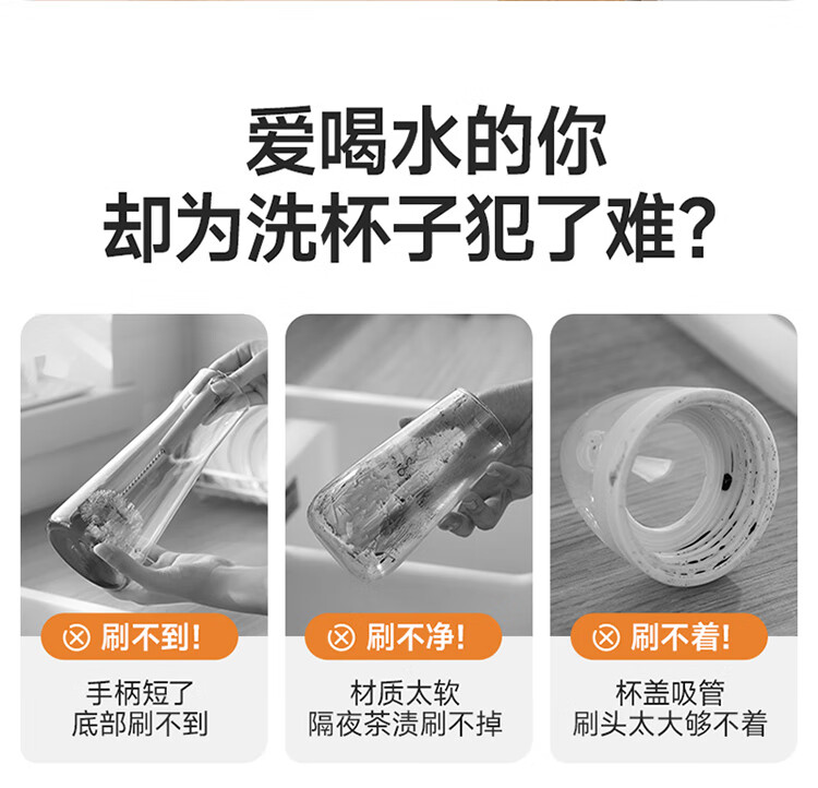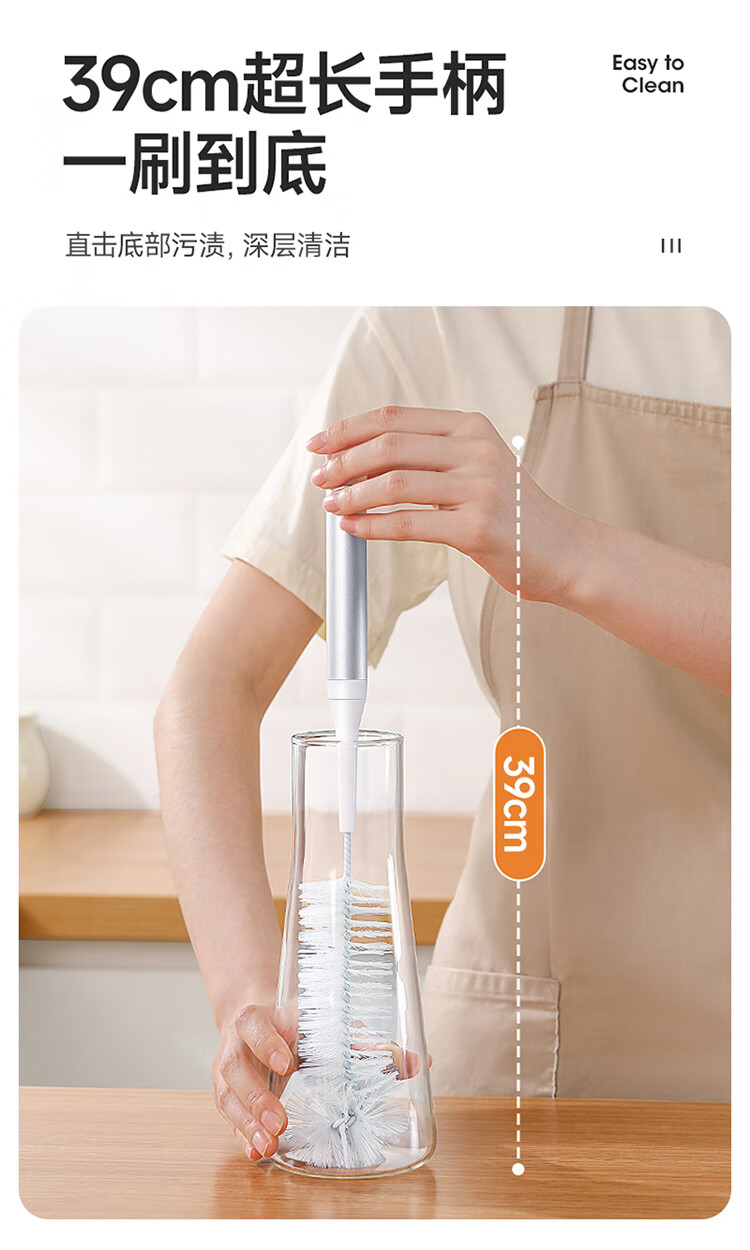 美丽雅洗杯刷1支赠2支吸管刷加长手柄无死角刷茶水杯破壁机保温瓶神器