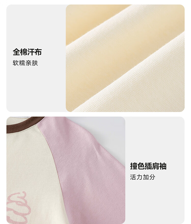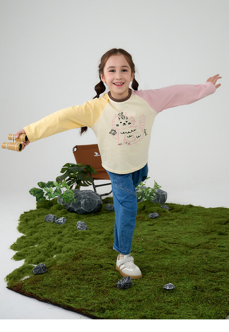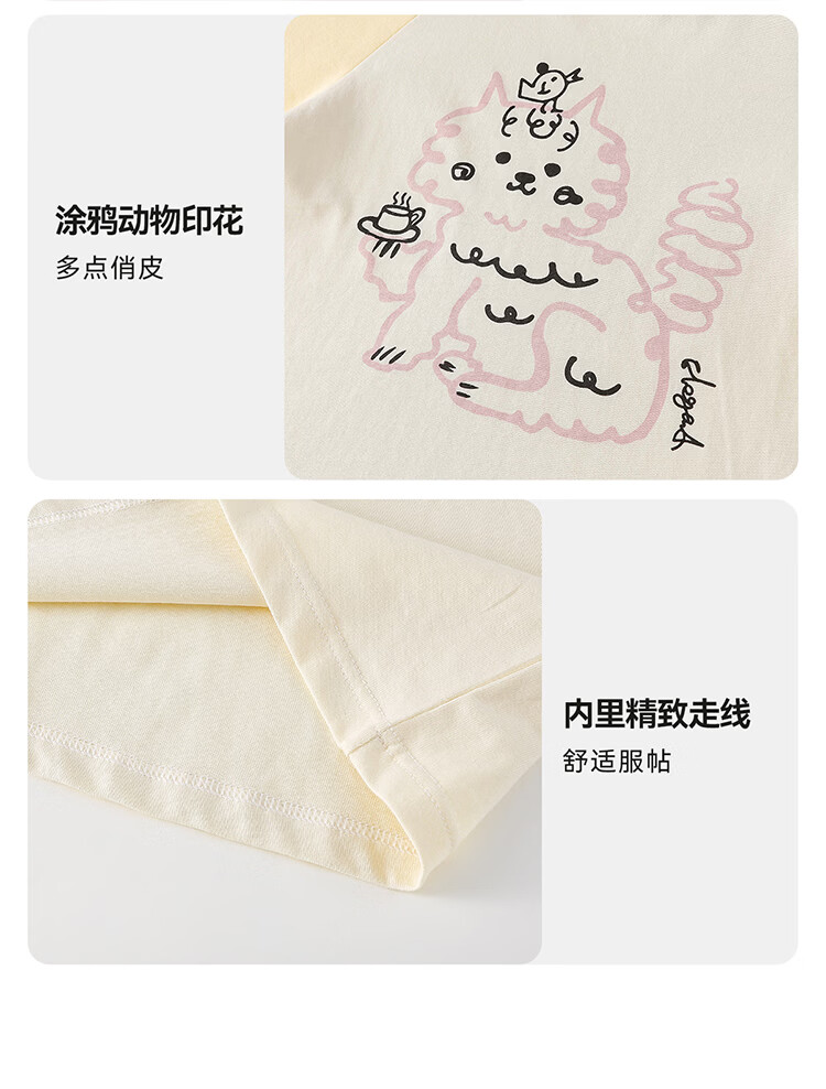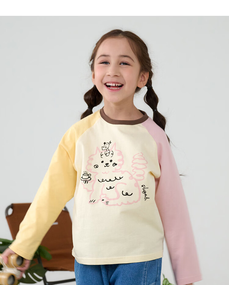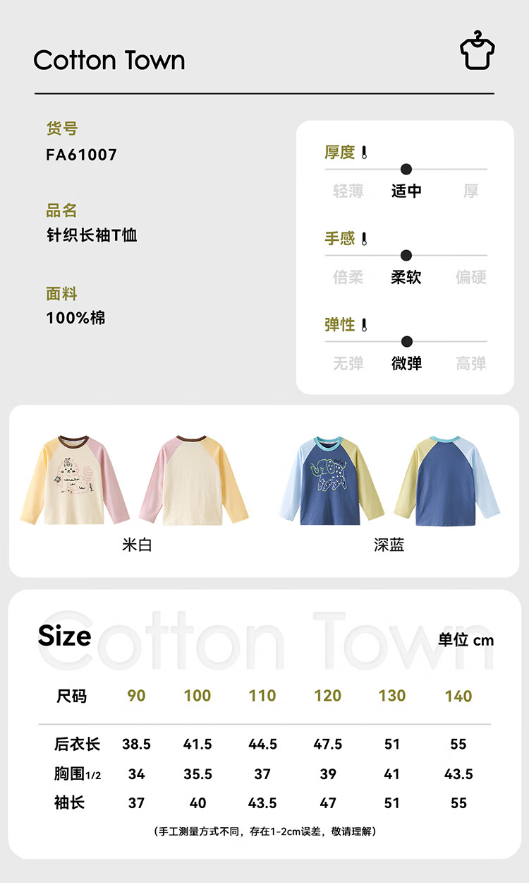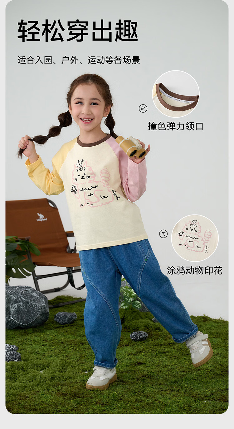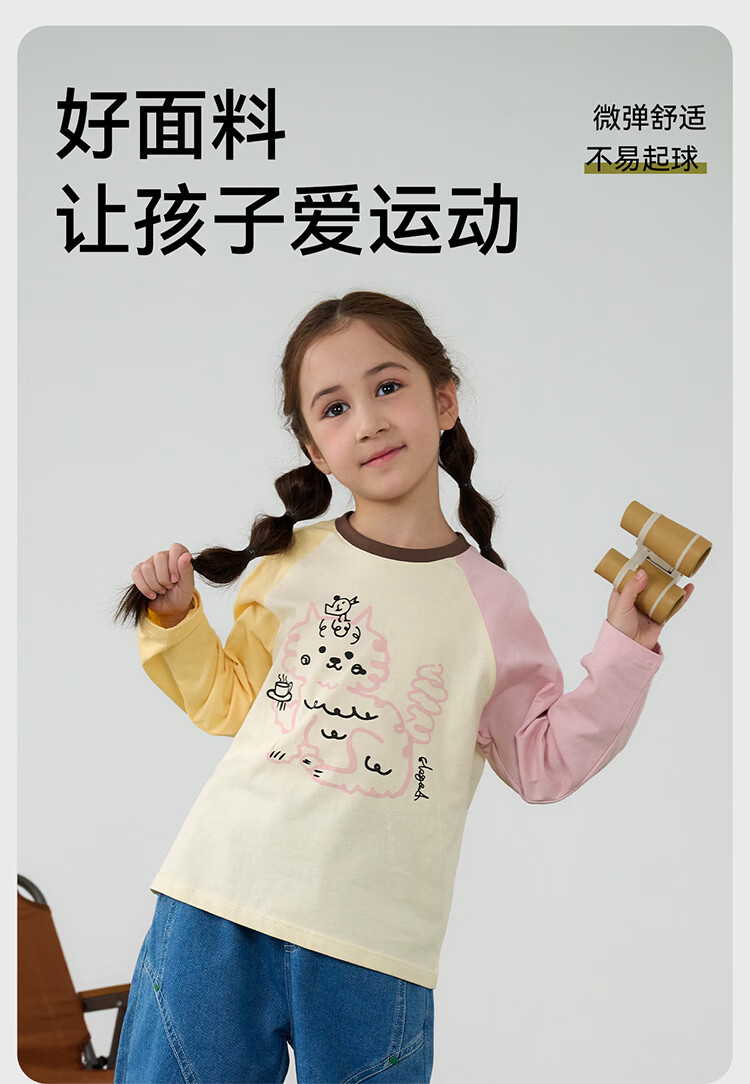 棉花堂【100%棉】童装儿童t恤纯棉男童女童长袖打底衫上衣百搭 米白 140