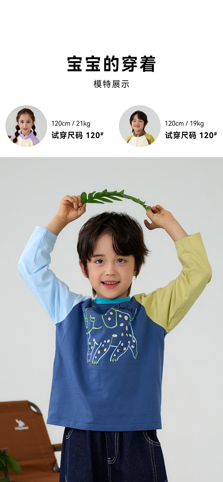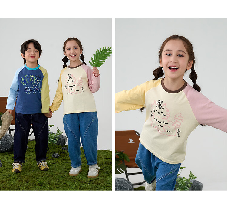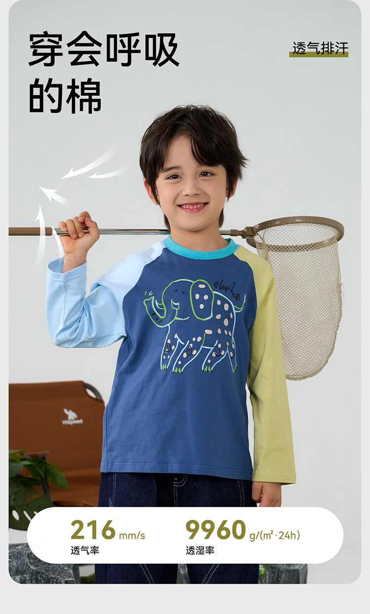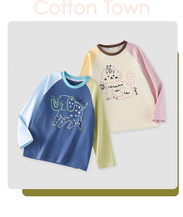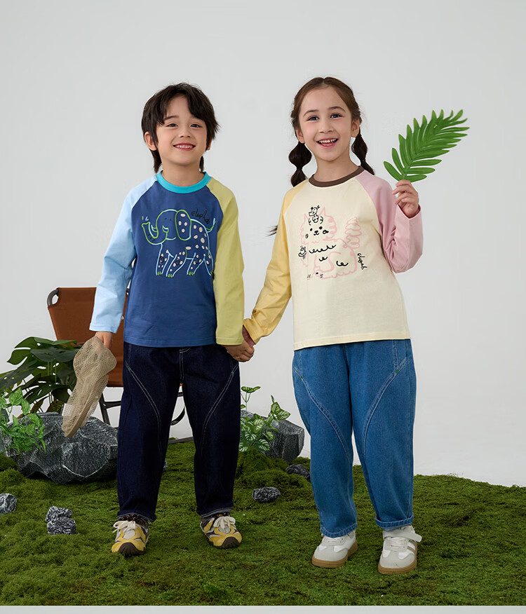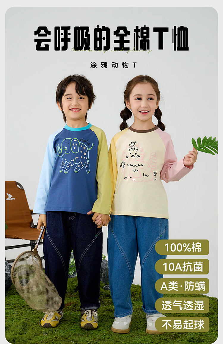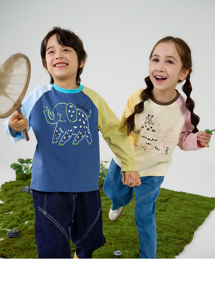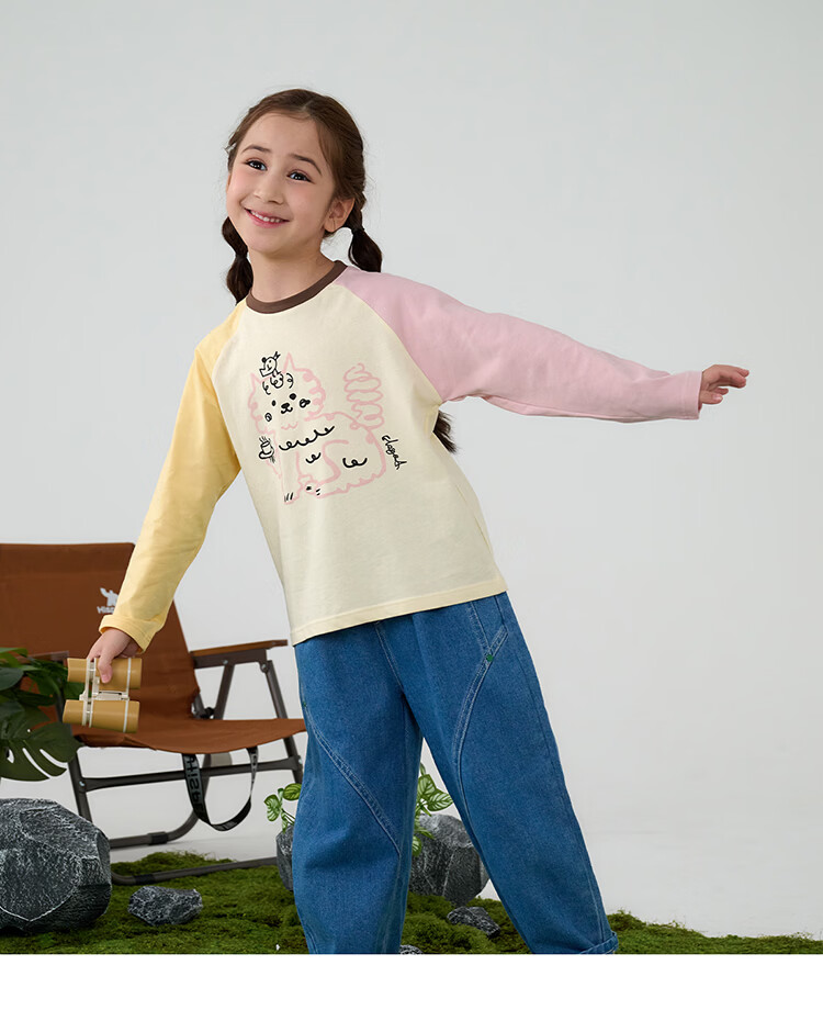 棉花堂【100%棉】童装儿童t恤纯棉男童女童长袖打底衫上衣百搭 米白 140