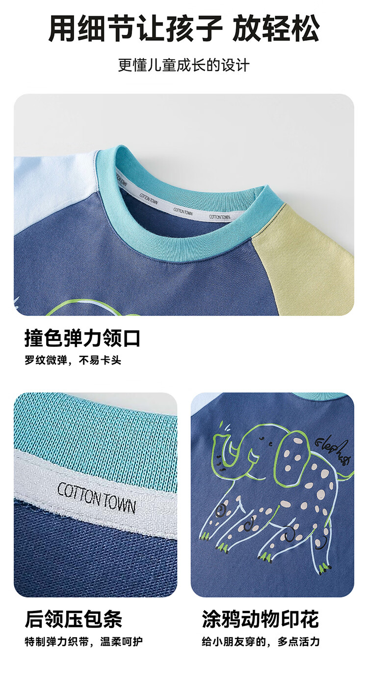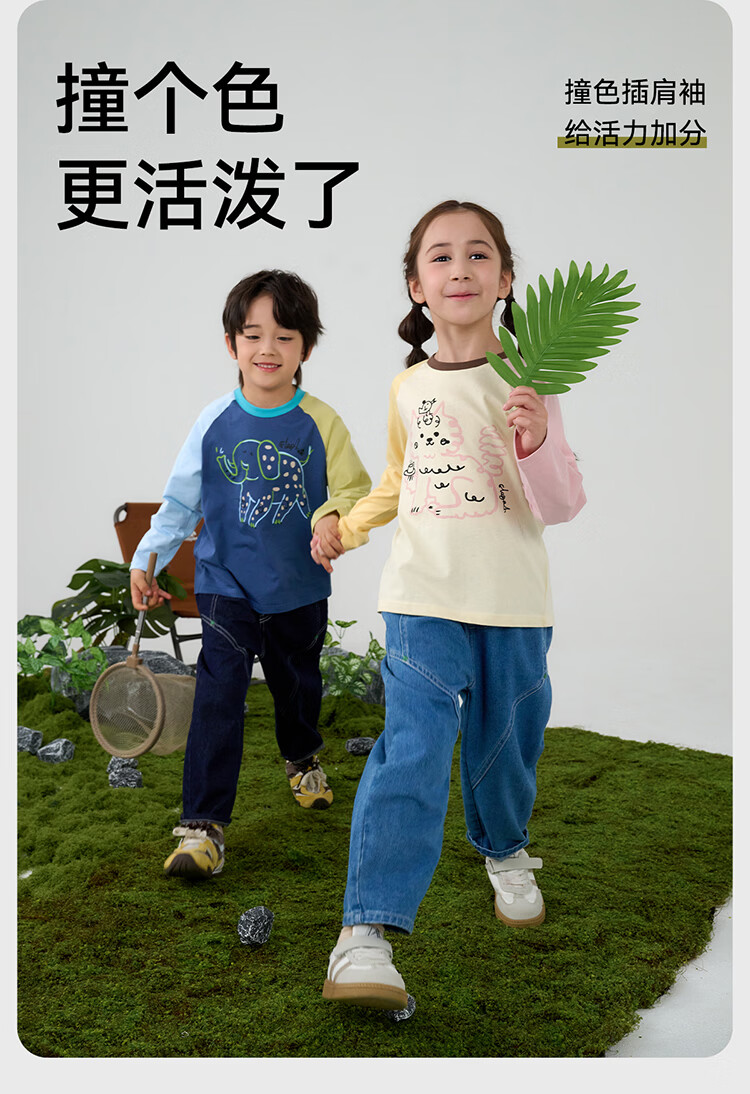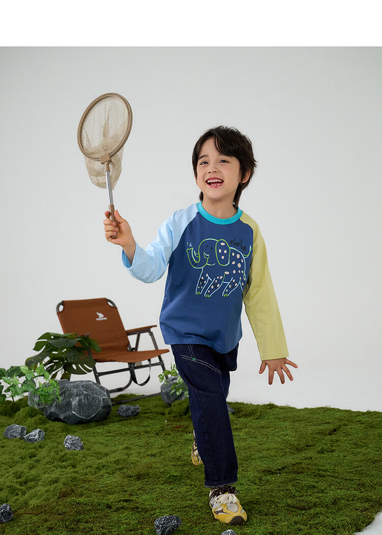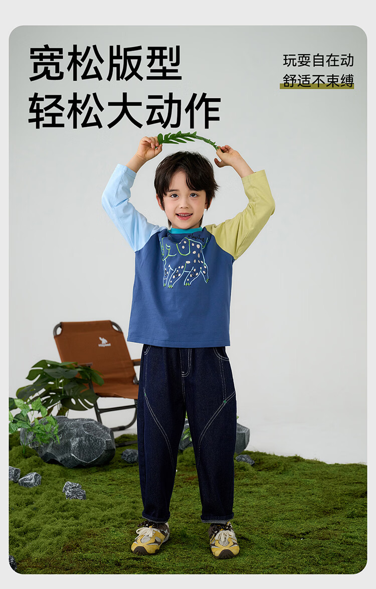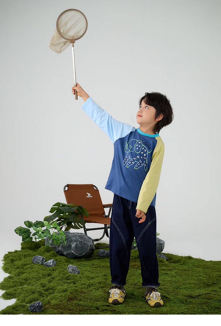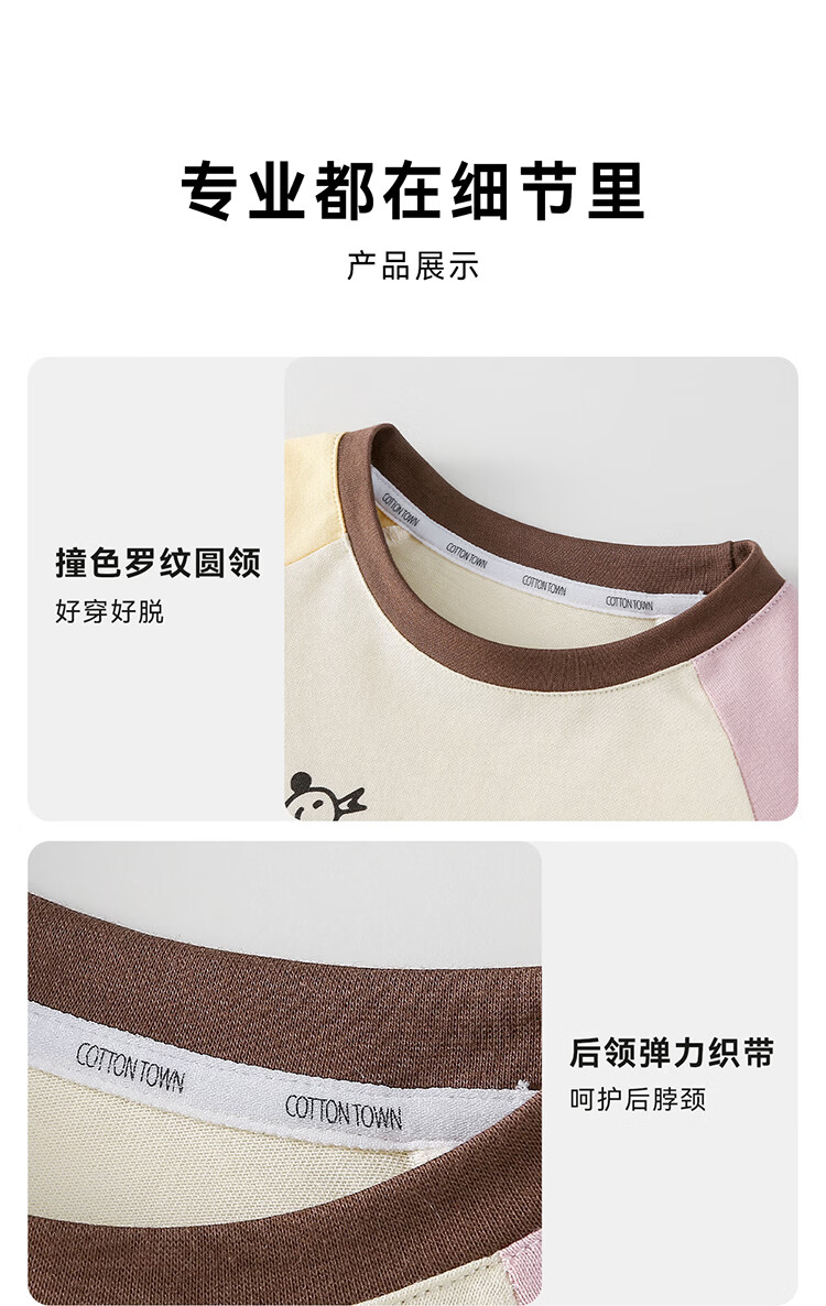 棉花堂【100%棉】童装儿童t恤纯棉男童女童长袖打底衫上衣百搭 米白 140