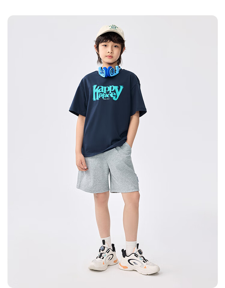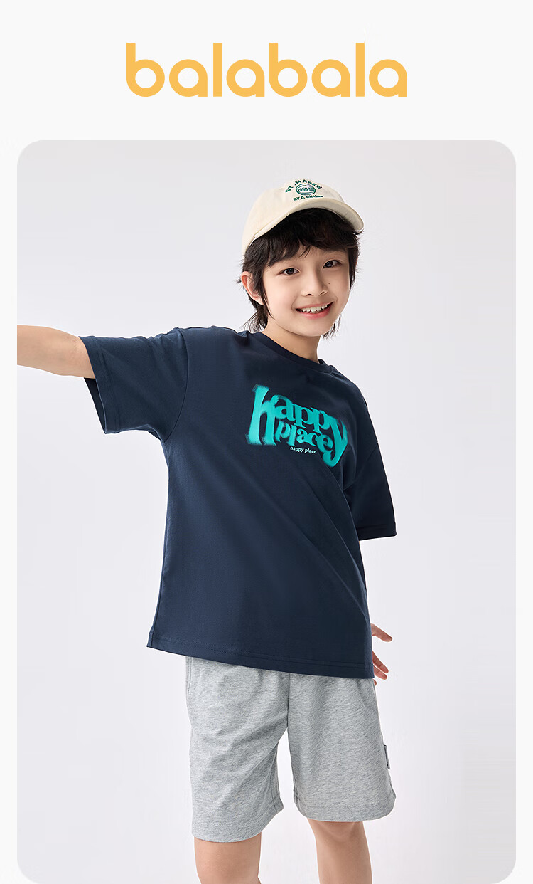 巴拉巴拉儿童短袖套装2025新款童装夏季男童两件套速干轻休闲百搭 白黑色调00319 140