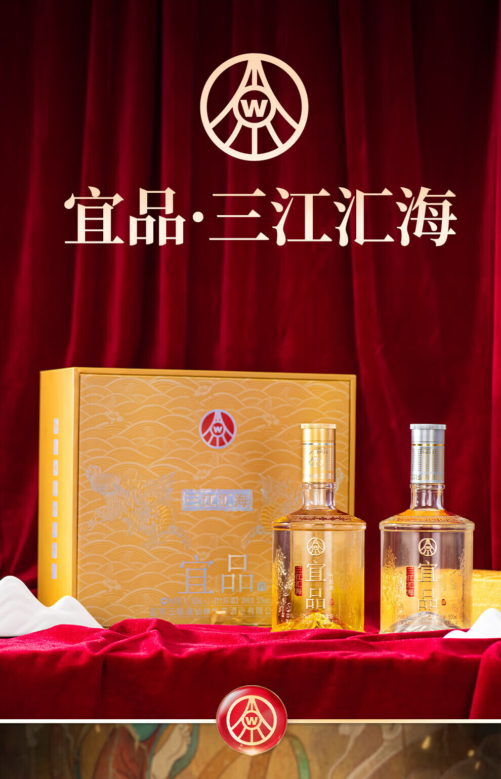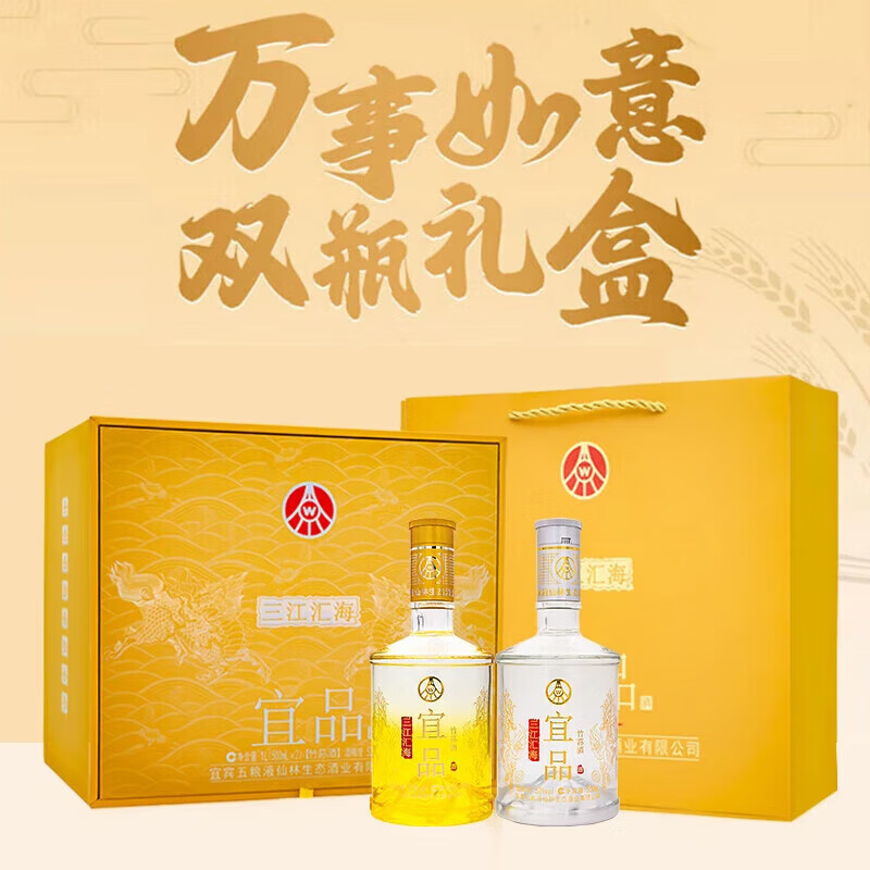 五粮浓香五粮液股份出品 官方授权 浓香型优级白酒 喜福盛世 52度 500mL 2瓶 礼盒装(内含酒具)