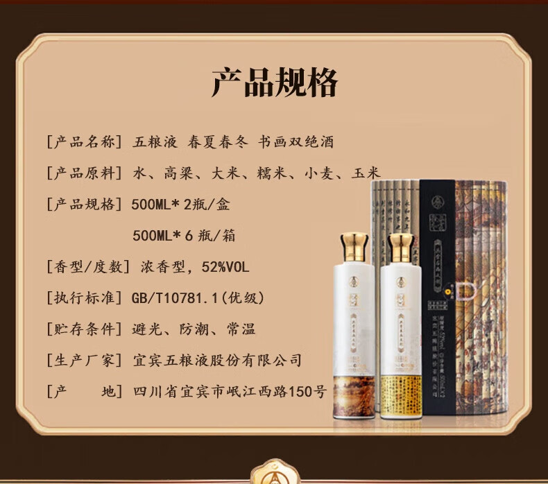 五粮浓香五粮液股份出品 工匠华礼 浓香型白酒 礼盒装 52度 500mL 2瓶 金瓶
